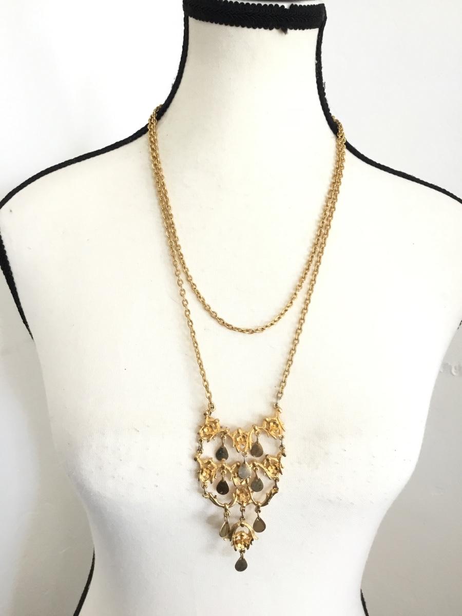 Beautiful vintage, goldtone, multi strand statement, waterfall necklace