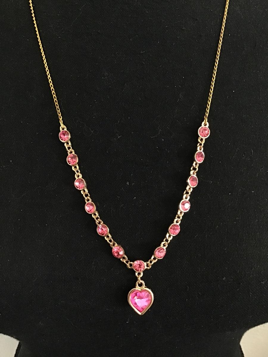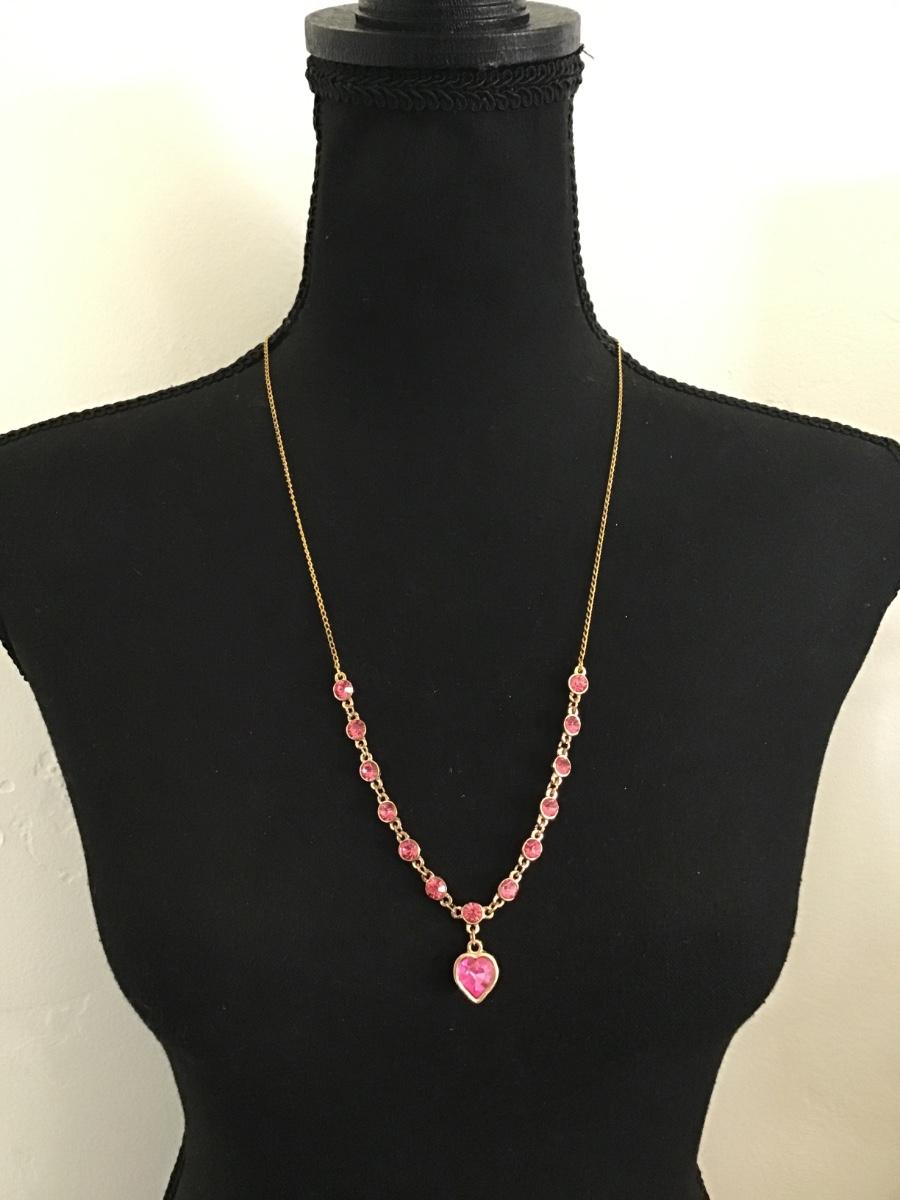 Beautiful vintage, goldtone, pink rhinestone heart necklace very beautiful