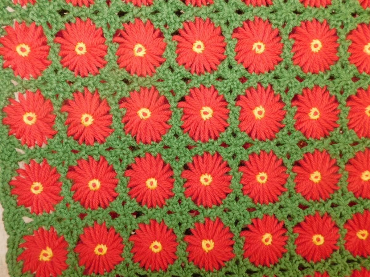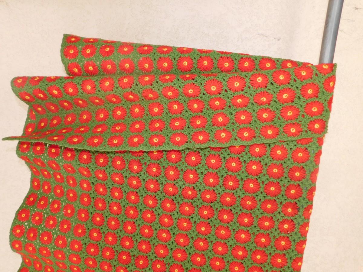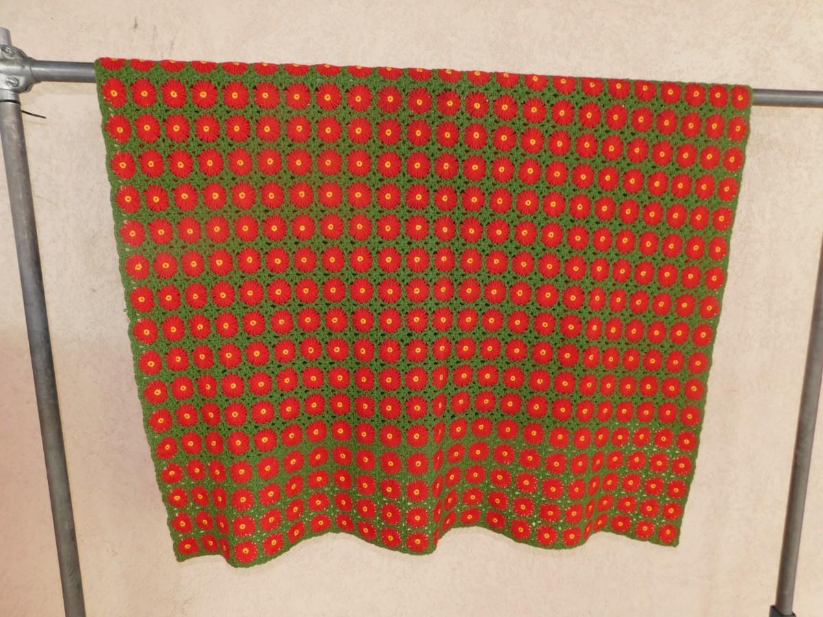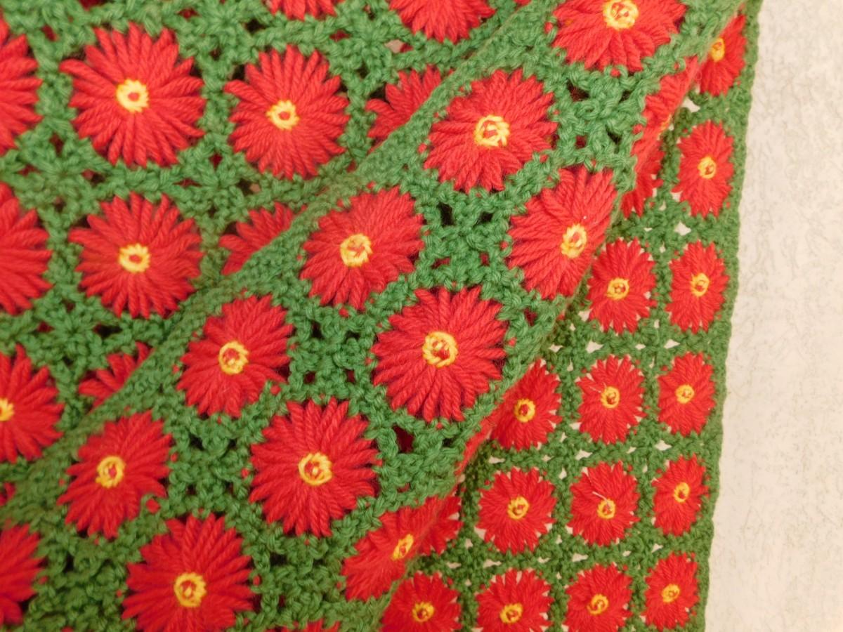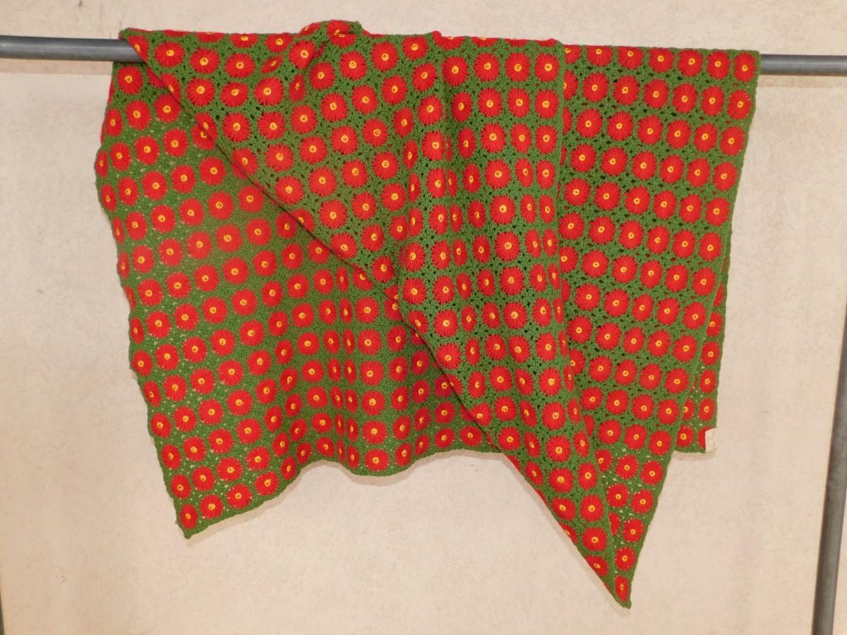 Beautiful Vintage Green and Red Floral Throw Blanket