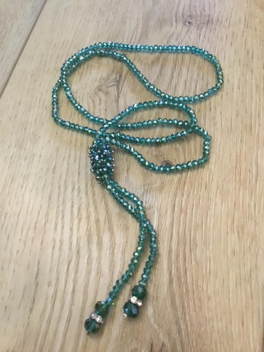 Beautiful, vintage, green crystal tassel necklace