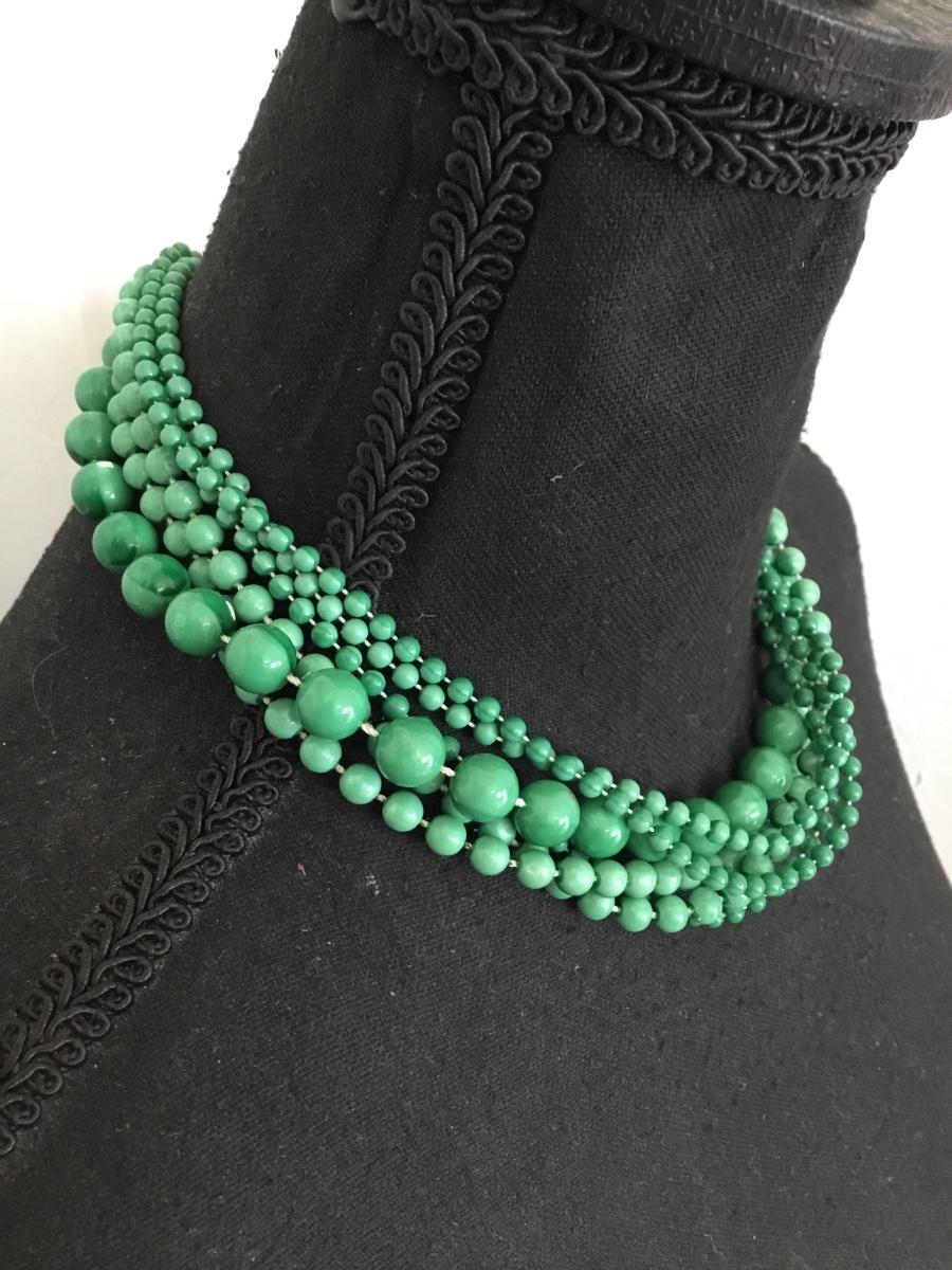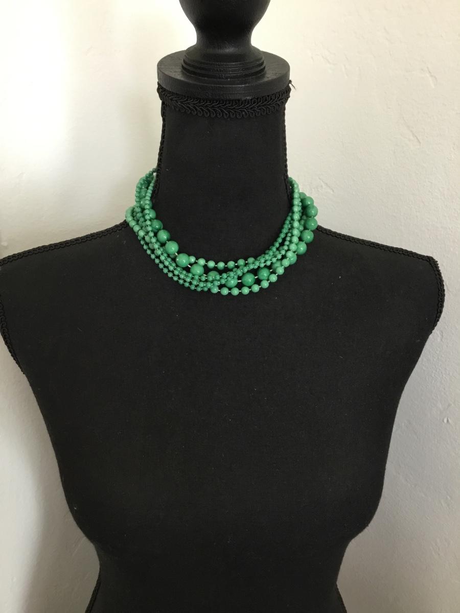 Beautiful, vintage, green, multi strand bead statement, necklace