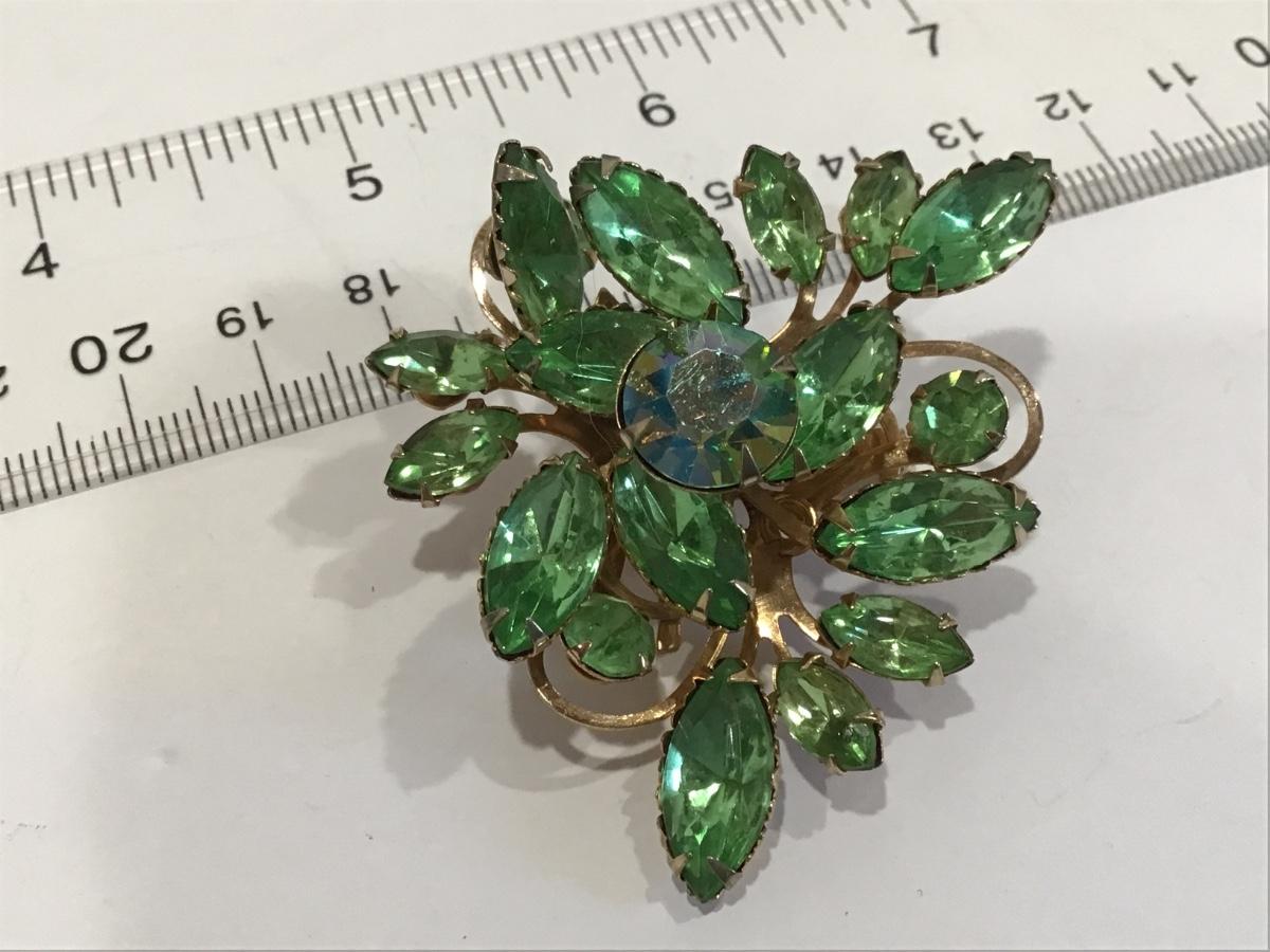 Beautiful Vintage Green Rhinestone Aurora Borealis Vintage