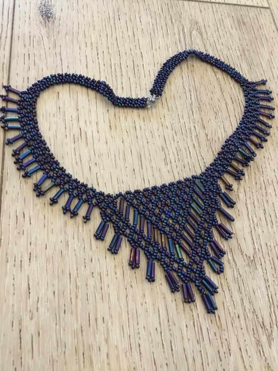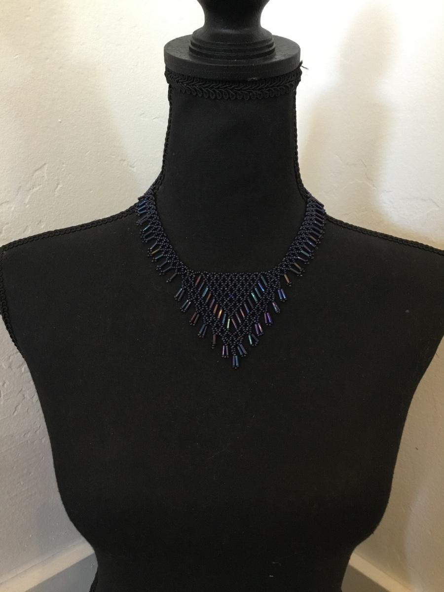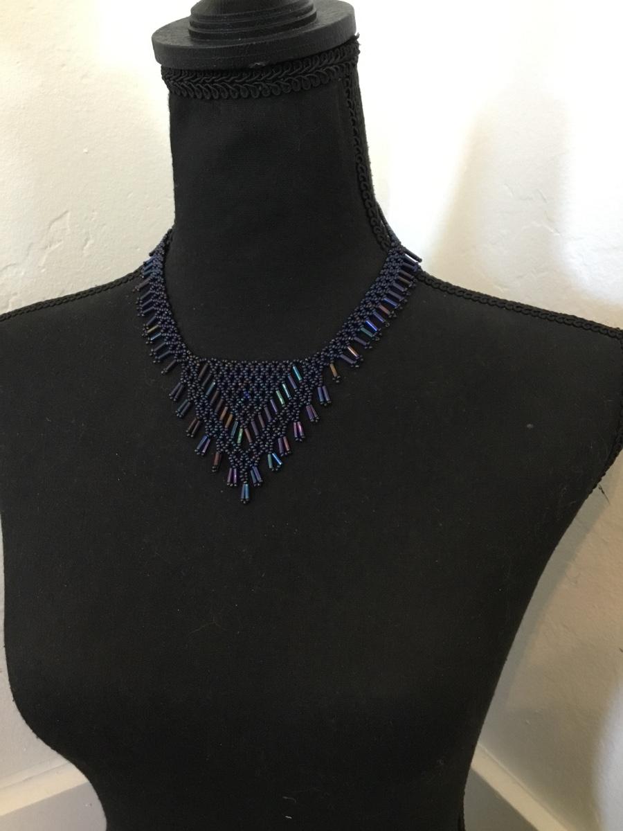 Beautiful vintage, handcrafted, peacock color glass bead bib statement necklace very beautiful very nice