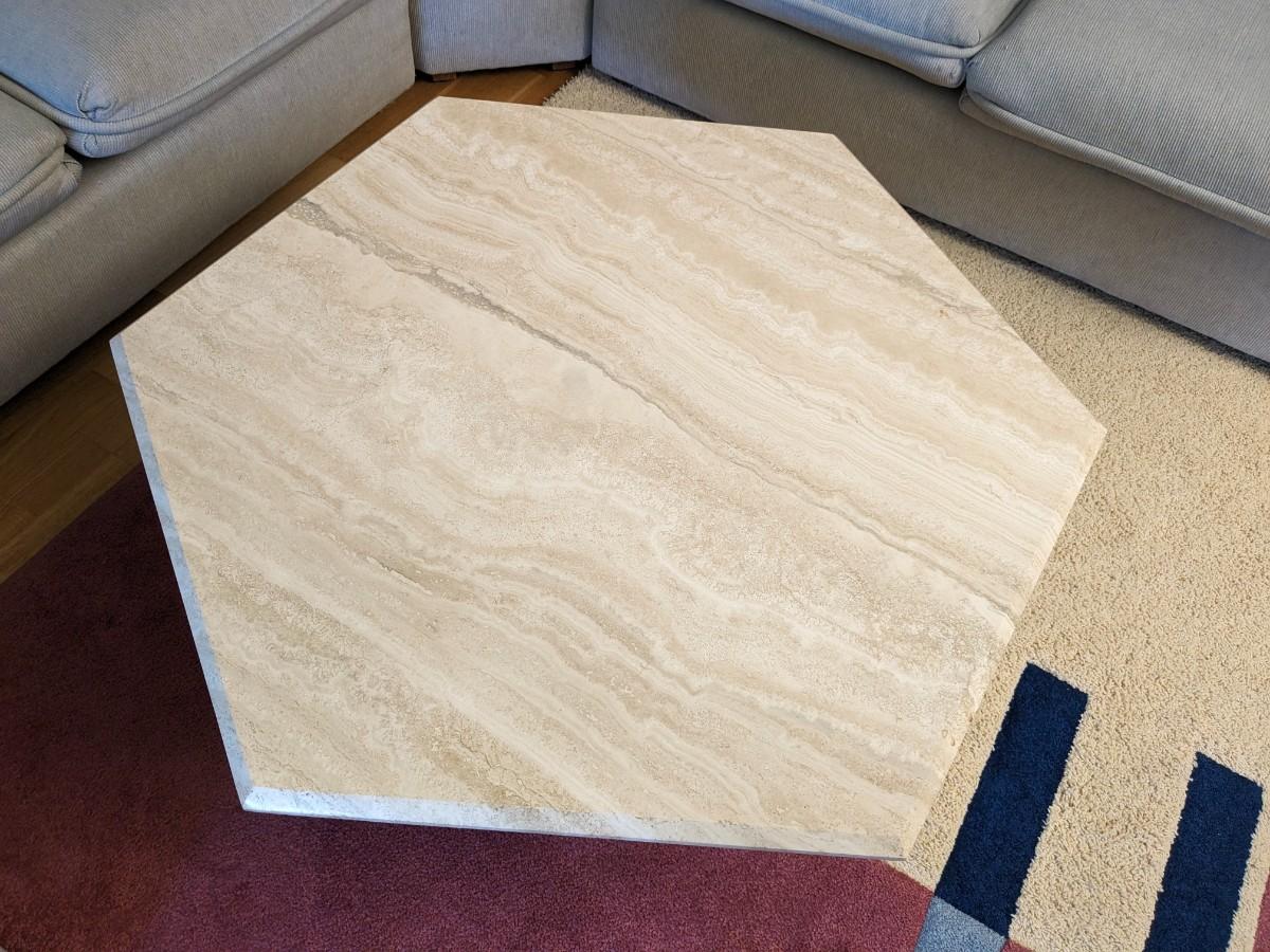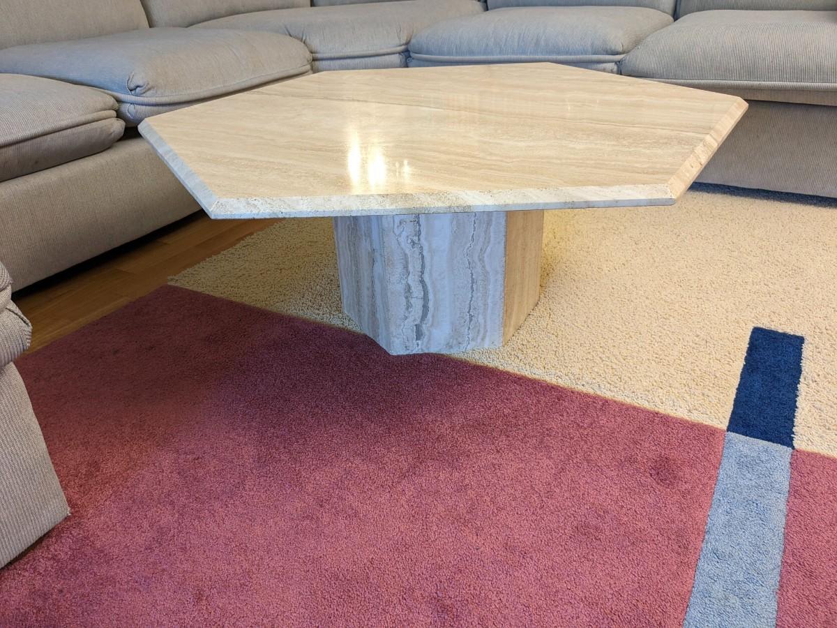Beautiful Vintage Hexagon Italian Travertine Coffee Table