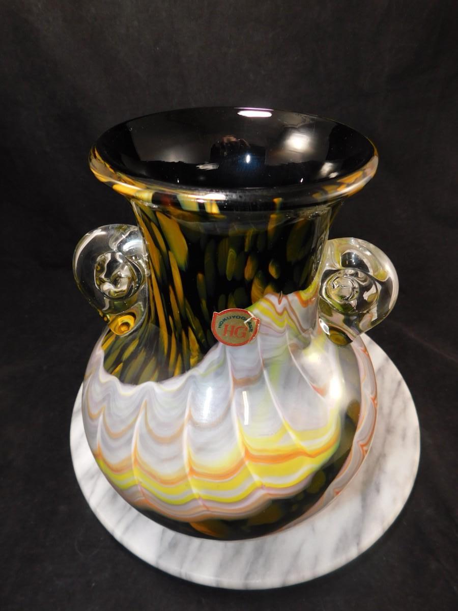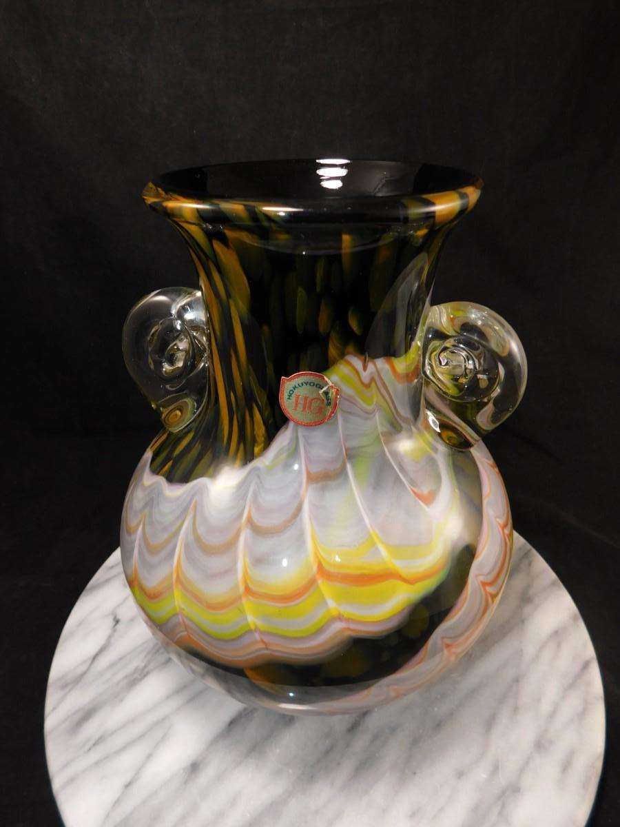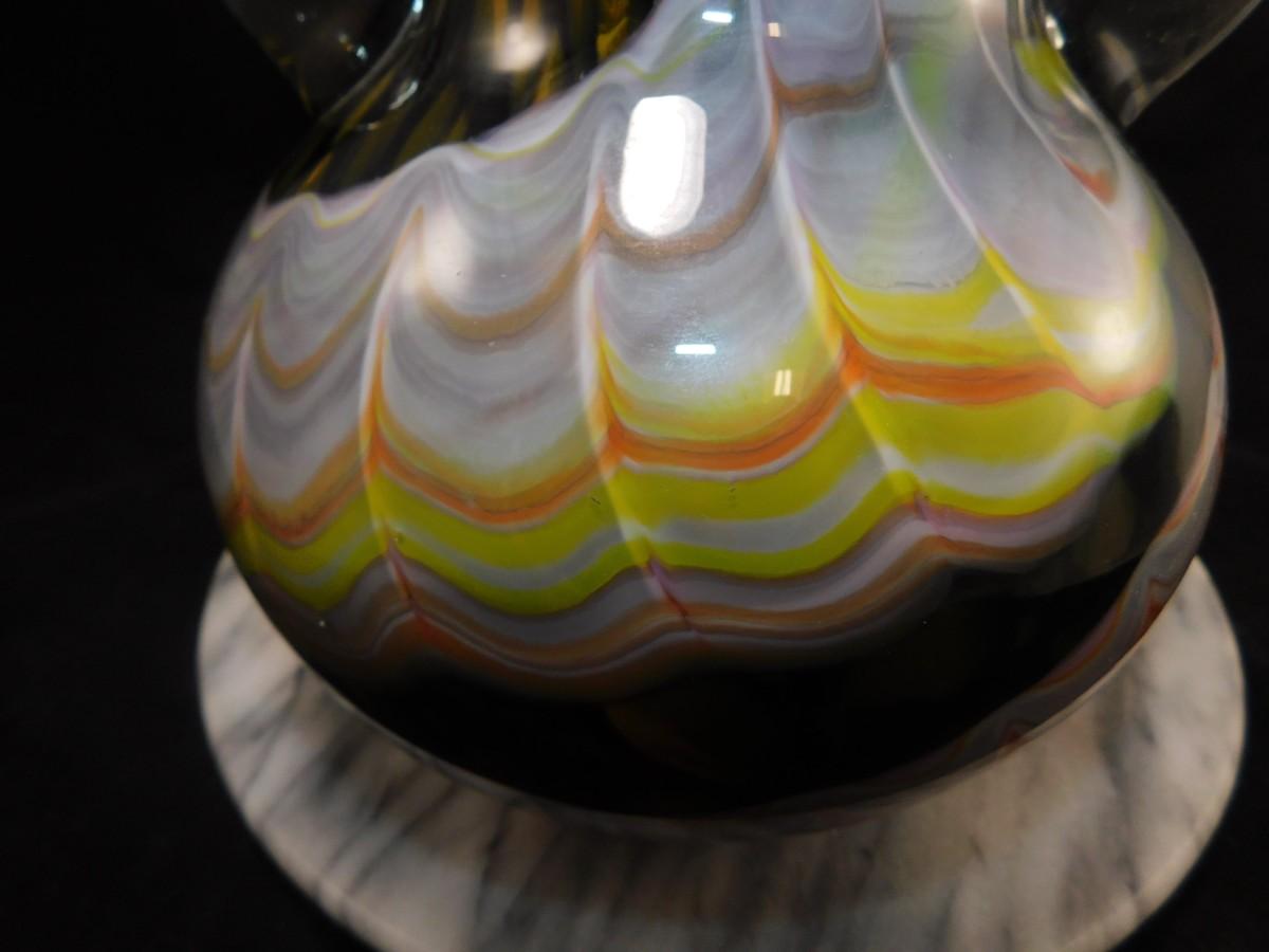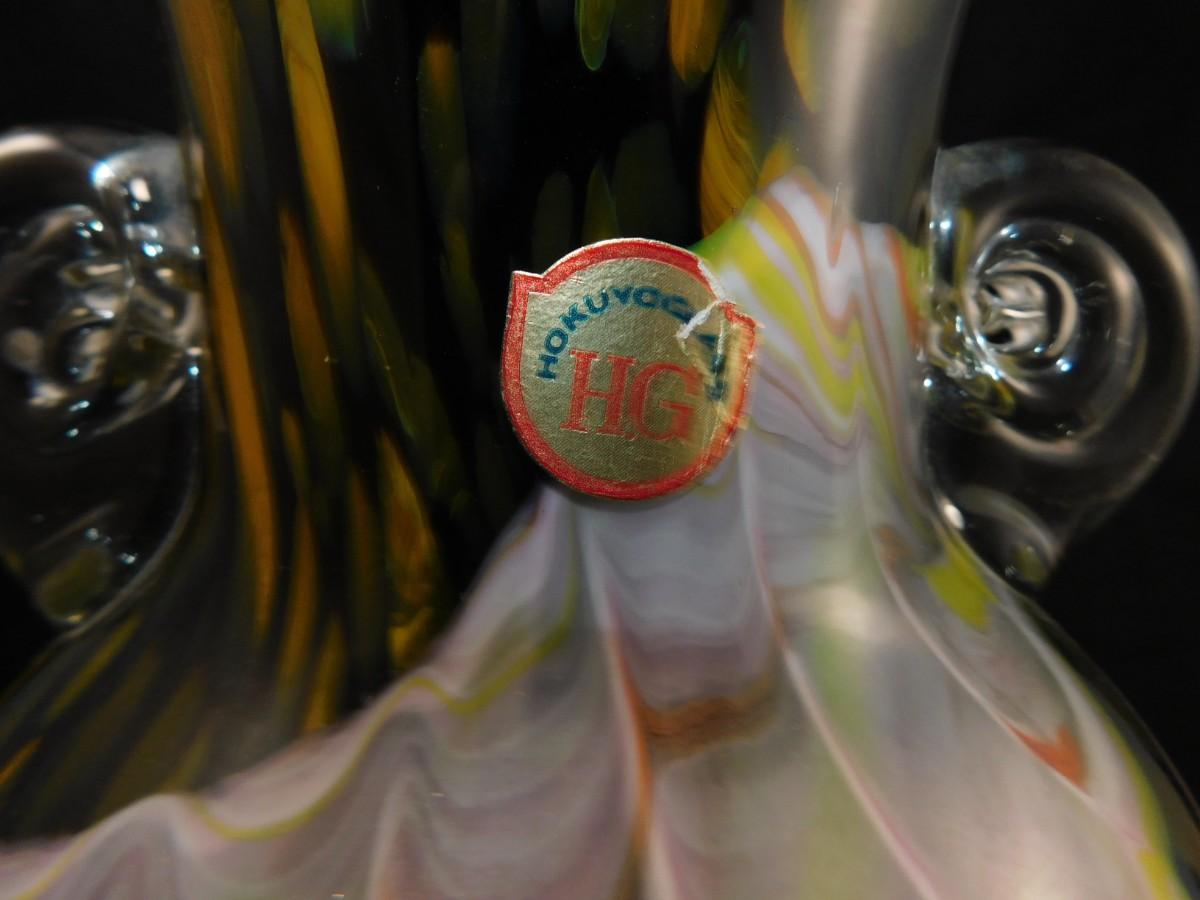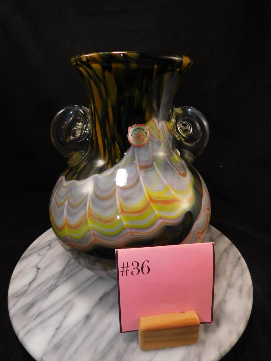 Beautiful Vintage HOKUYO Feathered Art Glass Vase 9.5”x7”