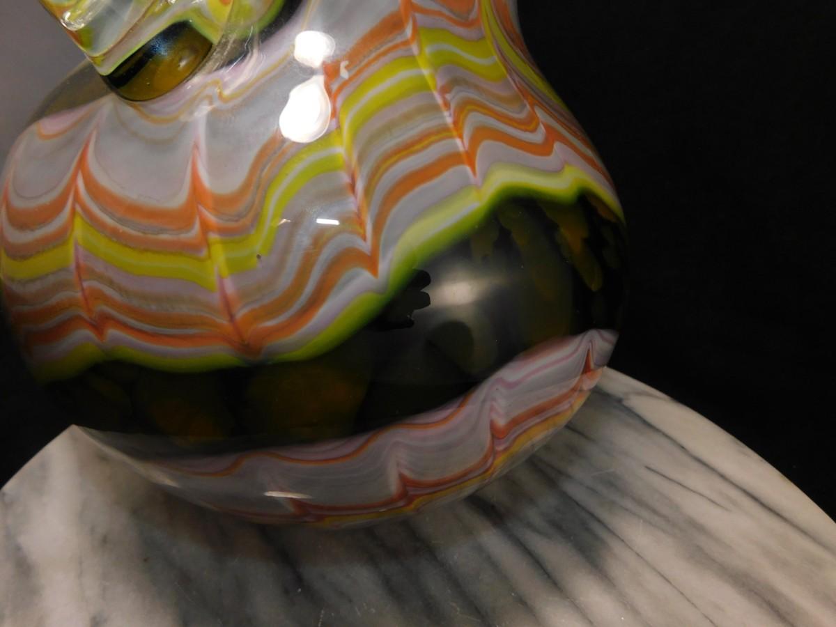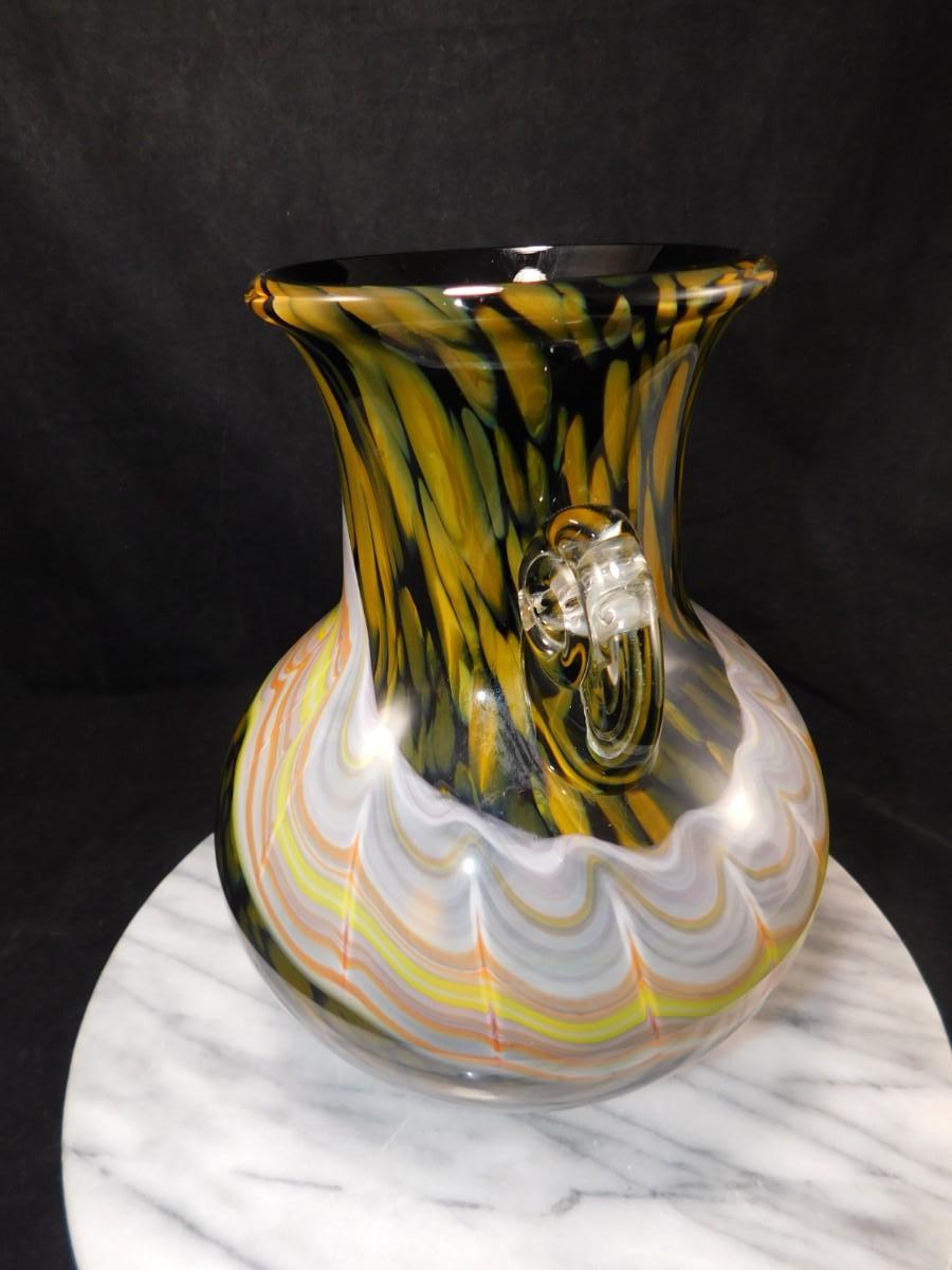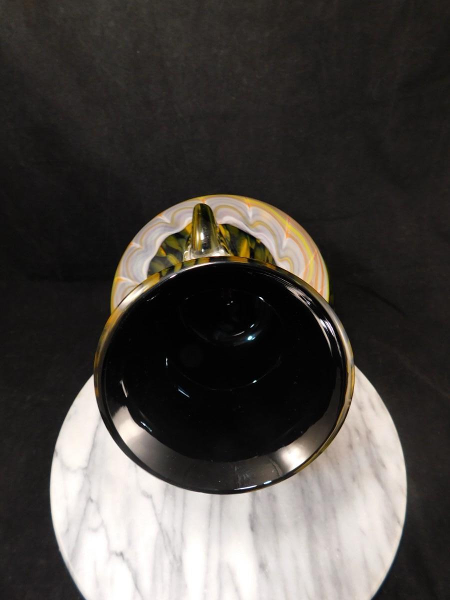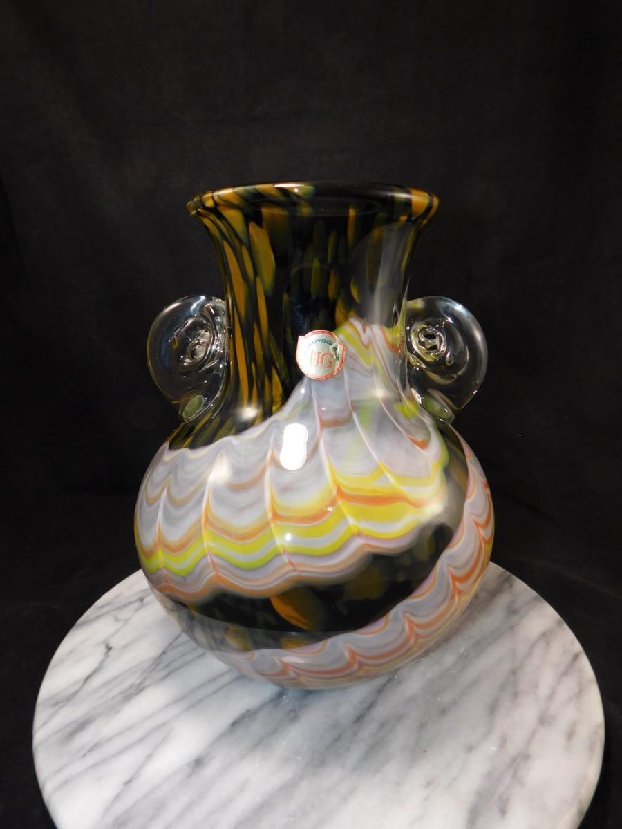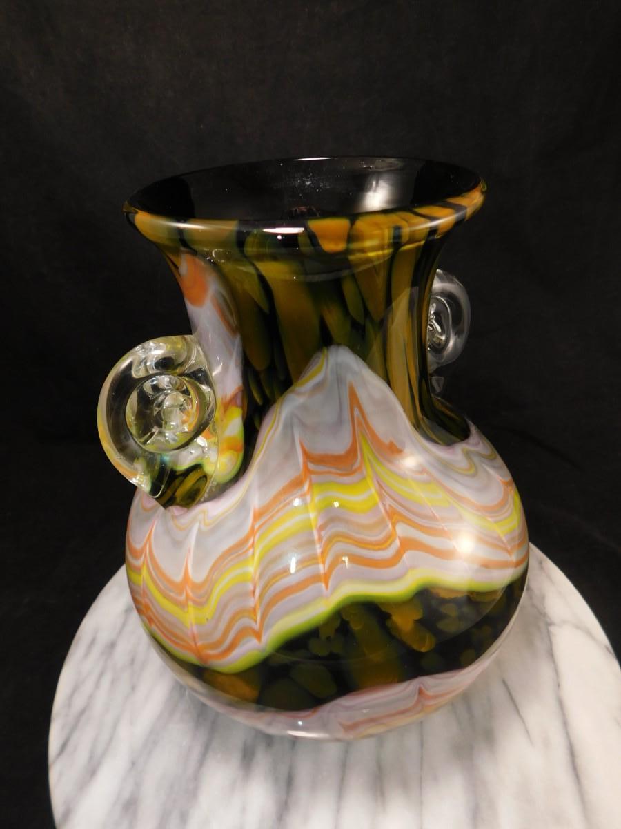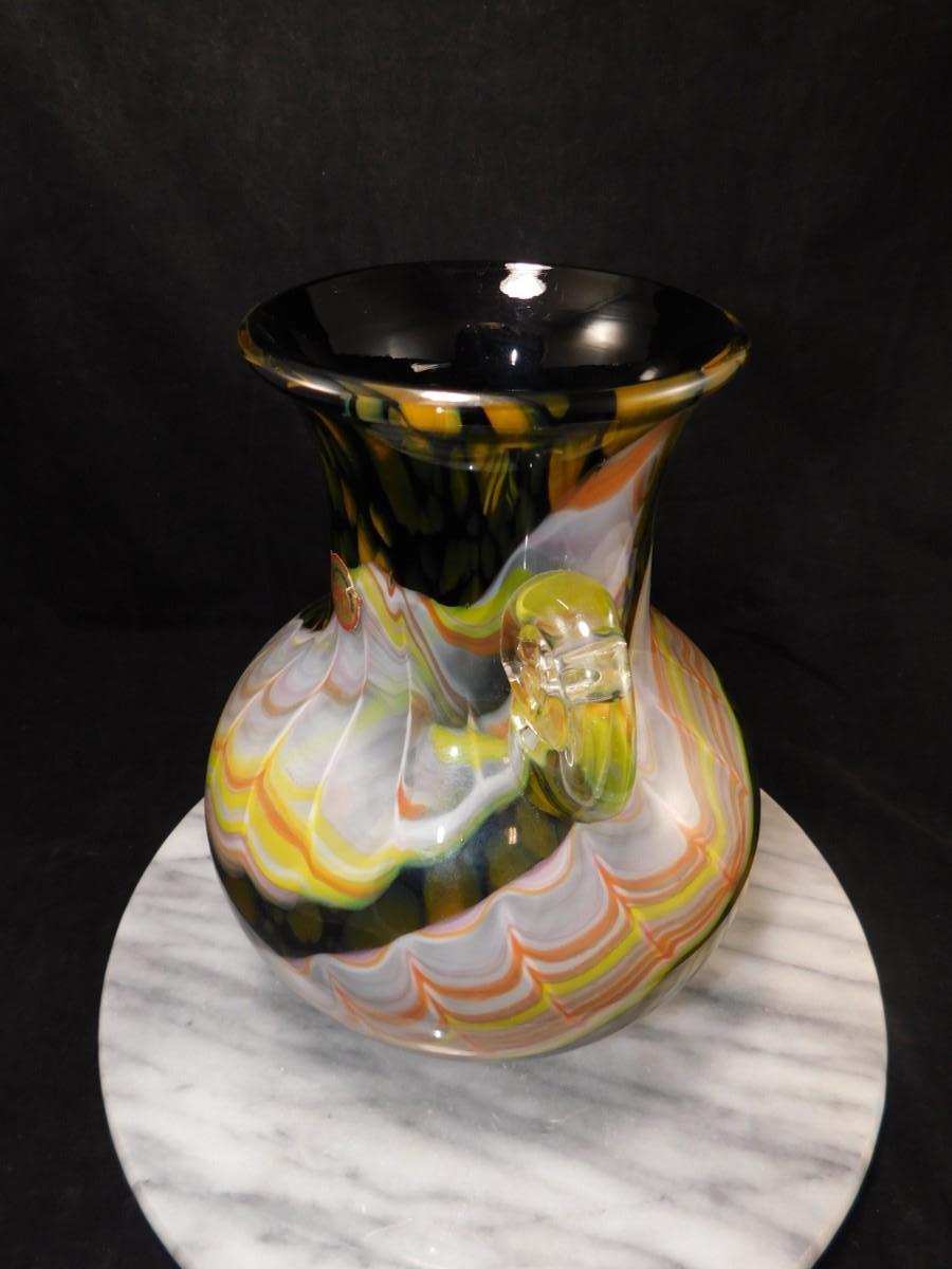 Beautiful Vintage HOKUYO Feathered Art Glass Vase 9.5”x7”