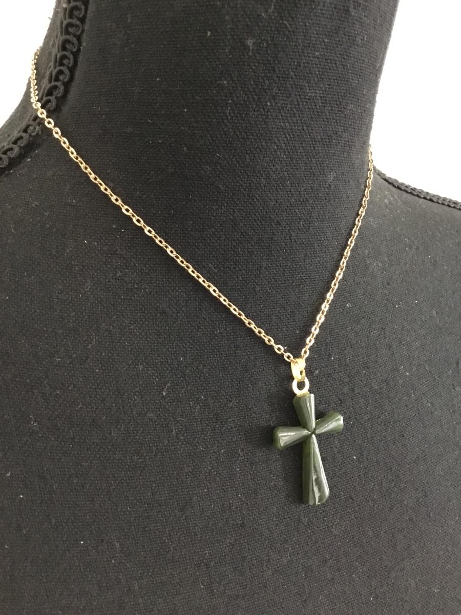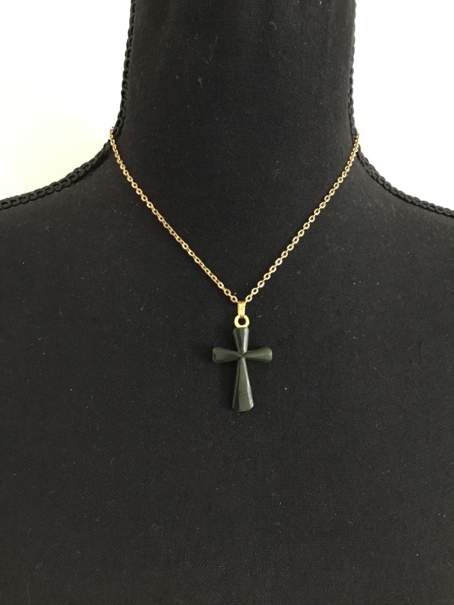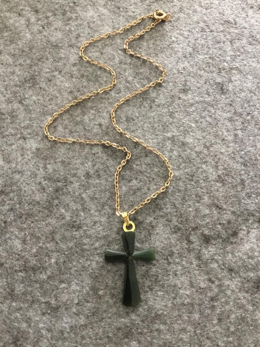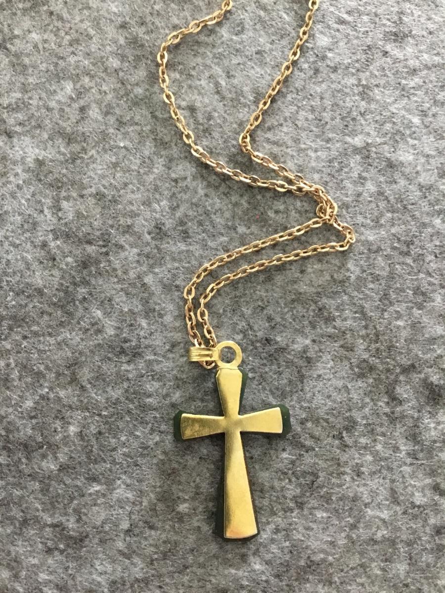 Beautiful vintage, jade cross gemstone in gold tone, vintage chain necklace