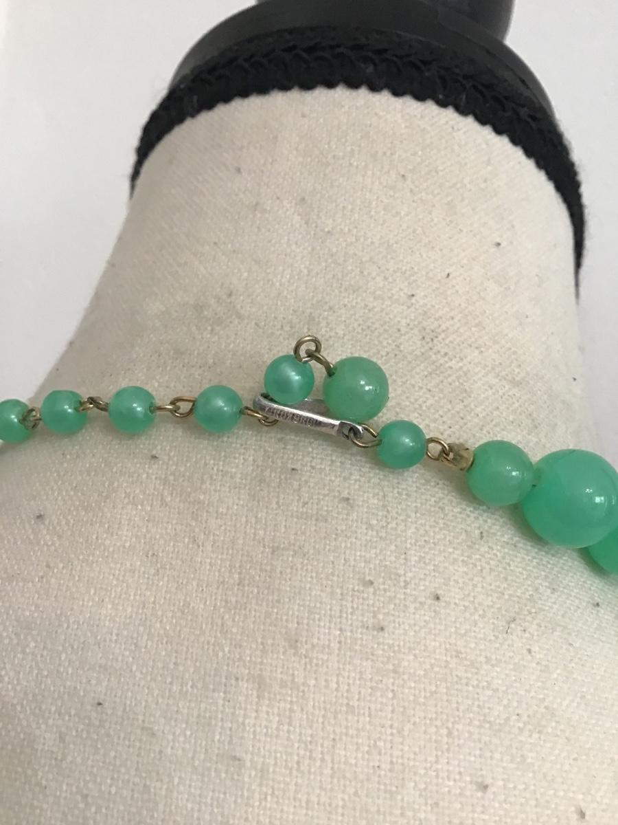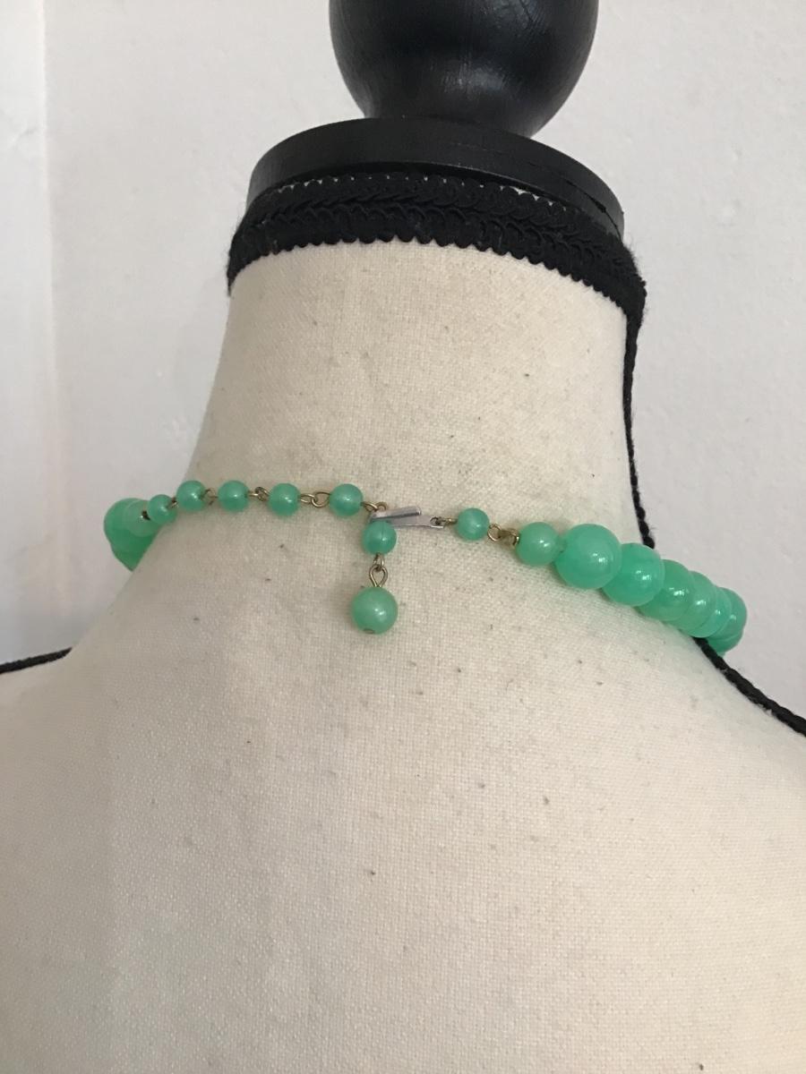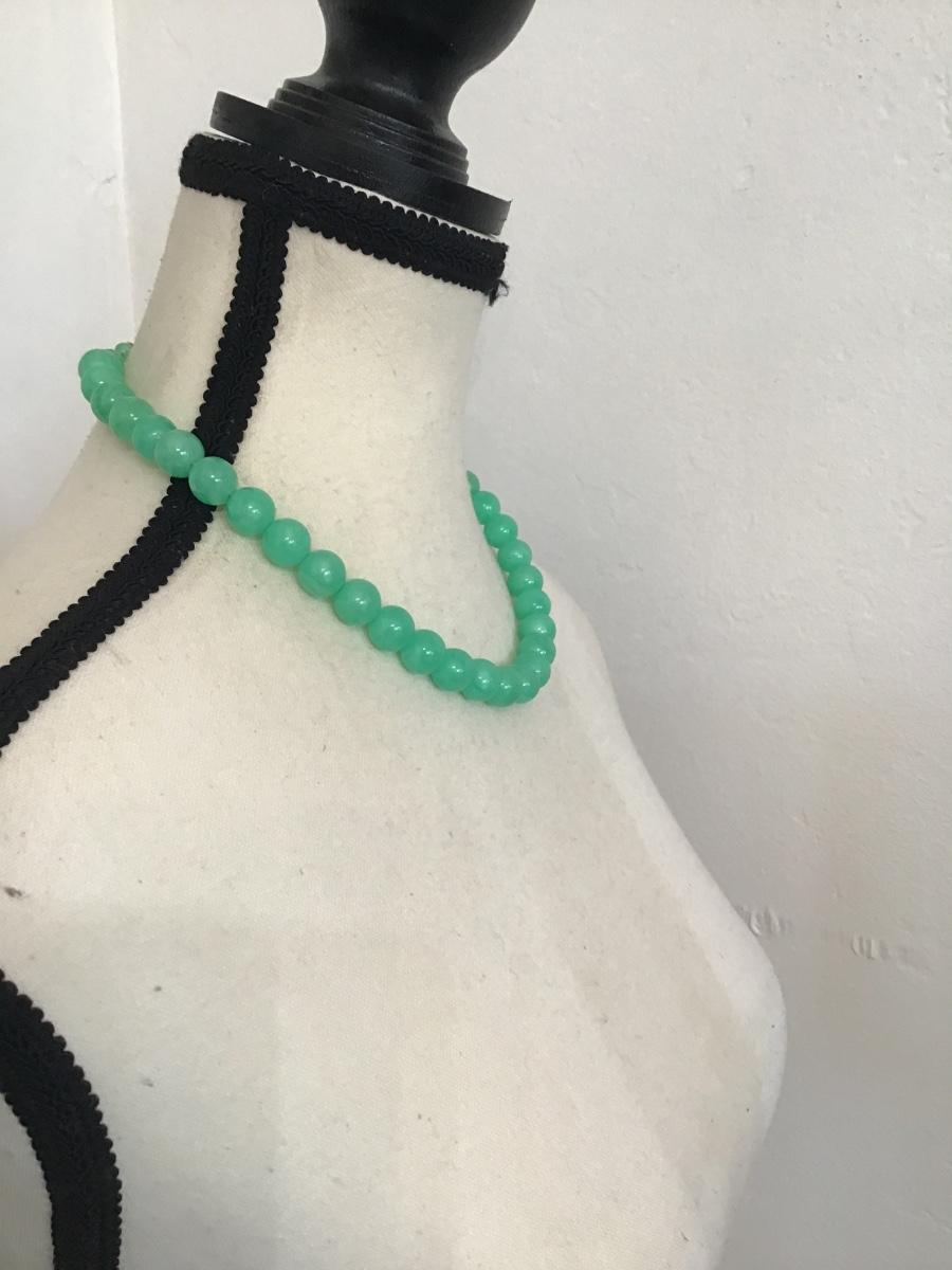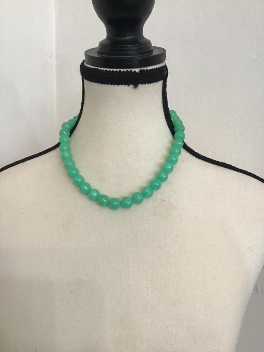 Beautiful vintage jadeite colored beaded choker style necklace. Please see attached photos.