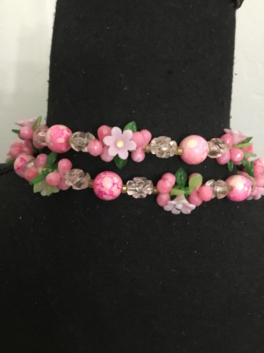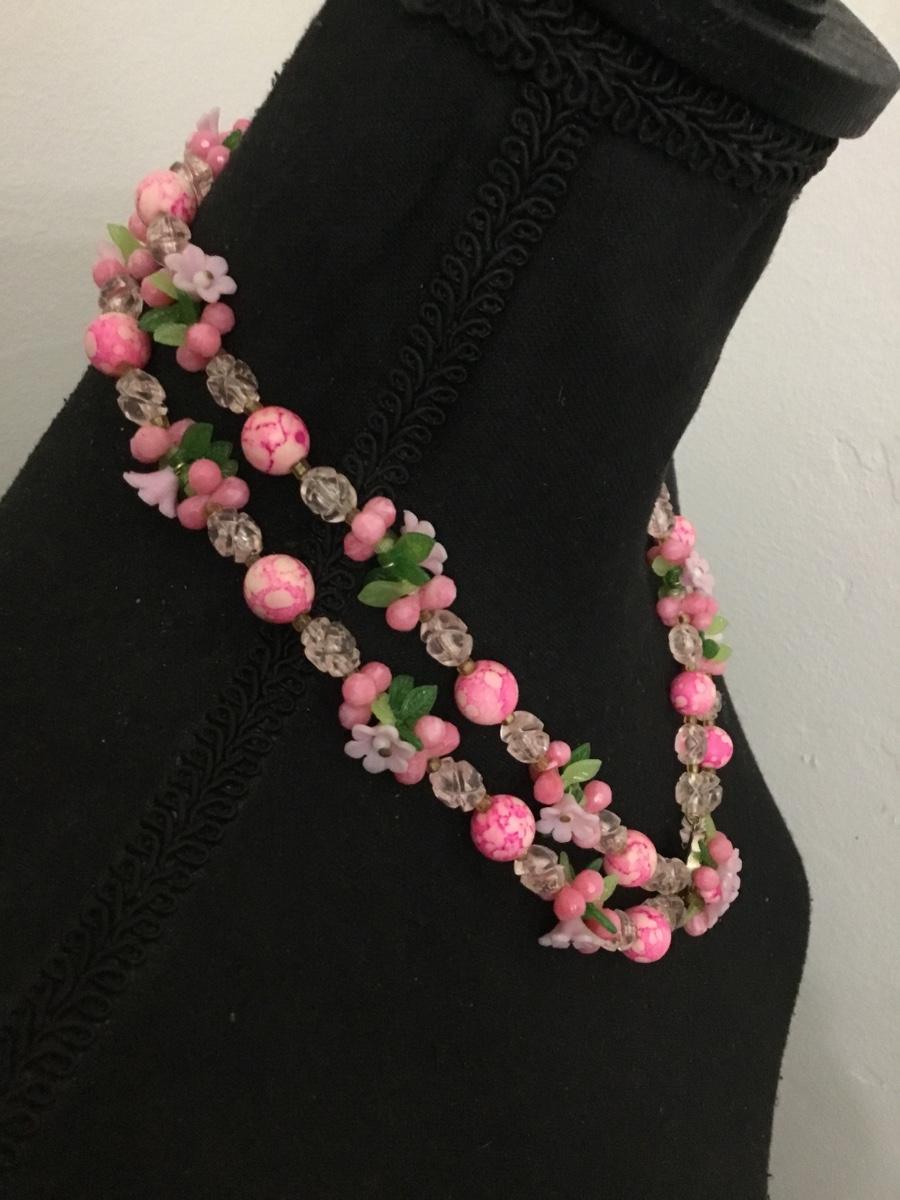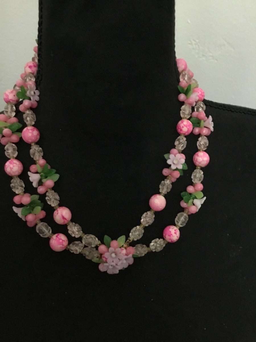 Beautiful Vintage Japan Floral pink Lucite 2 Strand Necklace. Great condition