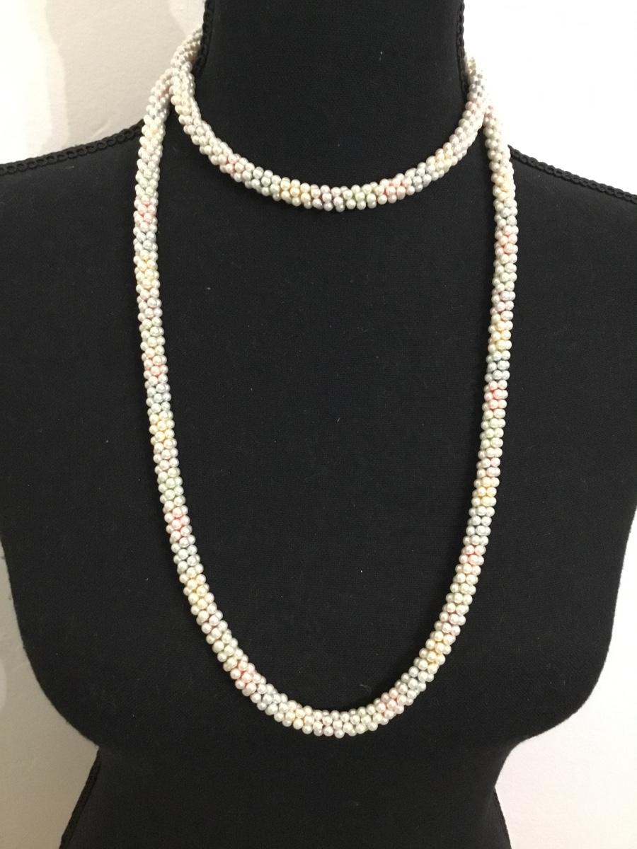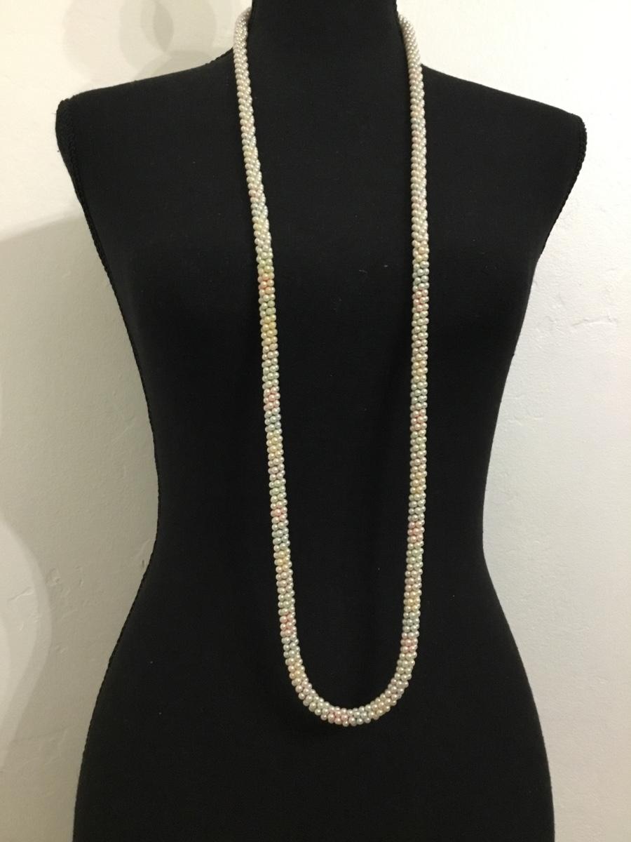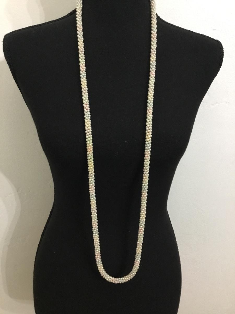 Beautiful vintage light pastel faux pearl rope necklace