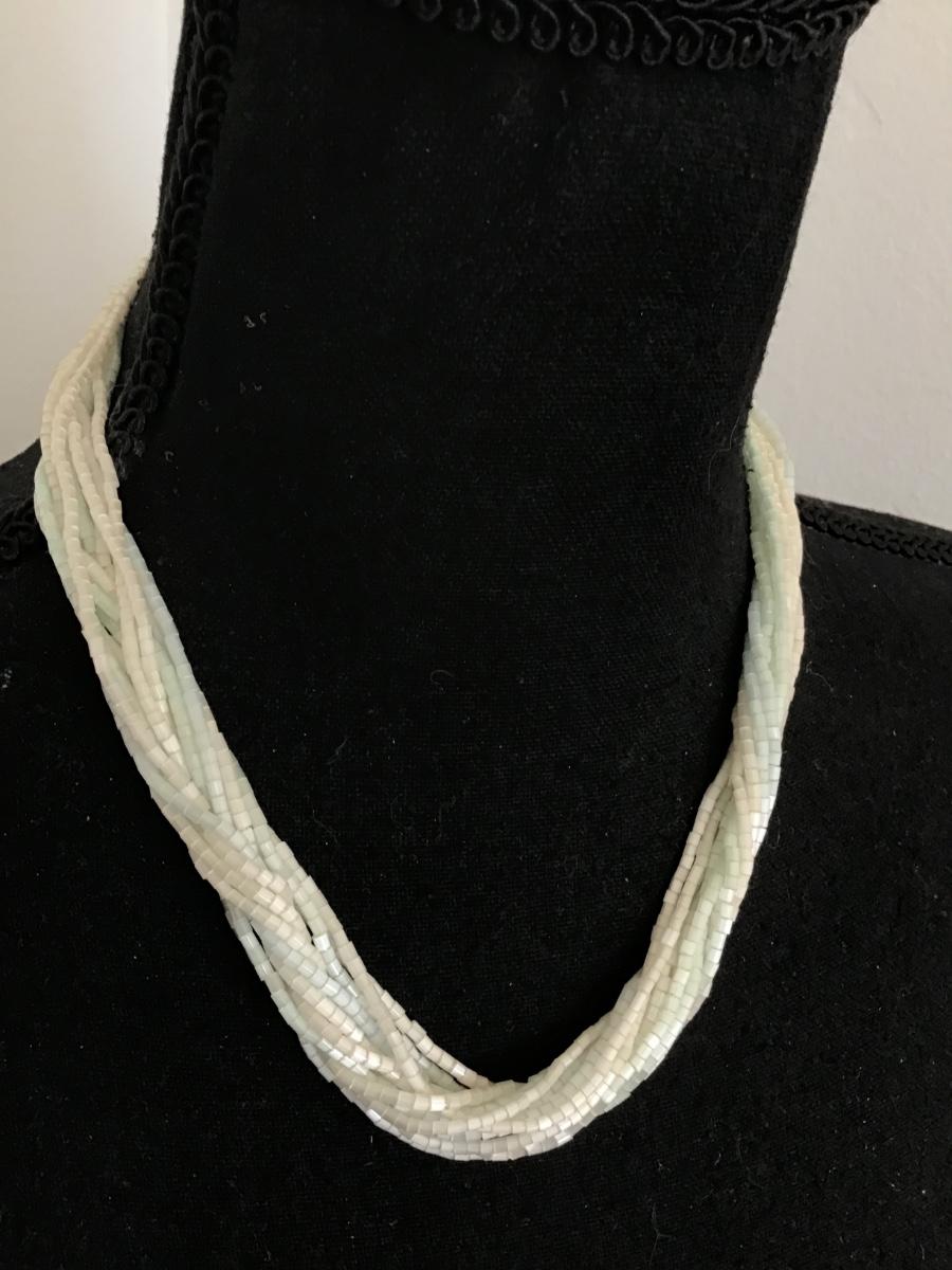 Beautiful Vintage Light Sage White Shell /Glass Necklace