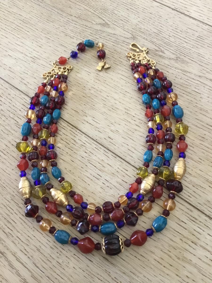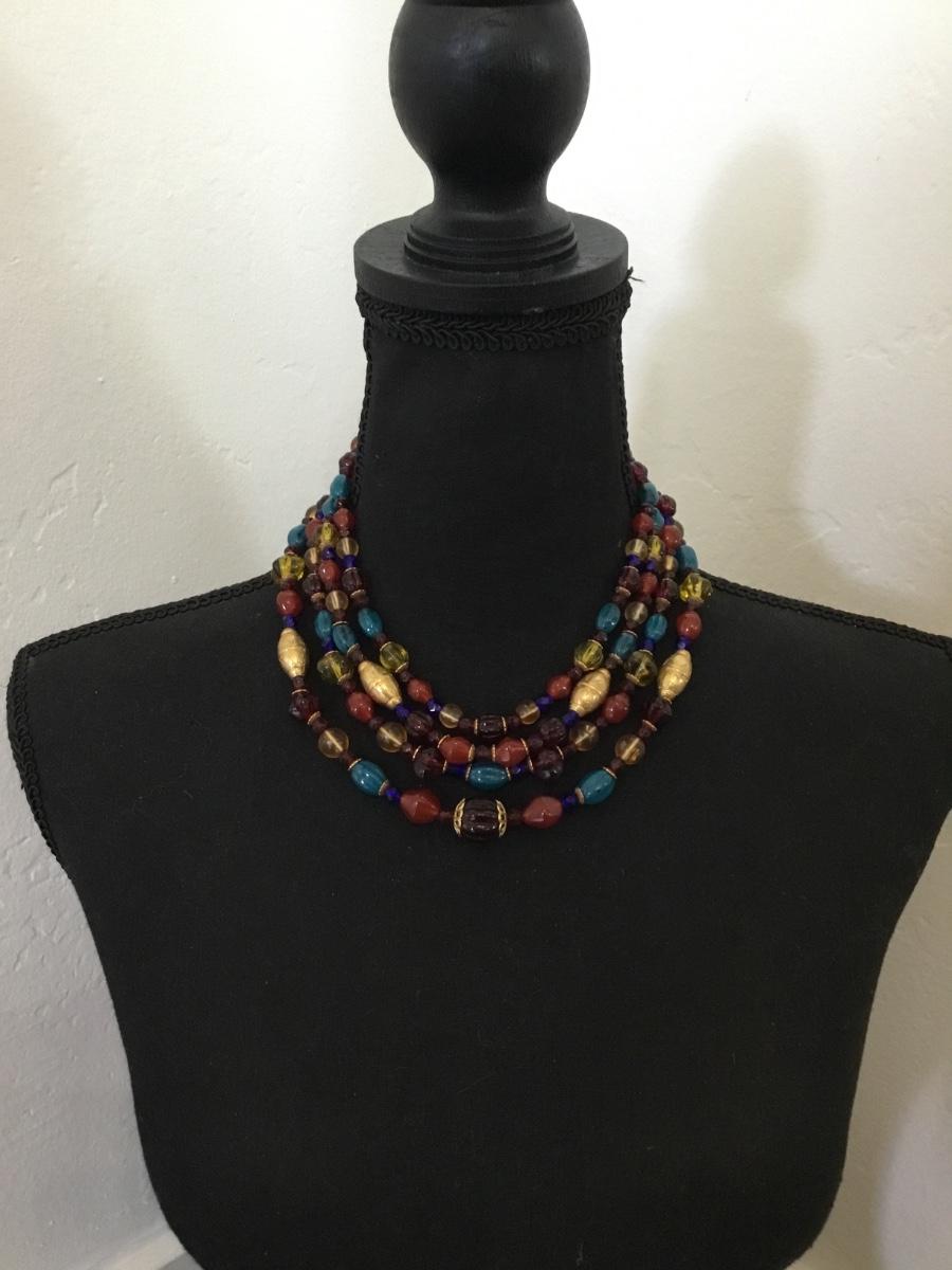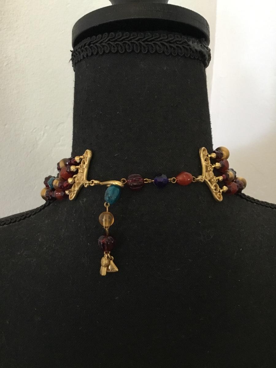 Beautiful vintage, Liz Claiborne multicolored bead Etruscan revival bid statement necklace