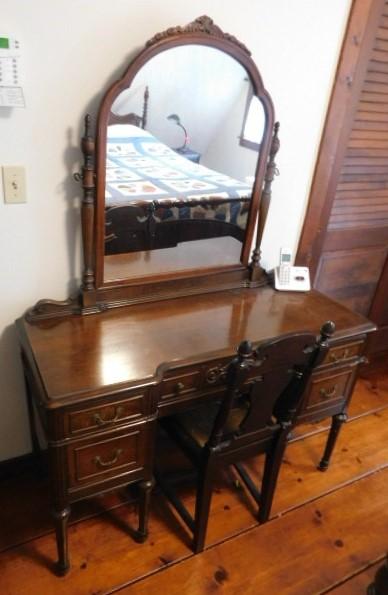 Beautiful Vintage Mahogany Vanity Desk with Swivel Mirror 47"x30" expect scratches or wear