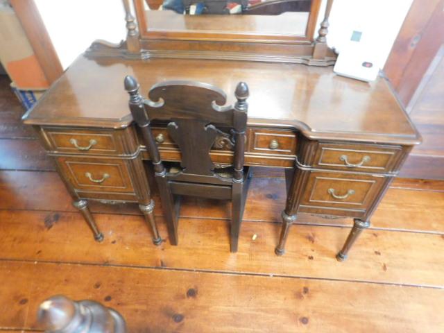 Beautiful Vintage Mahogany Vanity Desk with Swivel Mirror 47"x30"