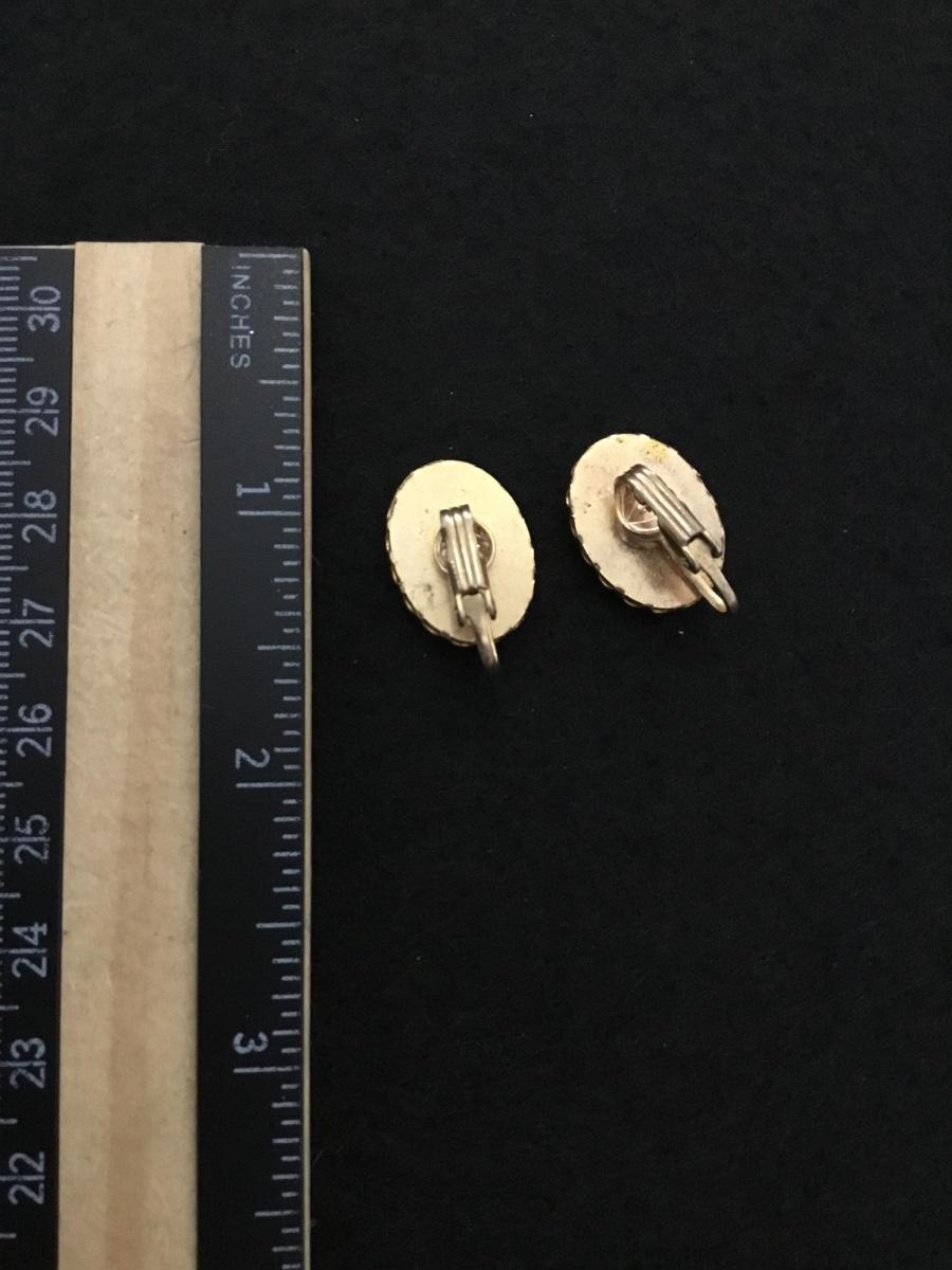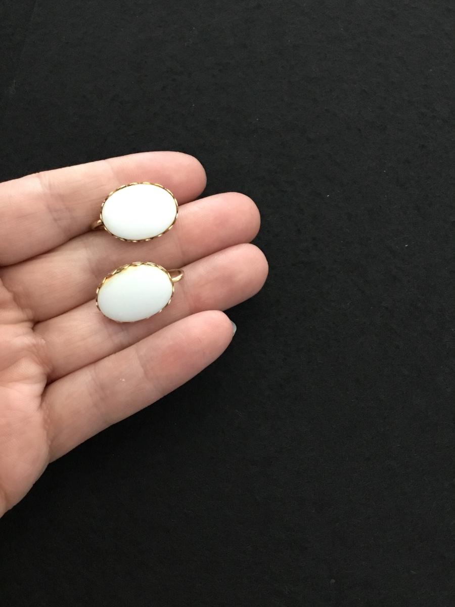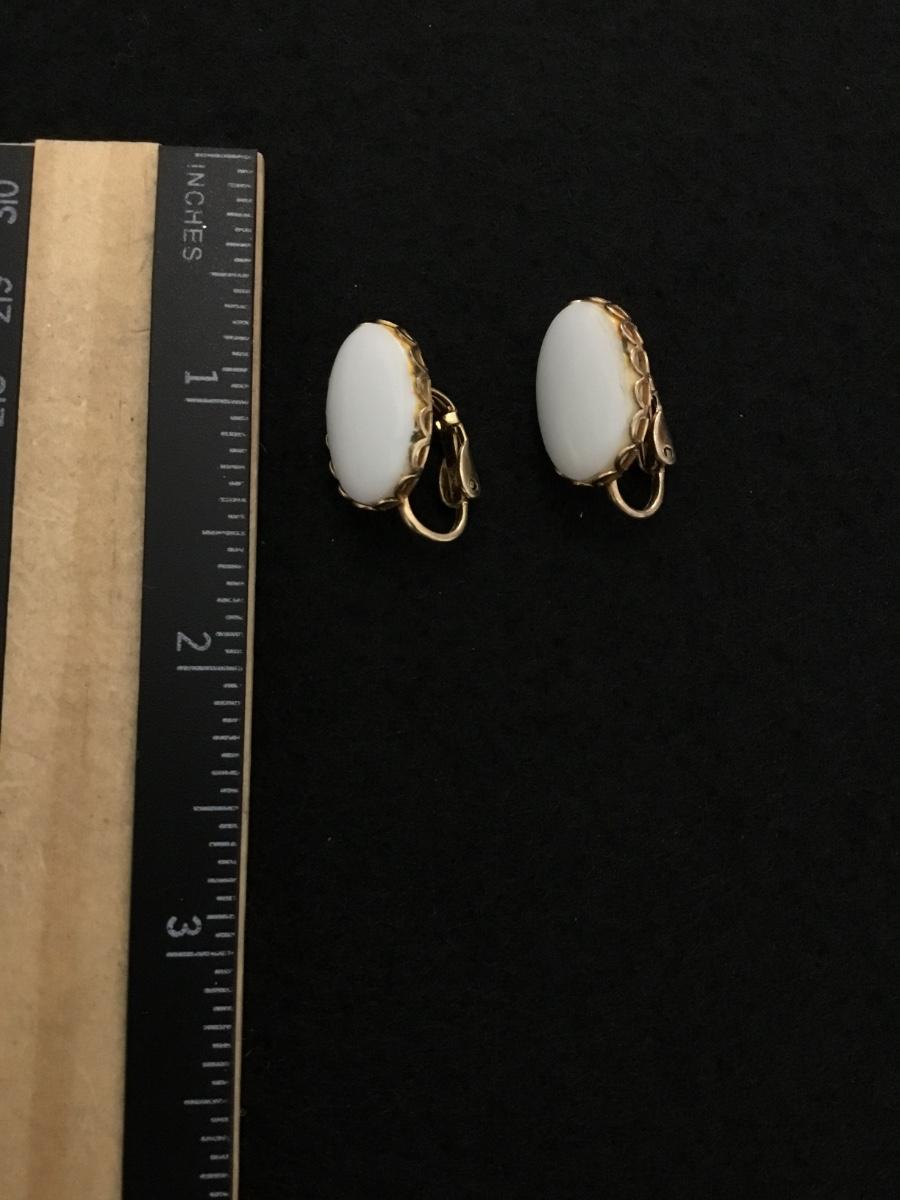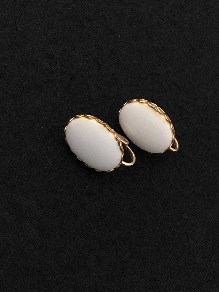 Beautiful vintage, milk, glass, oval shaped gold toned clip on’s earrings