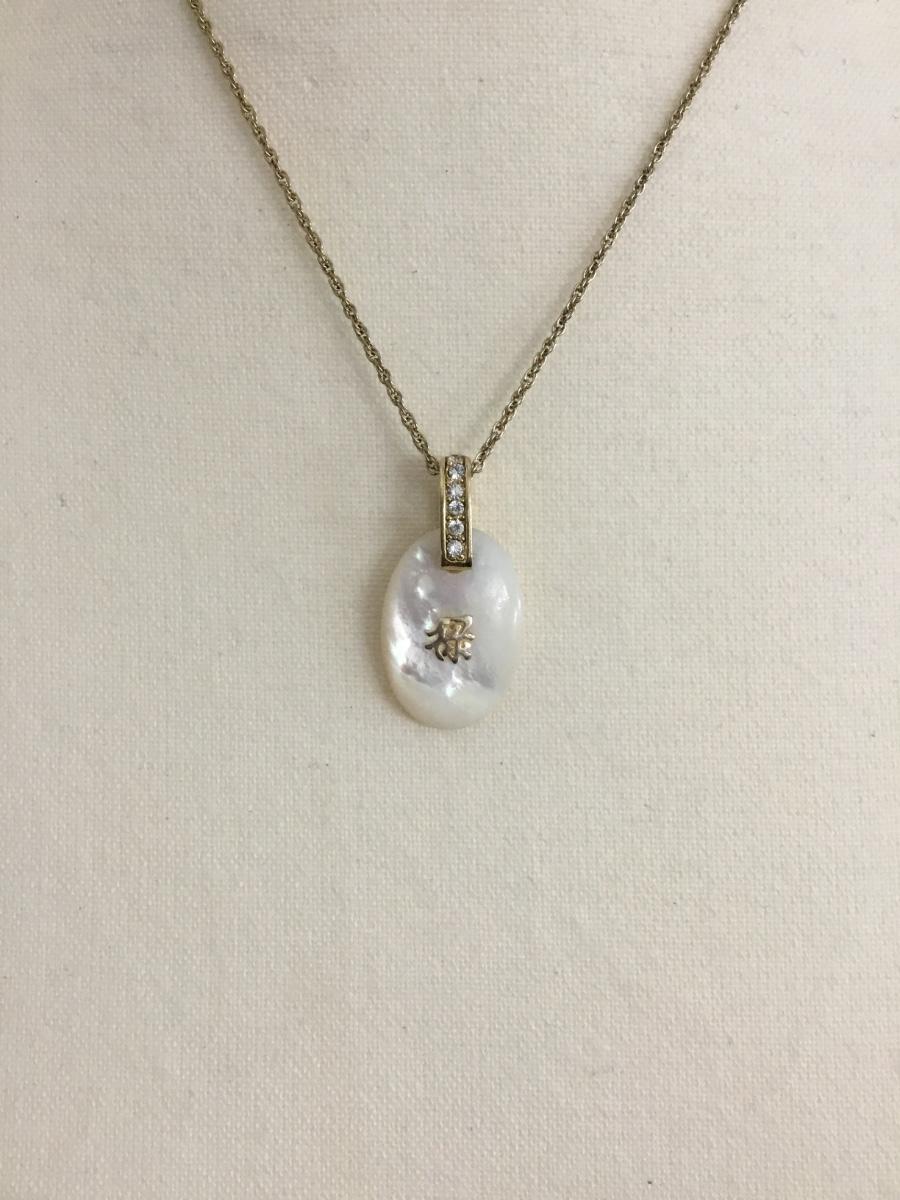 Beautiful vintage mother of pearl pendant, gold toned, chain necklace