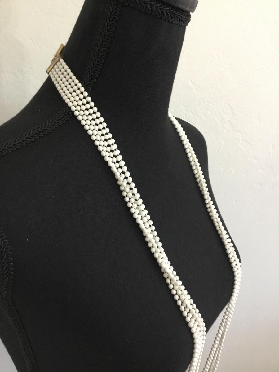 Beautiful, vintage, multi layered white beard, flapper style necklace