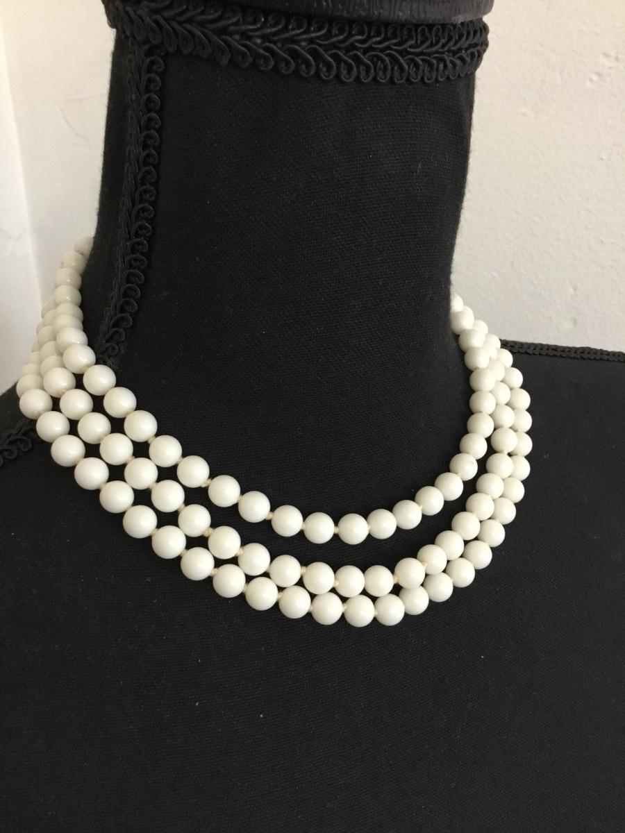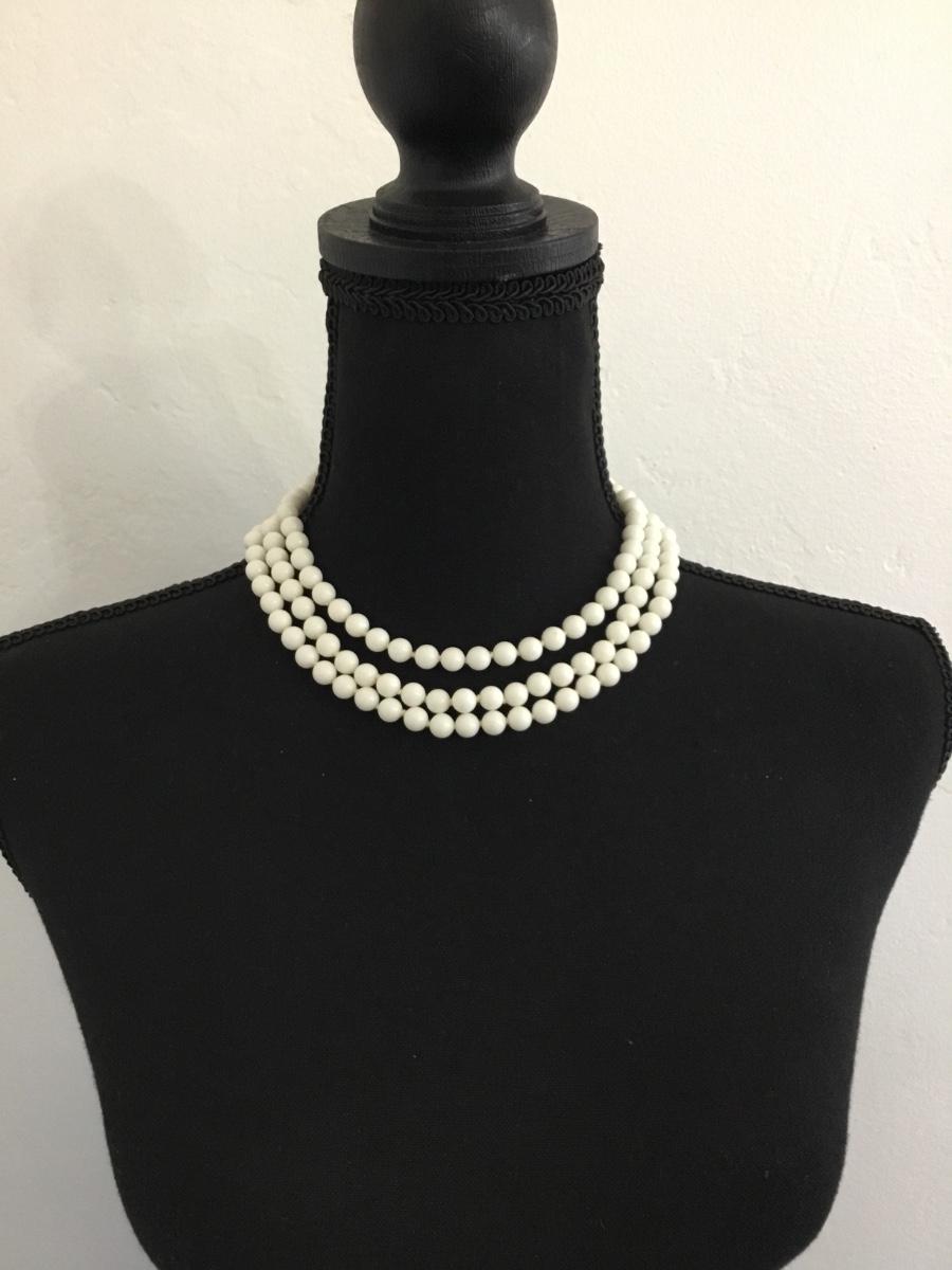 Beautiful, vintage, multi layered white bead, choker statement, necklace
