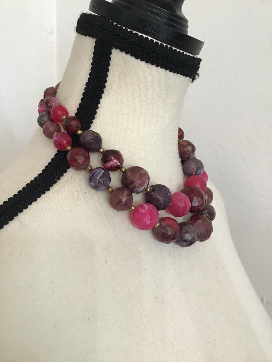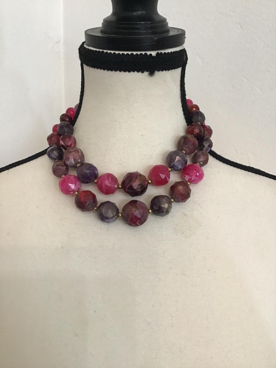 Beautiful, vintage, multi strand, faceted, purple, and pink beads. Please see attached photos.