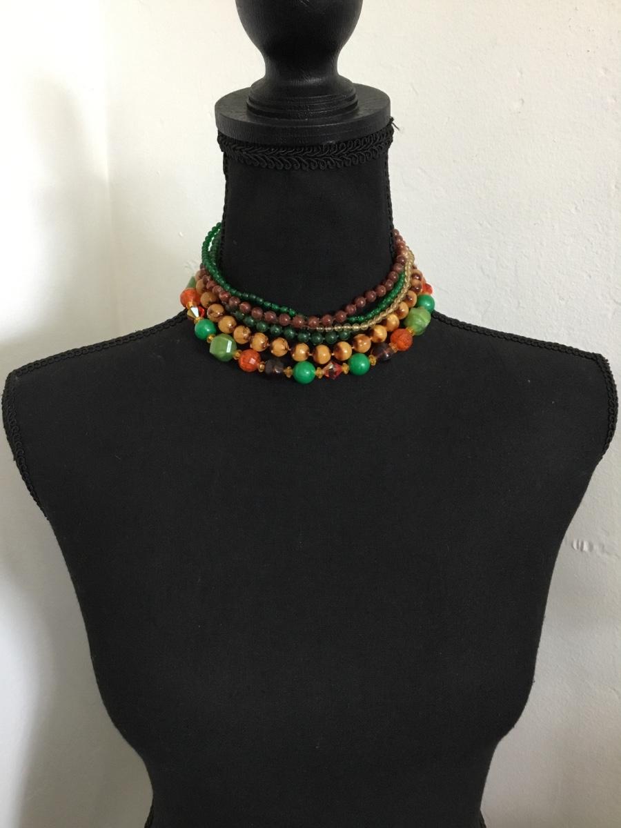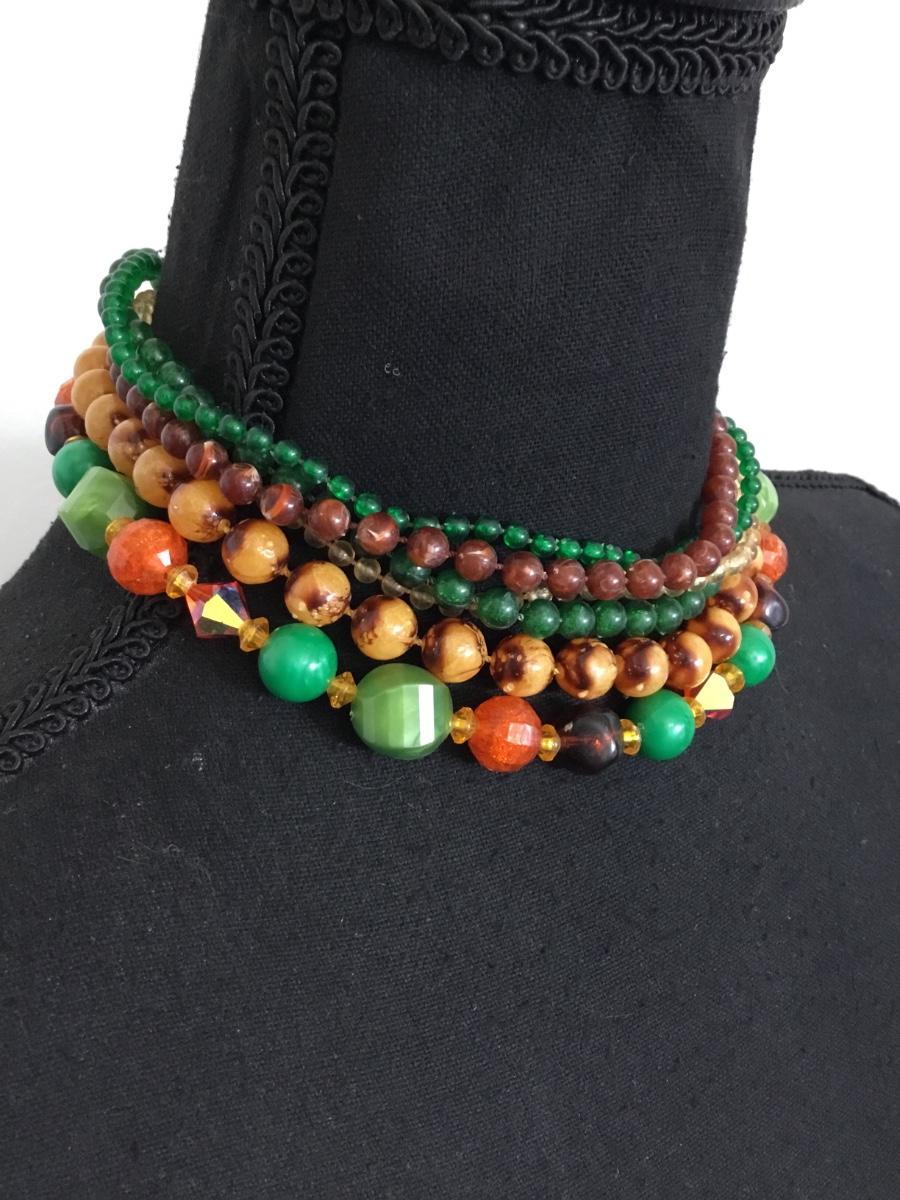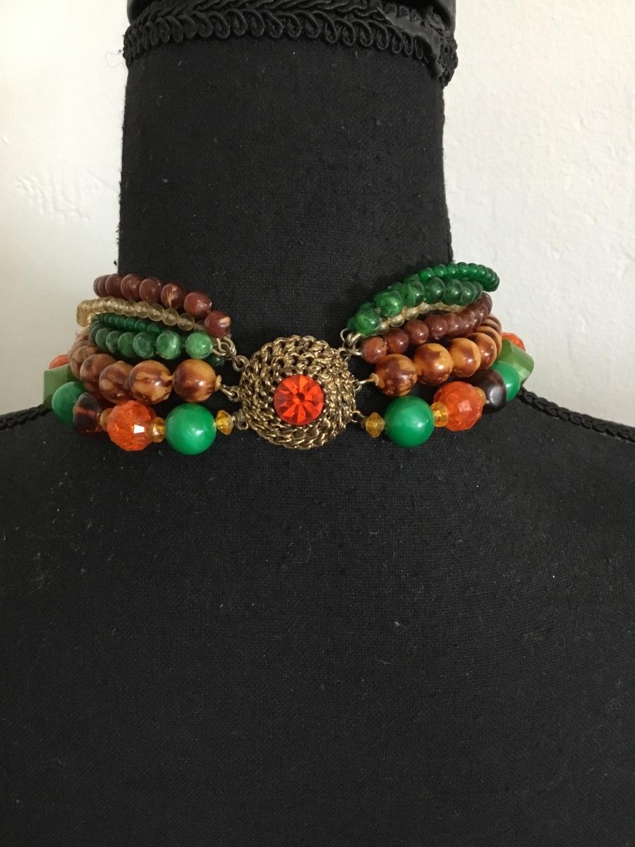 Beautiful, vintage, multi strand Lucite type bead necklace with beautiful clasp, gold toned