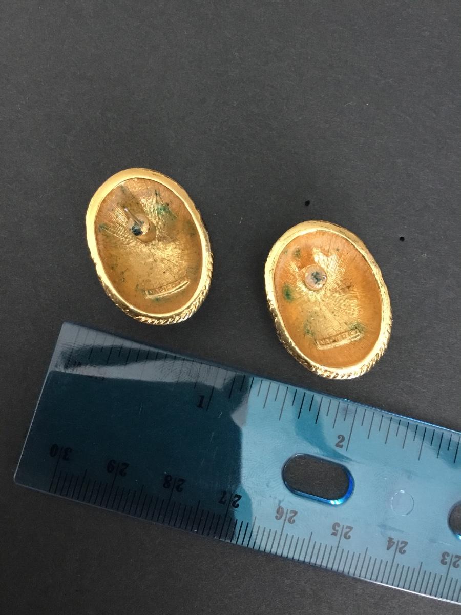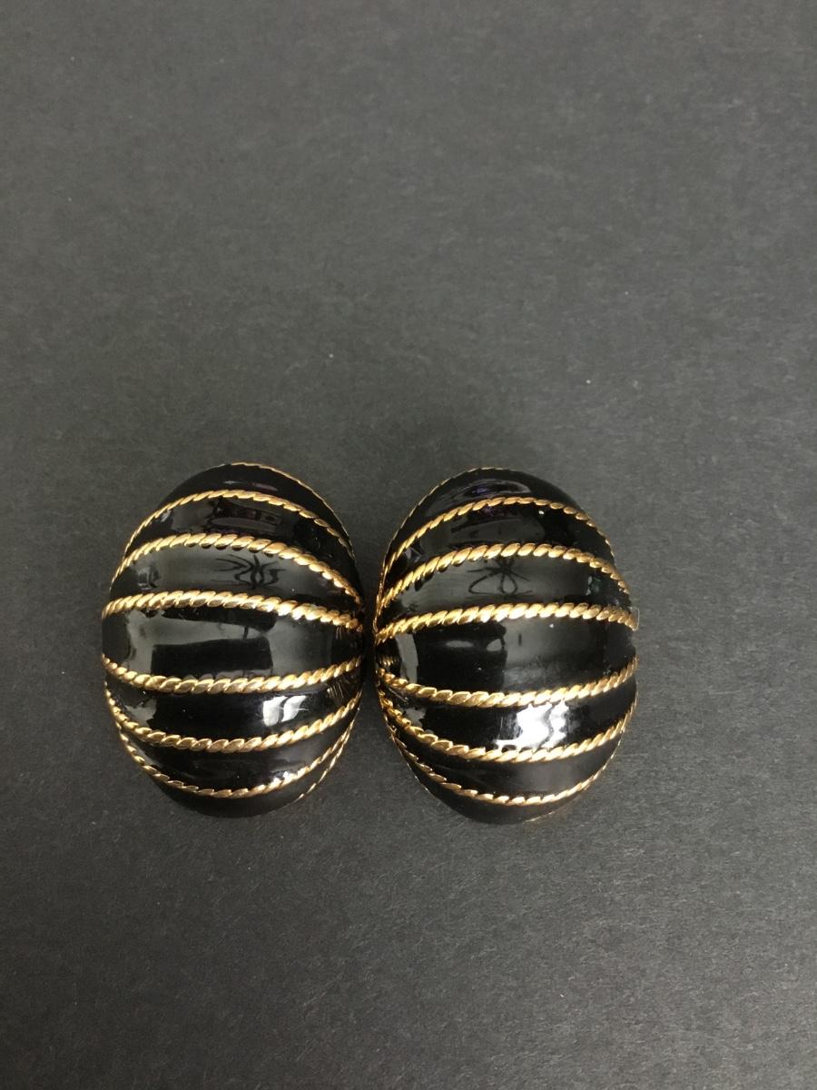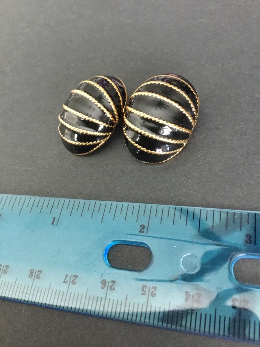 Beautiful, vintage, Napier dome Black enamel gold rope stud statement earrings