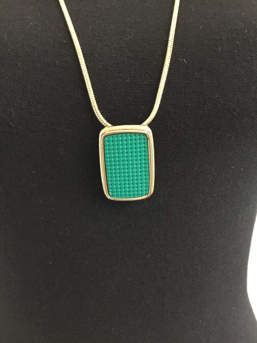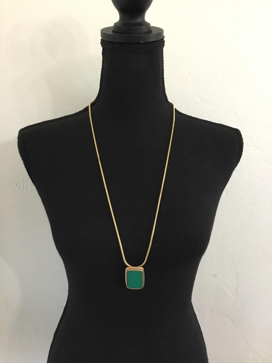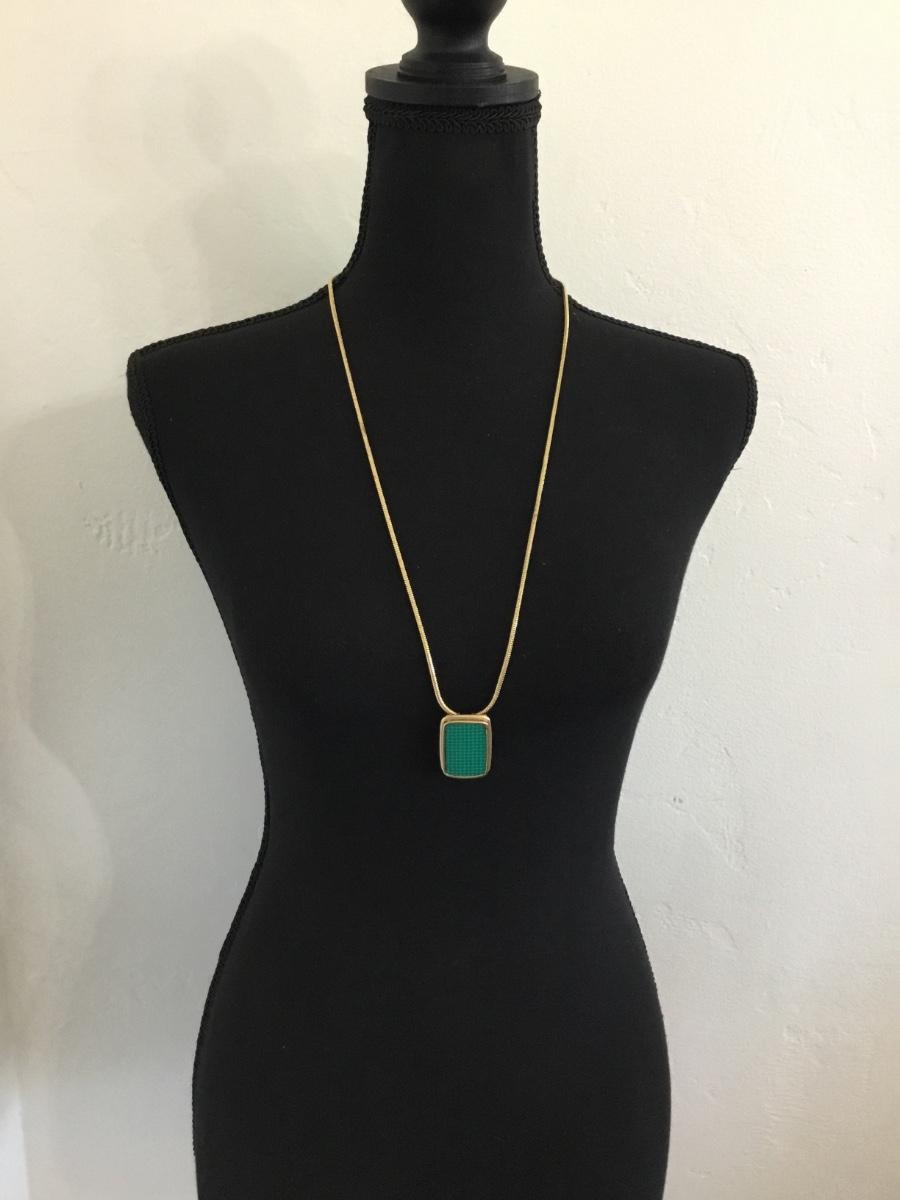 Beautiful vintage nicely made gold tone, sea green pendant, fashion, necklace