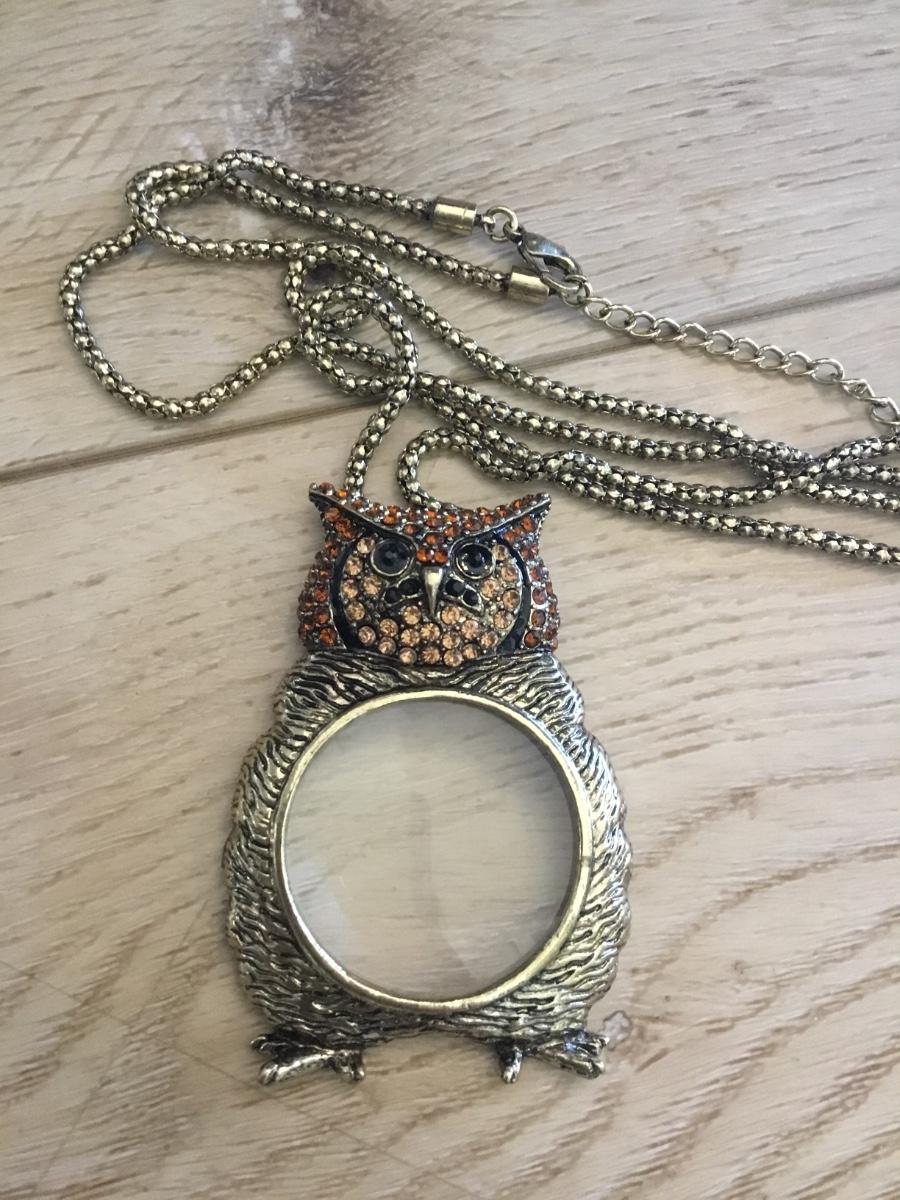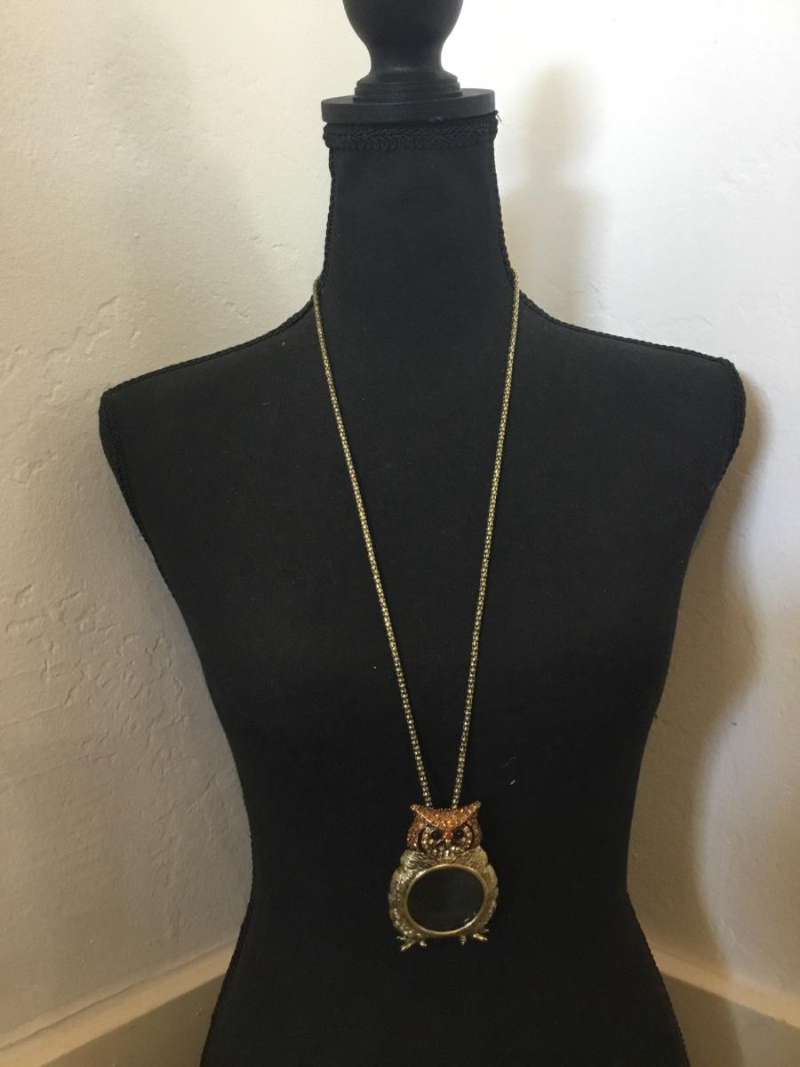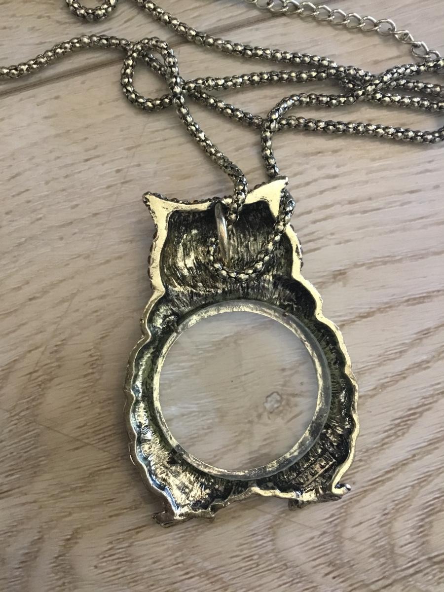 Beautiful vintage off park collection Al magnifying glass with Amber tone crystals large pendant necklace