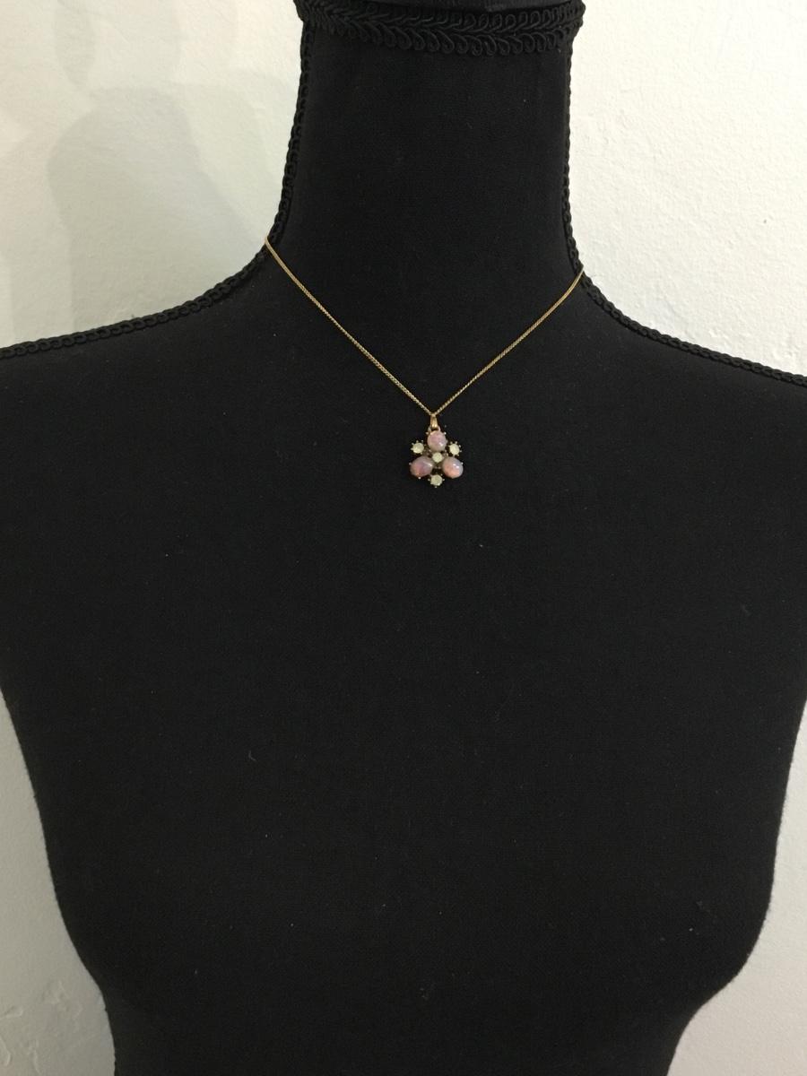 Beautiful vintage, opal pendant, and gold tone chain necklace