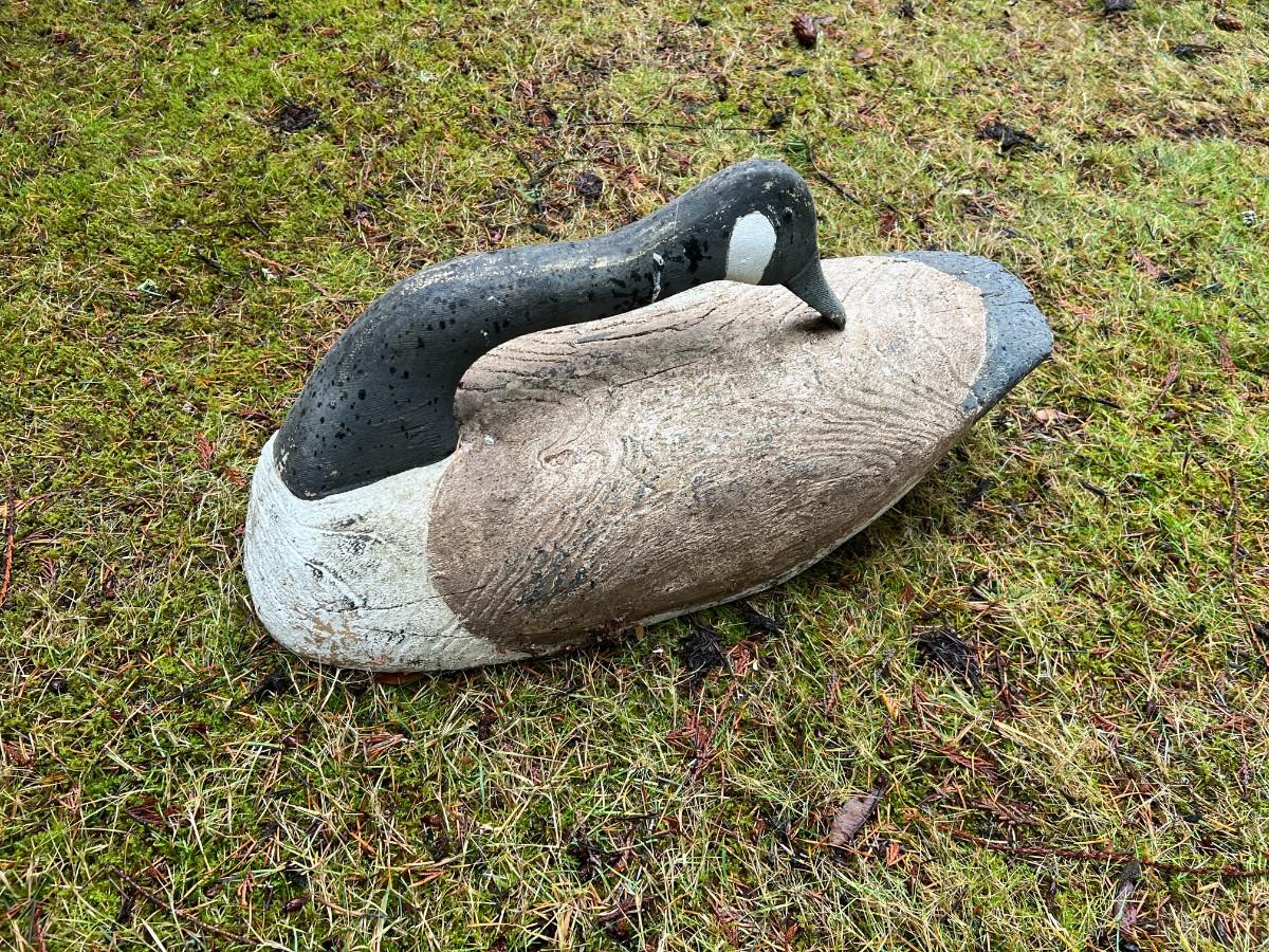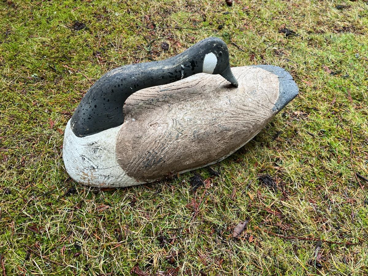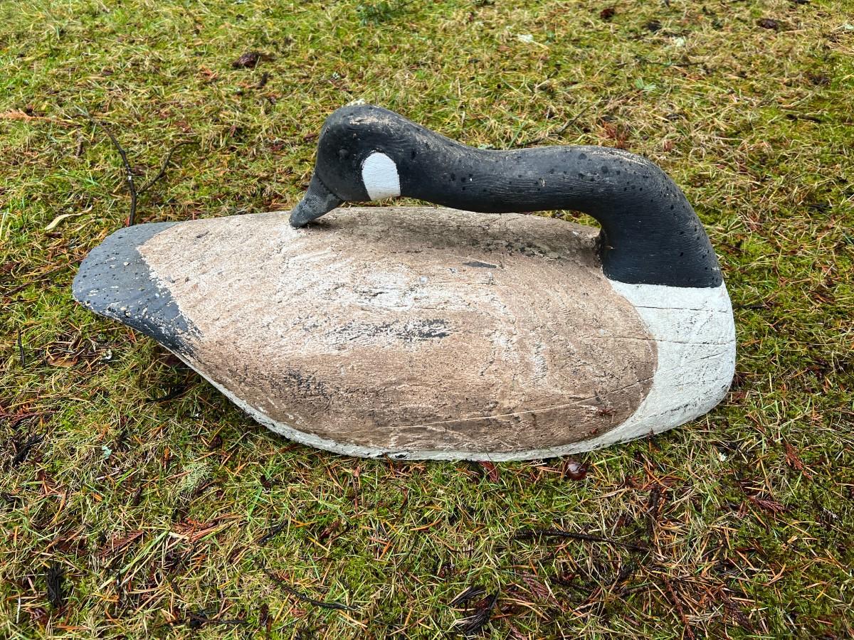 Beautiful Vintage Painted Wood Goose, with beautiful curved neck design. In good condition, with some signs of weathering (as shown).