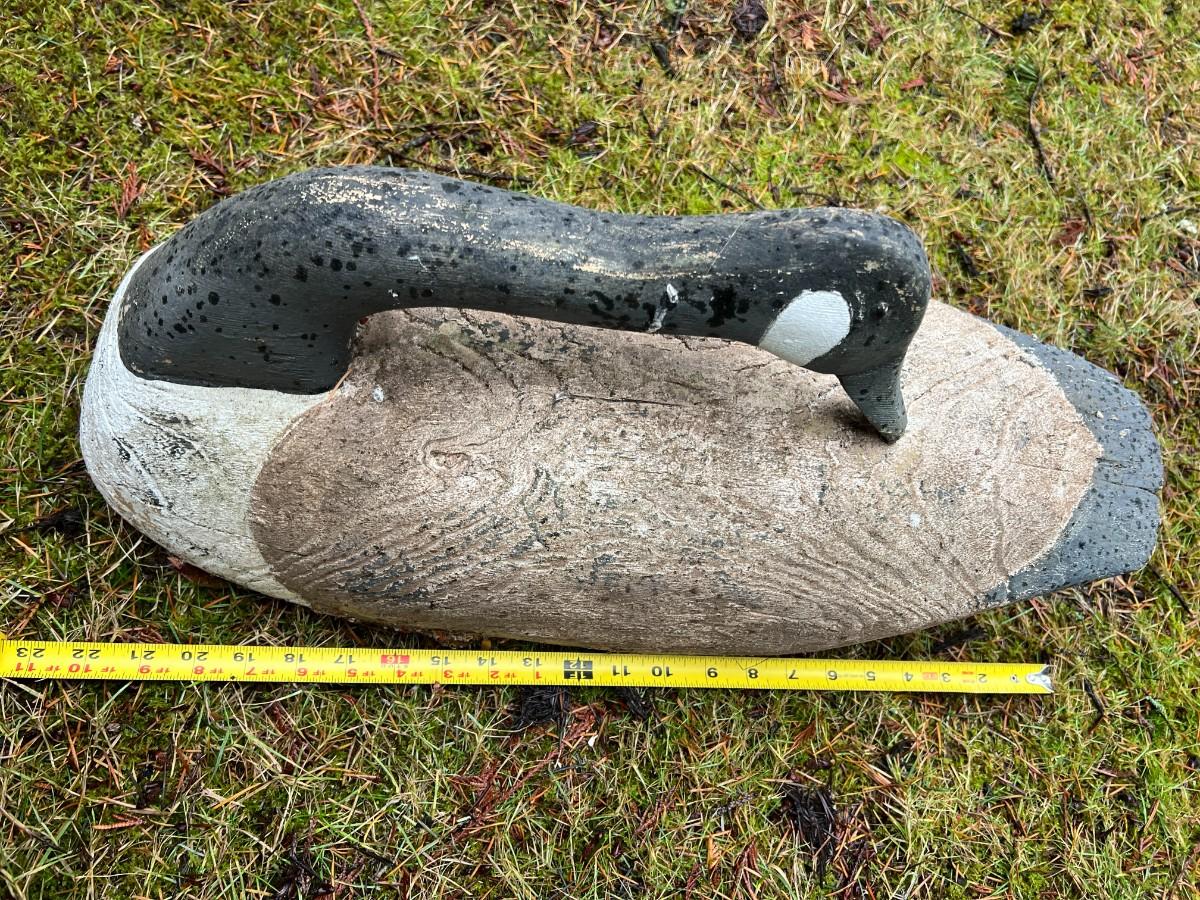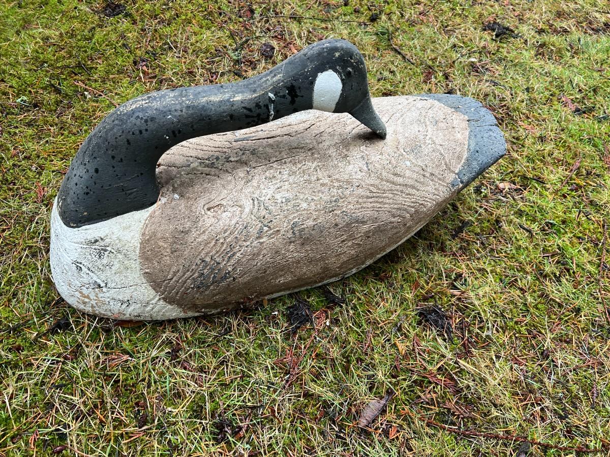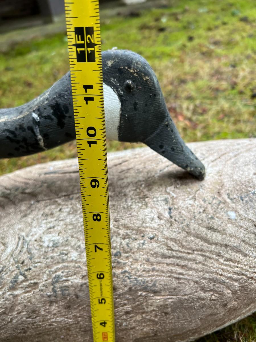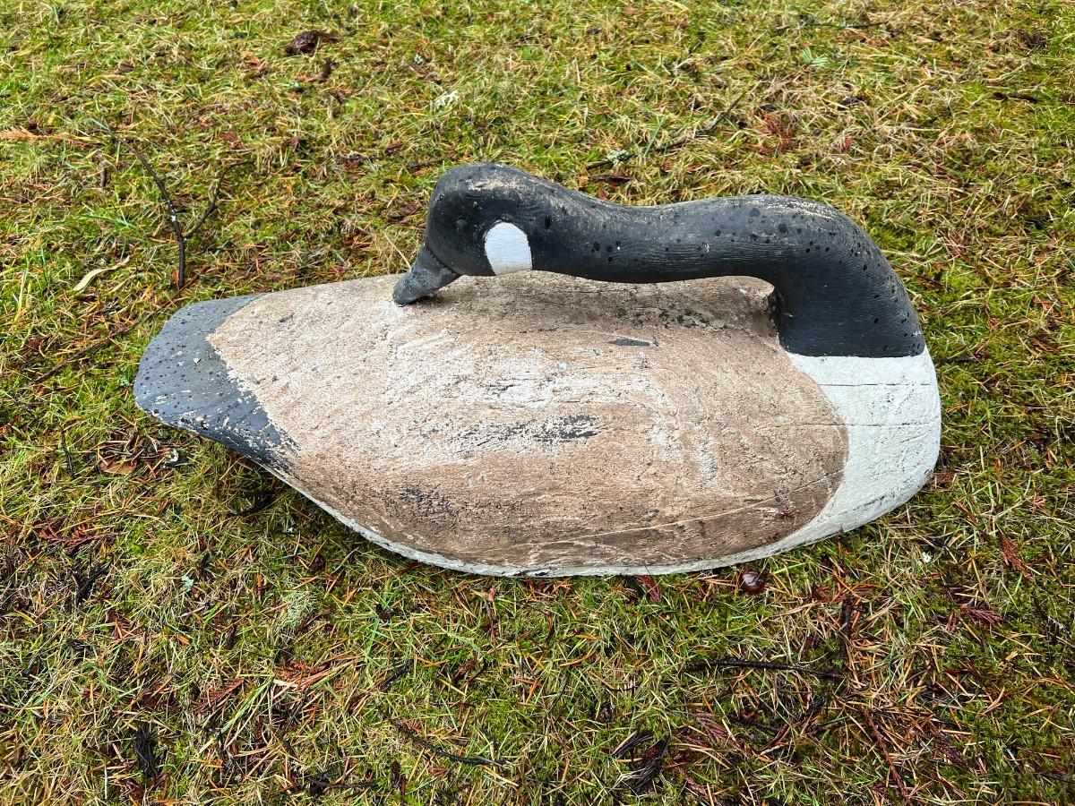 Beautiful Vintage Painted Wood Goose, with beautiful curved neck design. In good condition, with some signs of weathering (as shown).