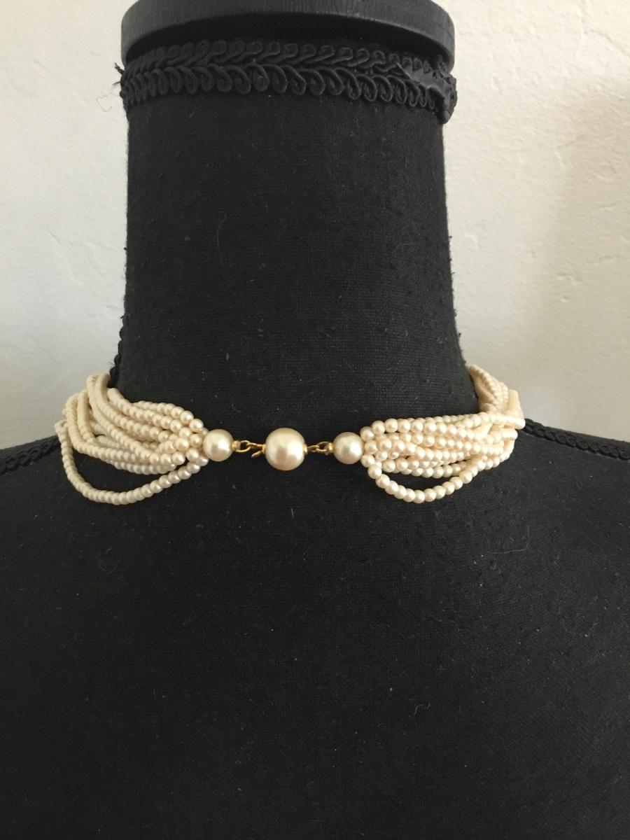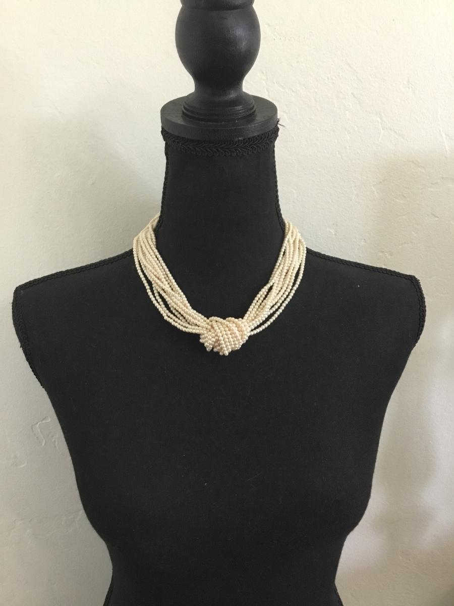 Beautiful vintage, pearl multi strand, nodded statement, necklace, gold toned, excellent condition