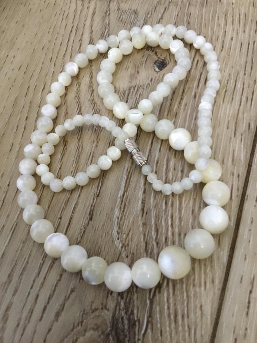Beautiful, vintage, pearly stone beaded necklace with barrel clasp