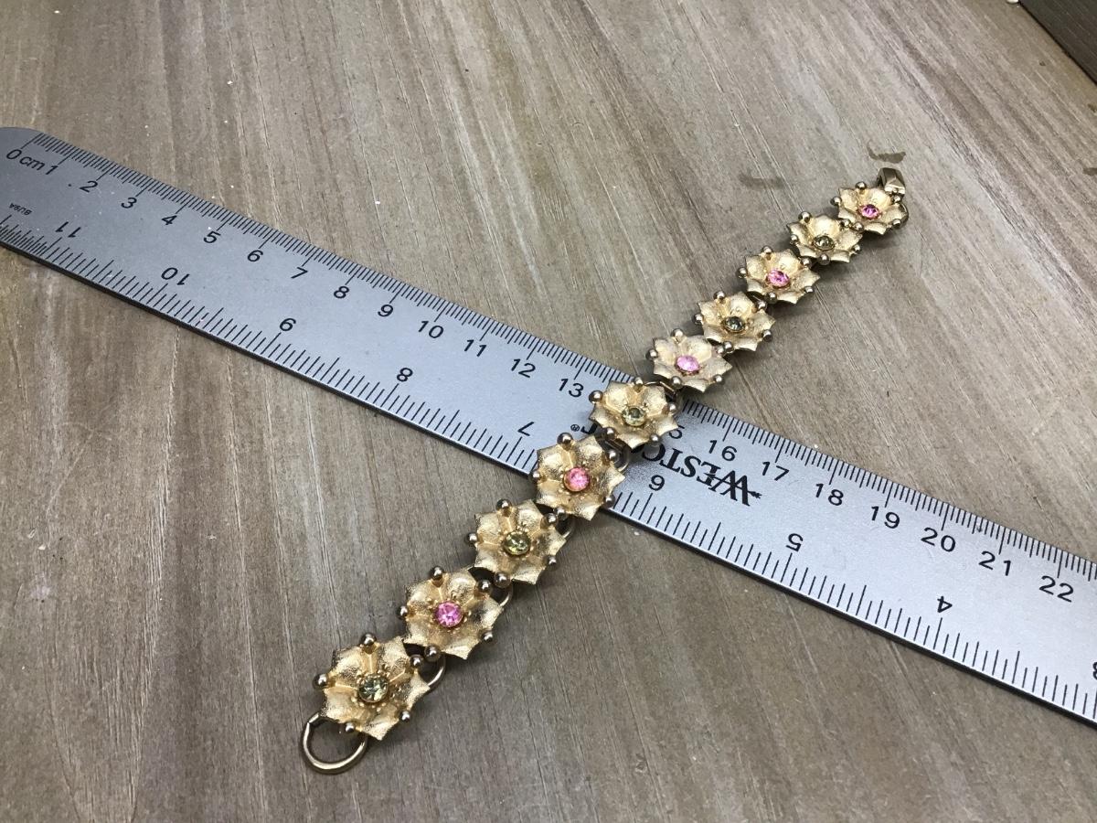 Beautiful Vintage pink and Clear Rhinestone Flower 🌸 Bracelet
