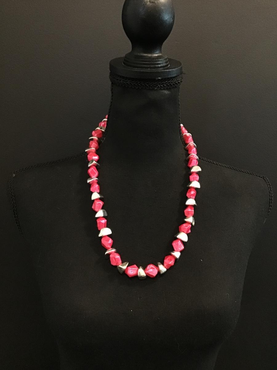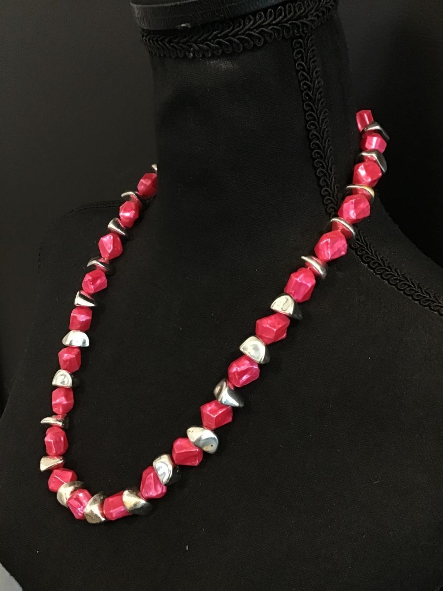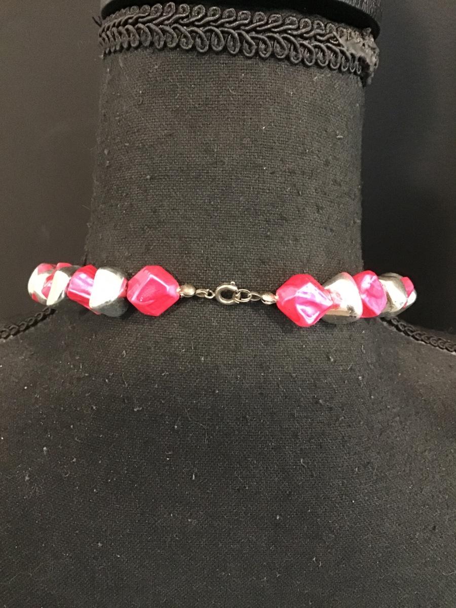Beautiful, vintage, pink and silver chrome, bead statement, necklace