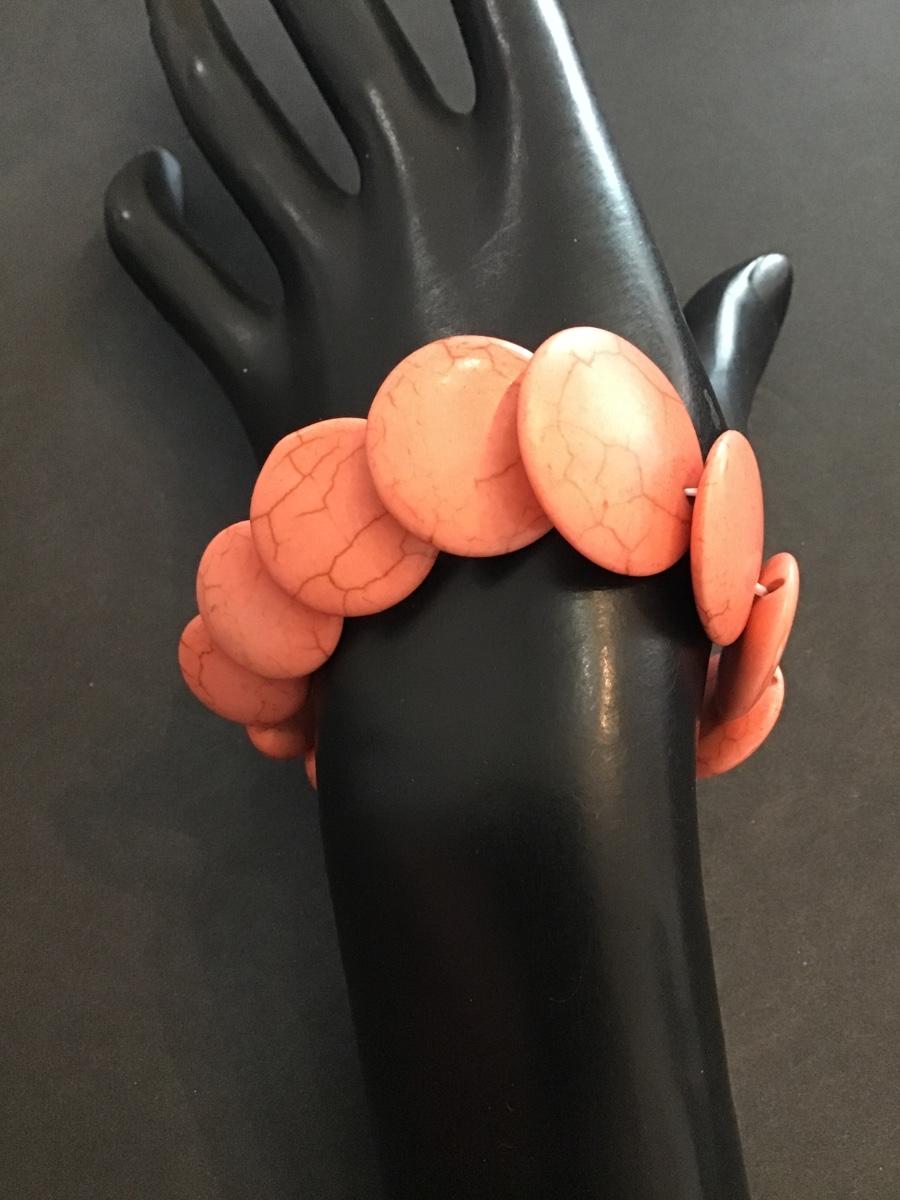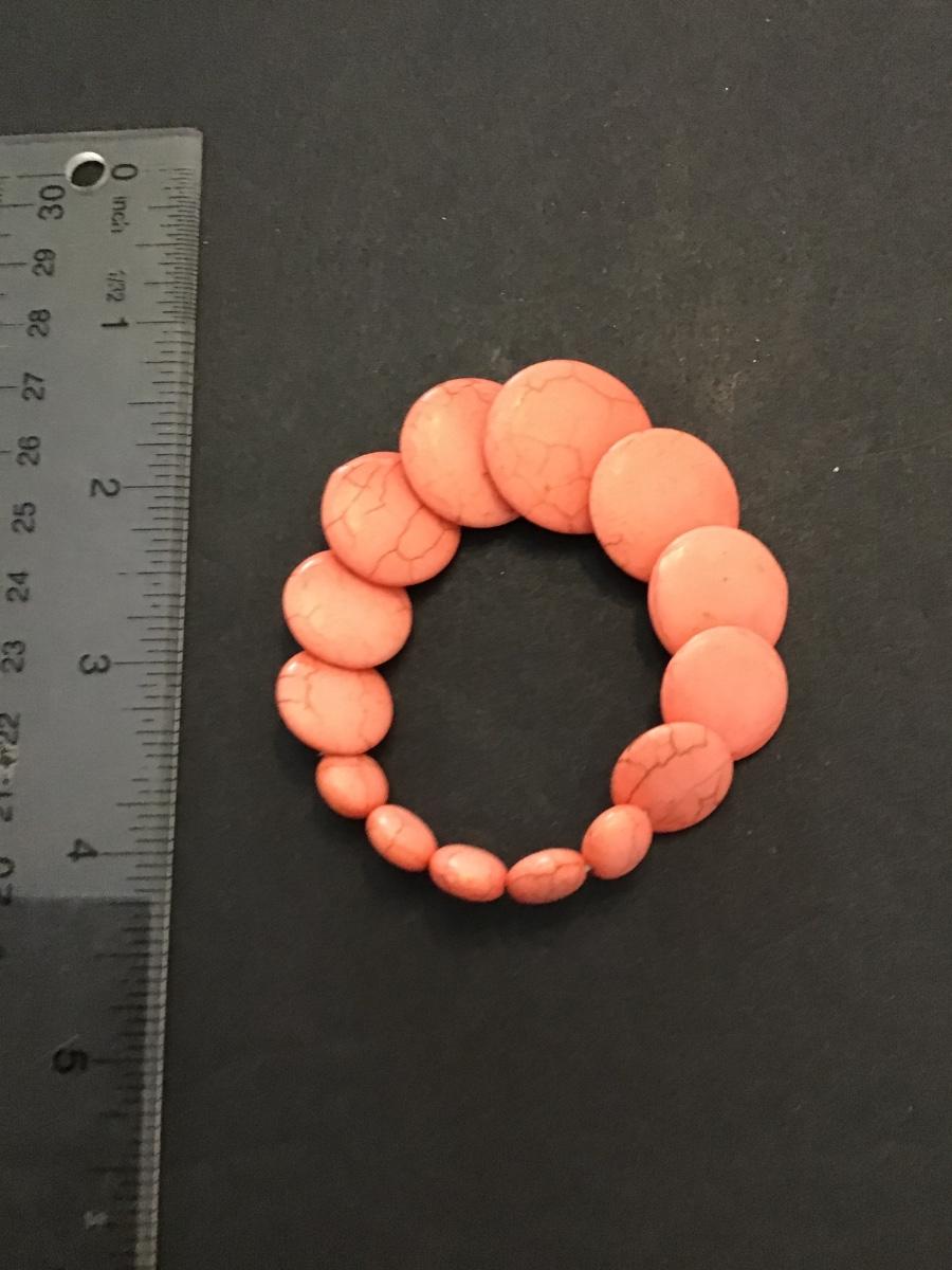 Beautiful vintage, pink polish stone stretchy bracelet. Please see attached photos.