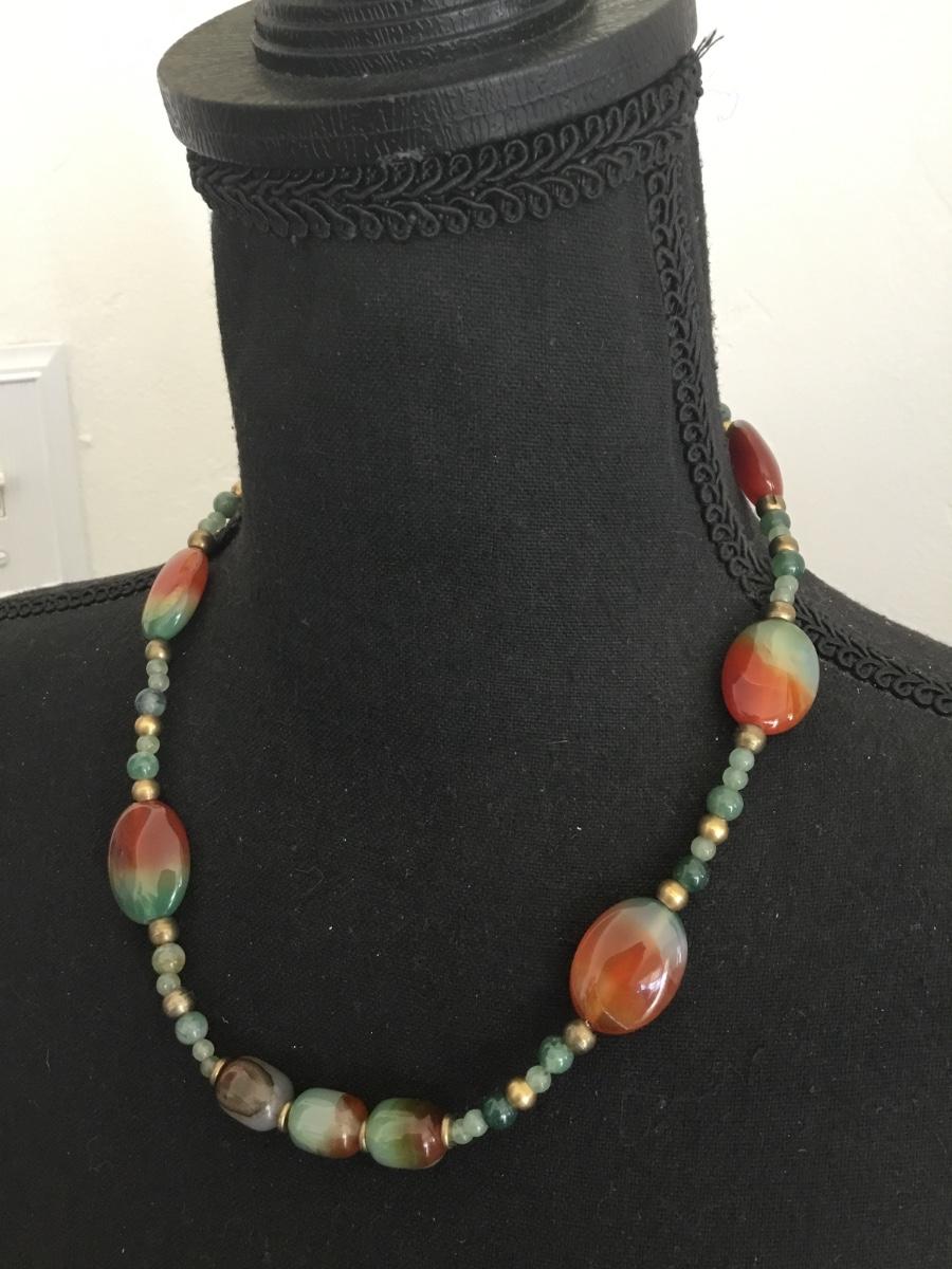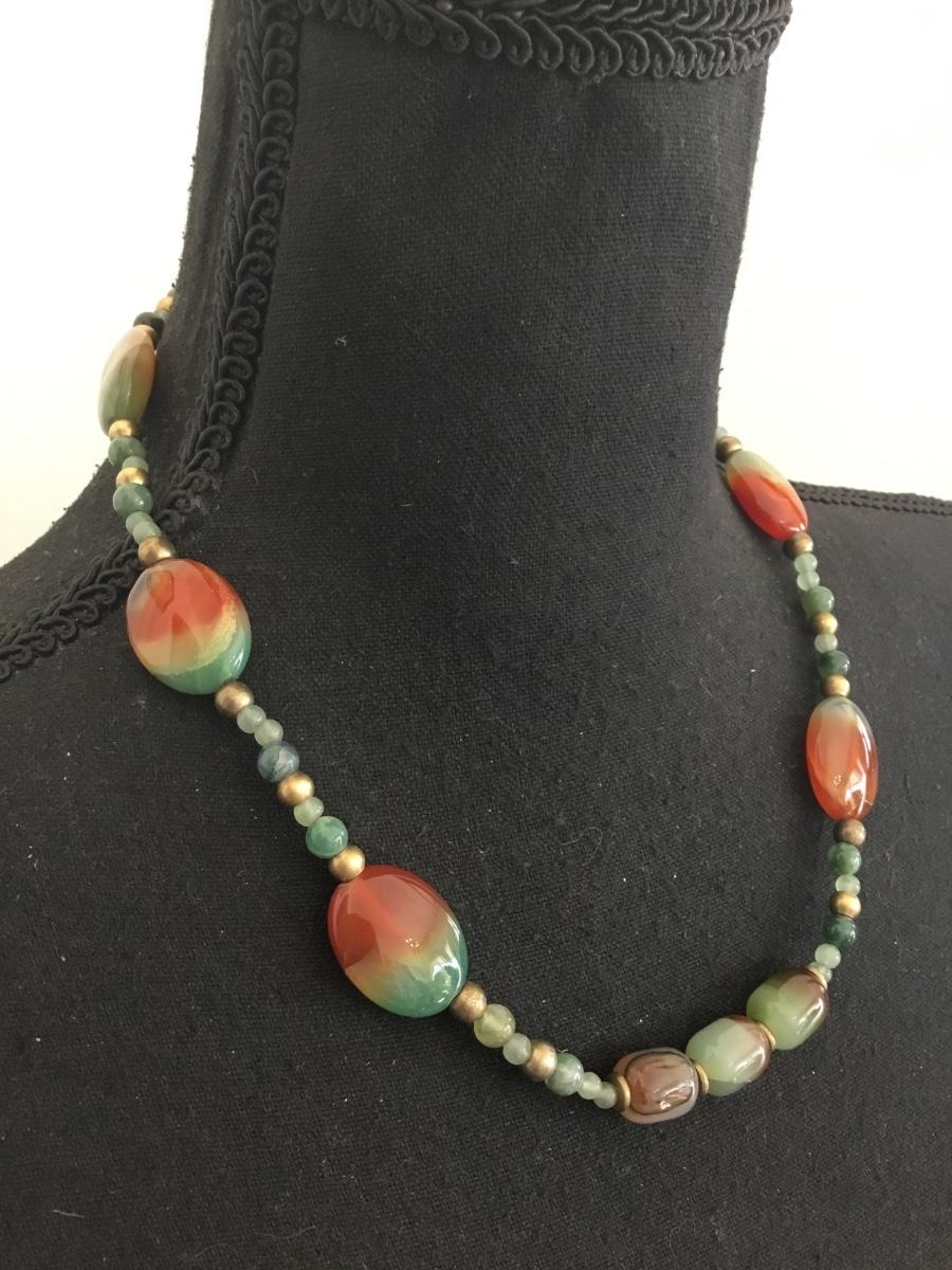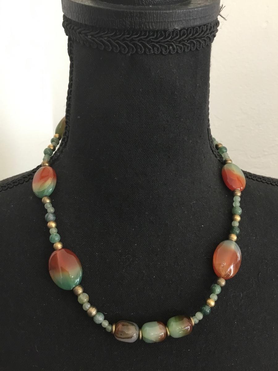 Beautiful, vintage, polished stone bead necklace with barrel clasp