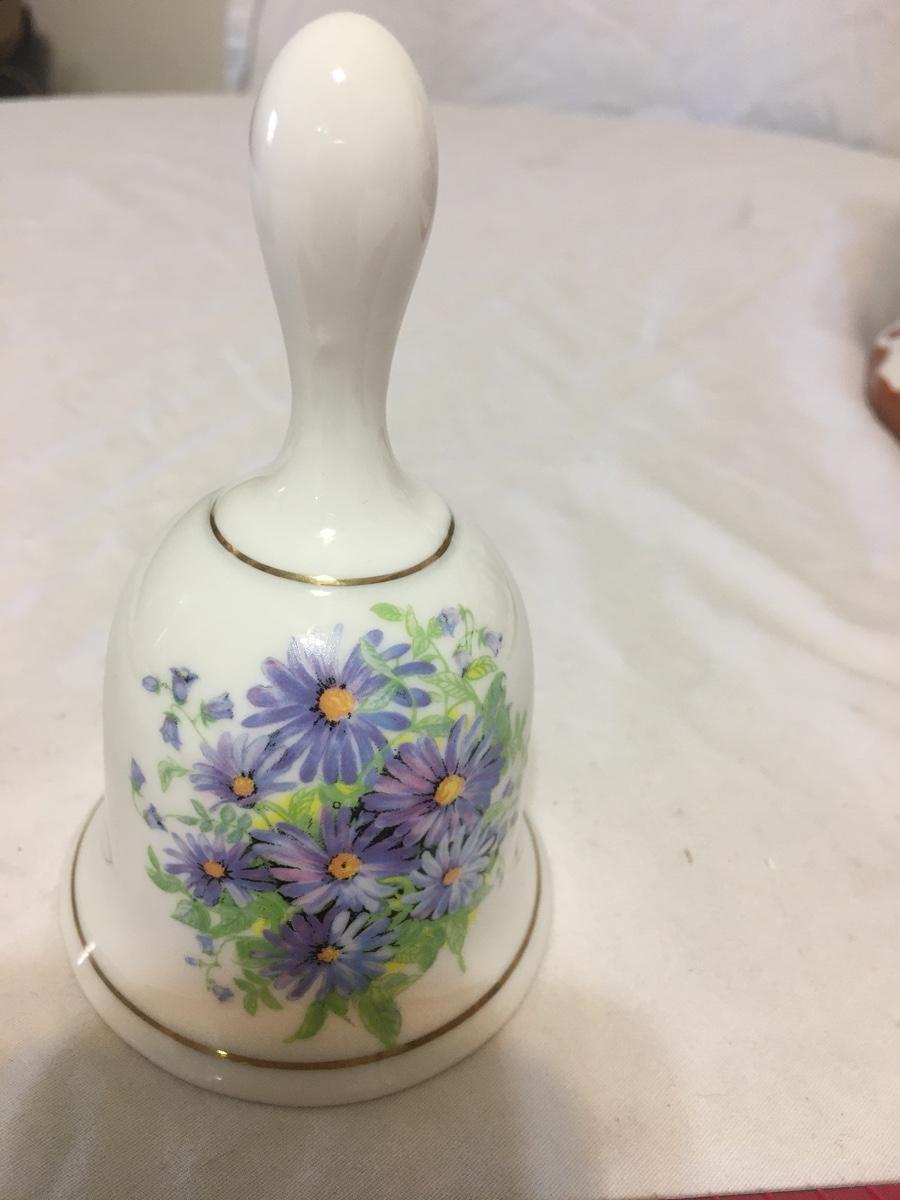 Beautiful Vintage Porcelain Bell With Purple Daisy By Enesco - Japan