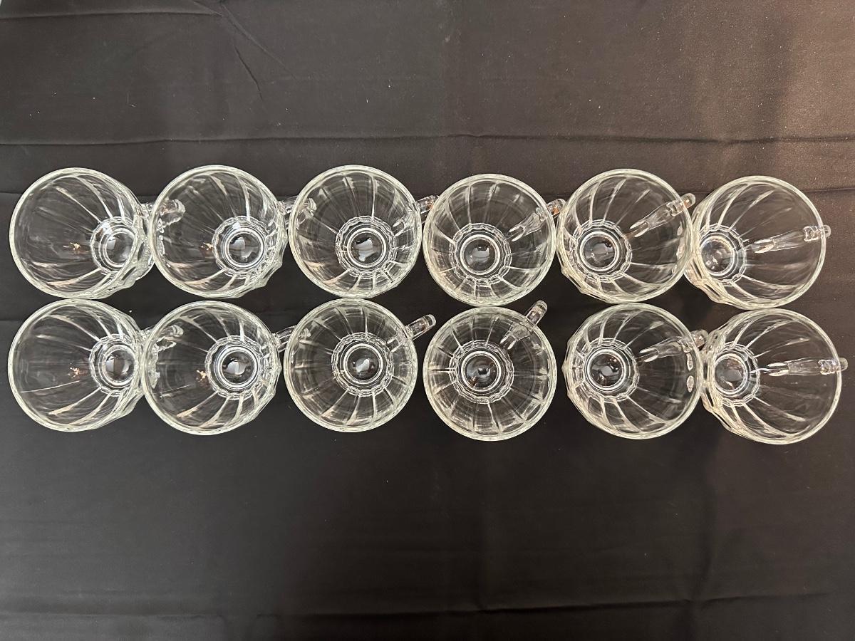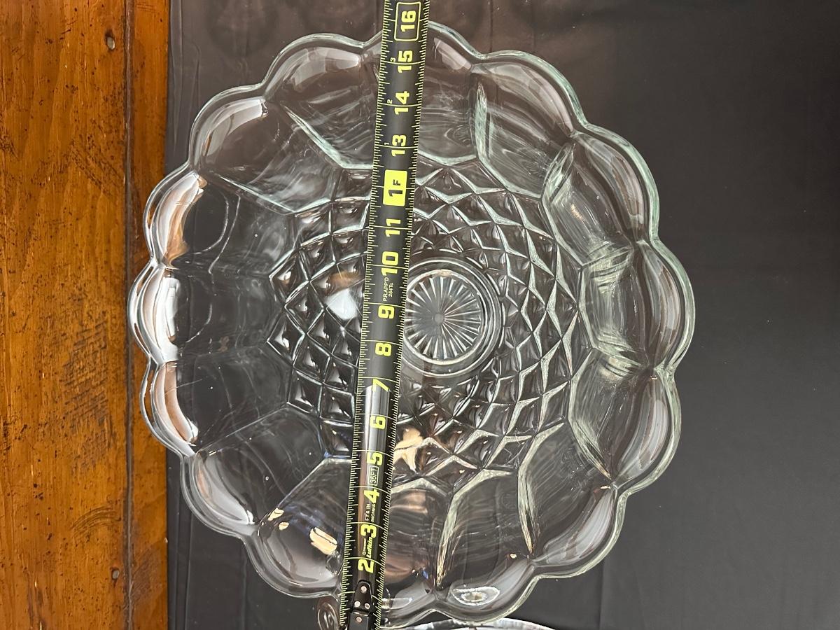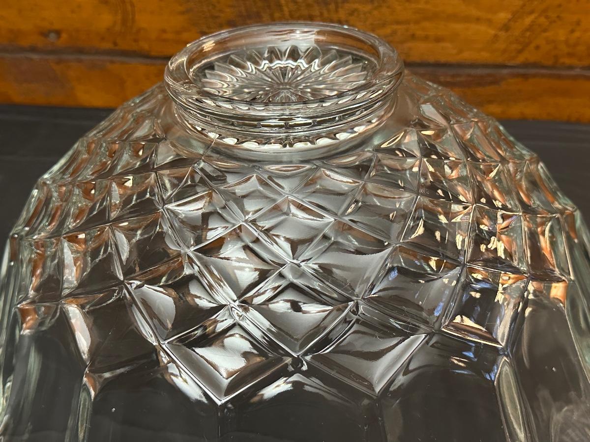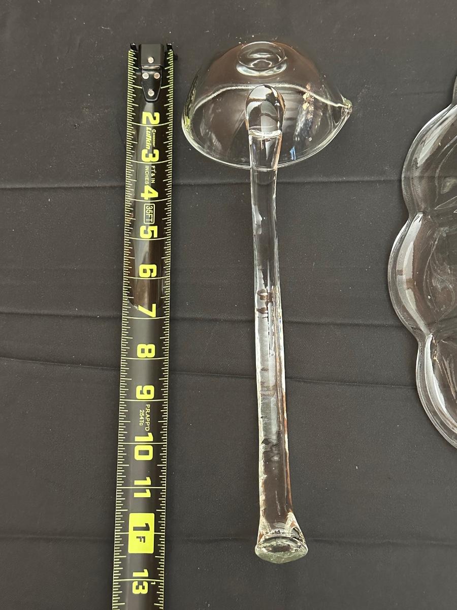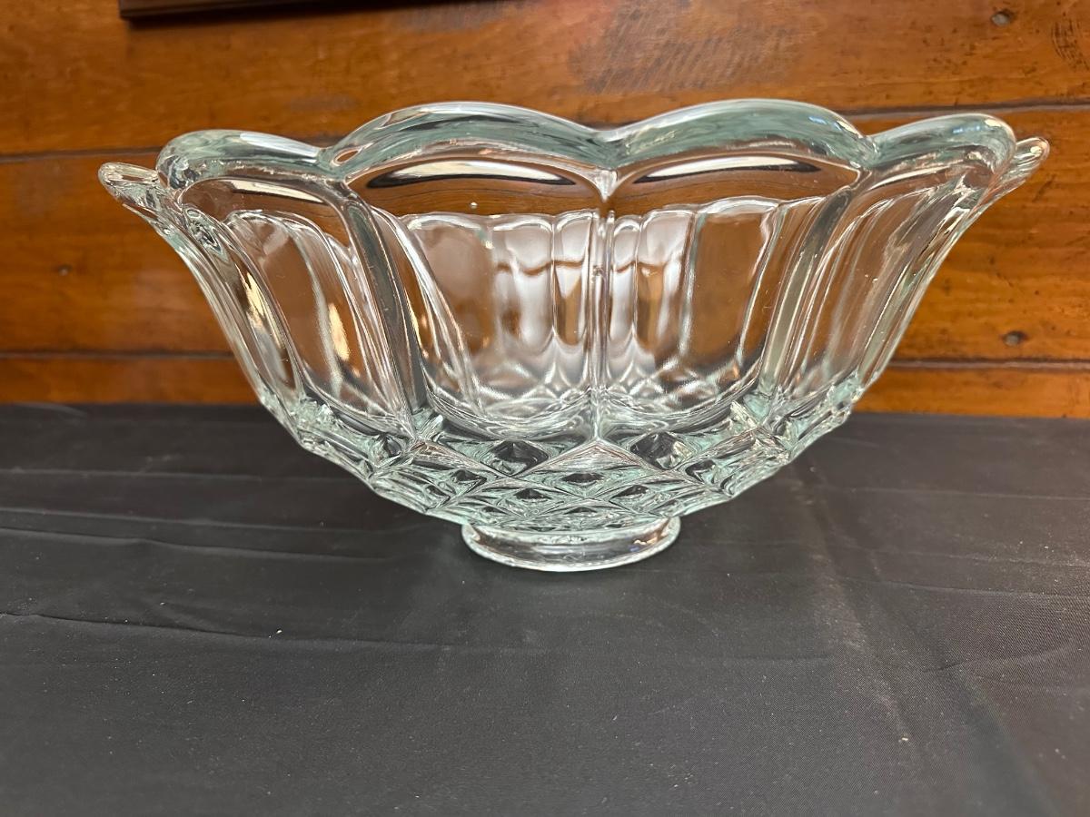 This bowl is large and can serve a group of people. There are two sets of glasses — see photos for details. Absolutely beautiful! Not pictured, a large matching plate that sits under the punch bowl.