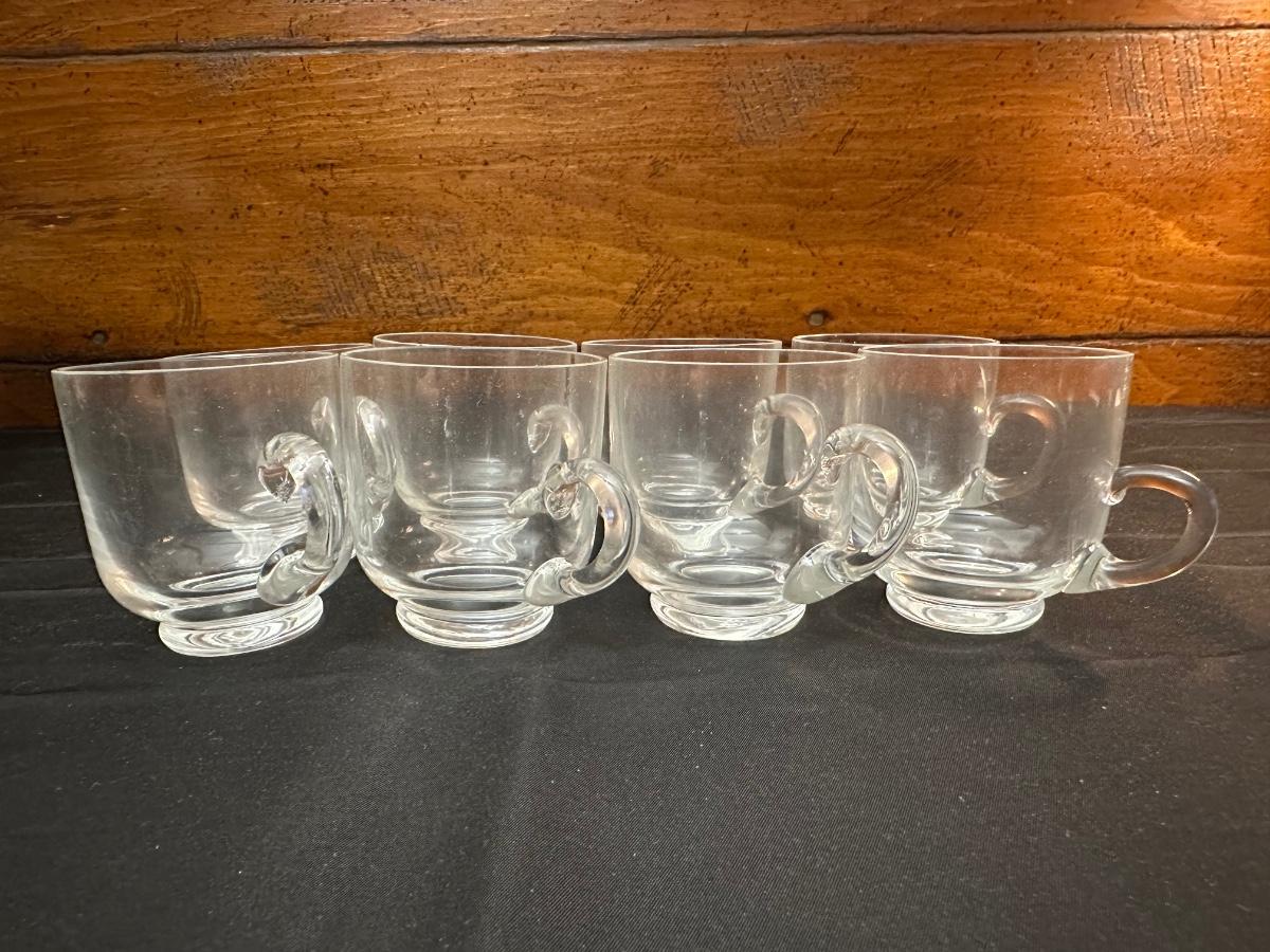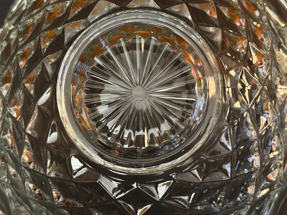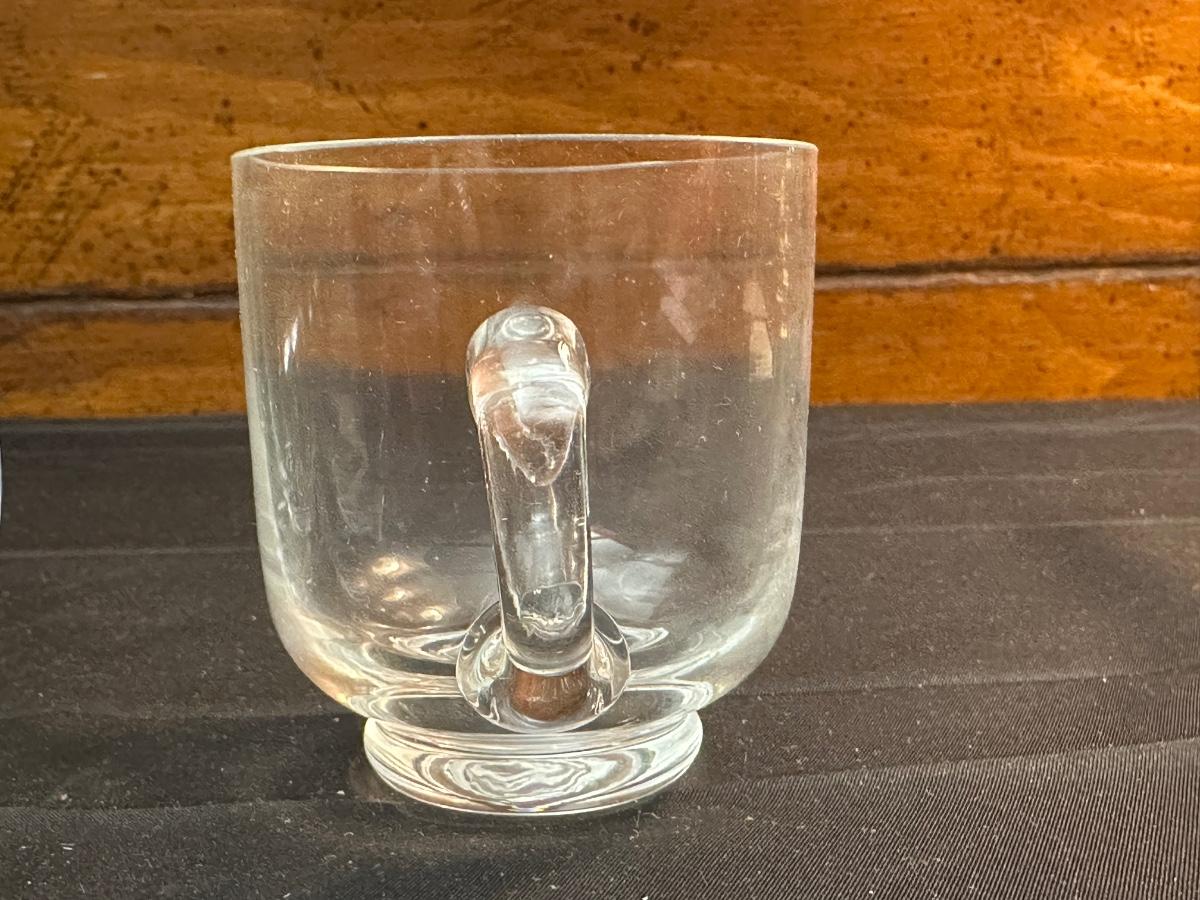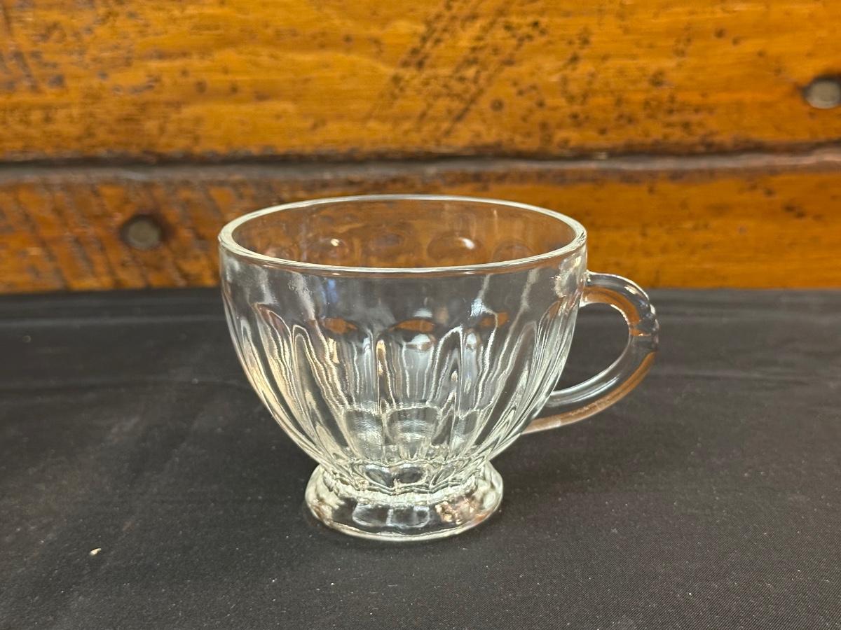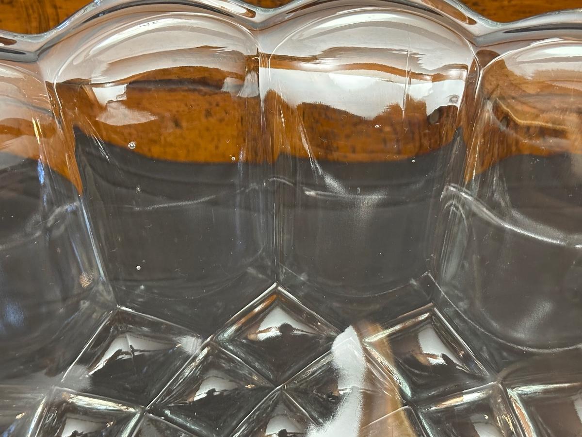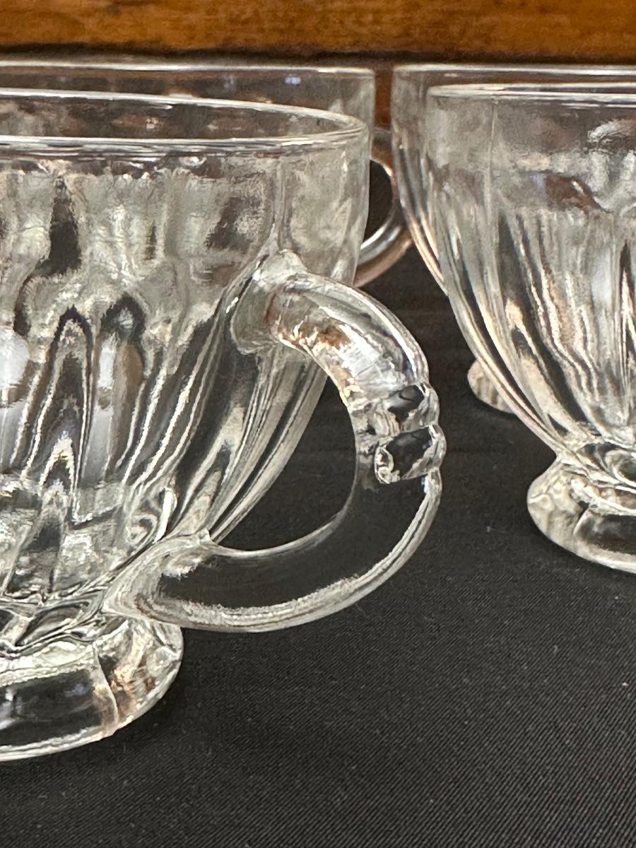 This bowl is large and can serve a group of people. There are two sets of glasses — see photos for details. Absolutely beautiful! Not pictured, a large matching plate that sits under the punch bowl.