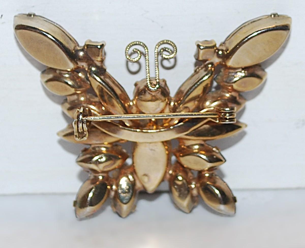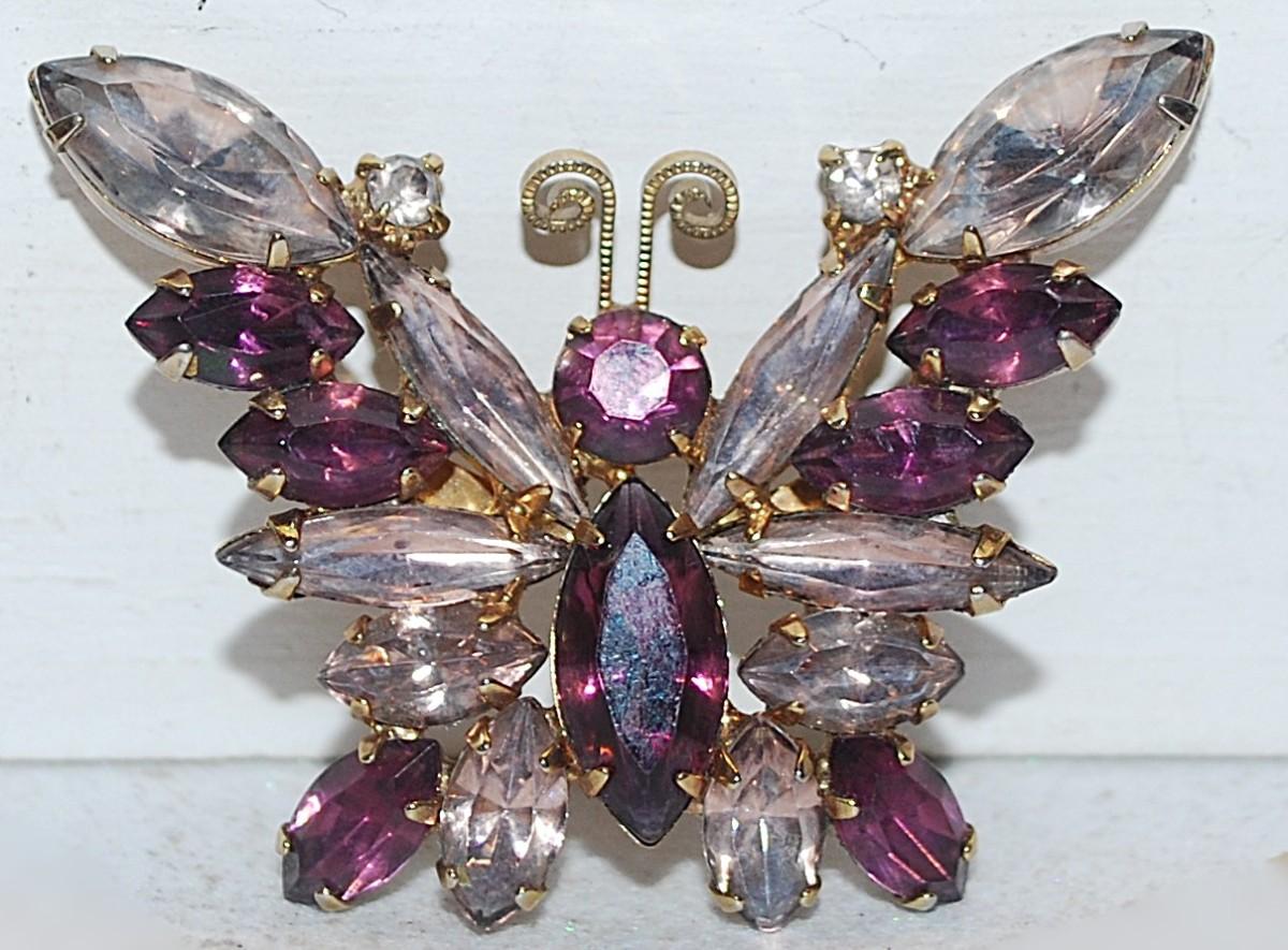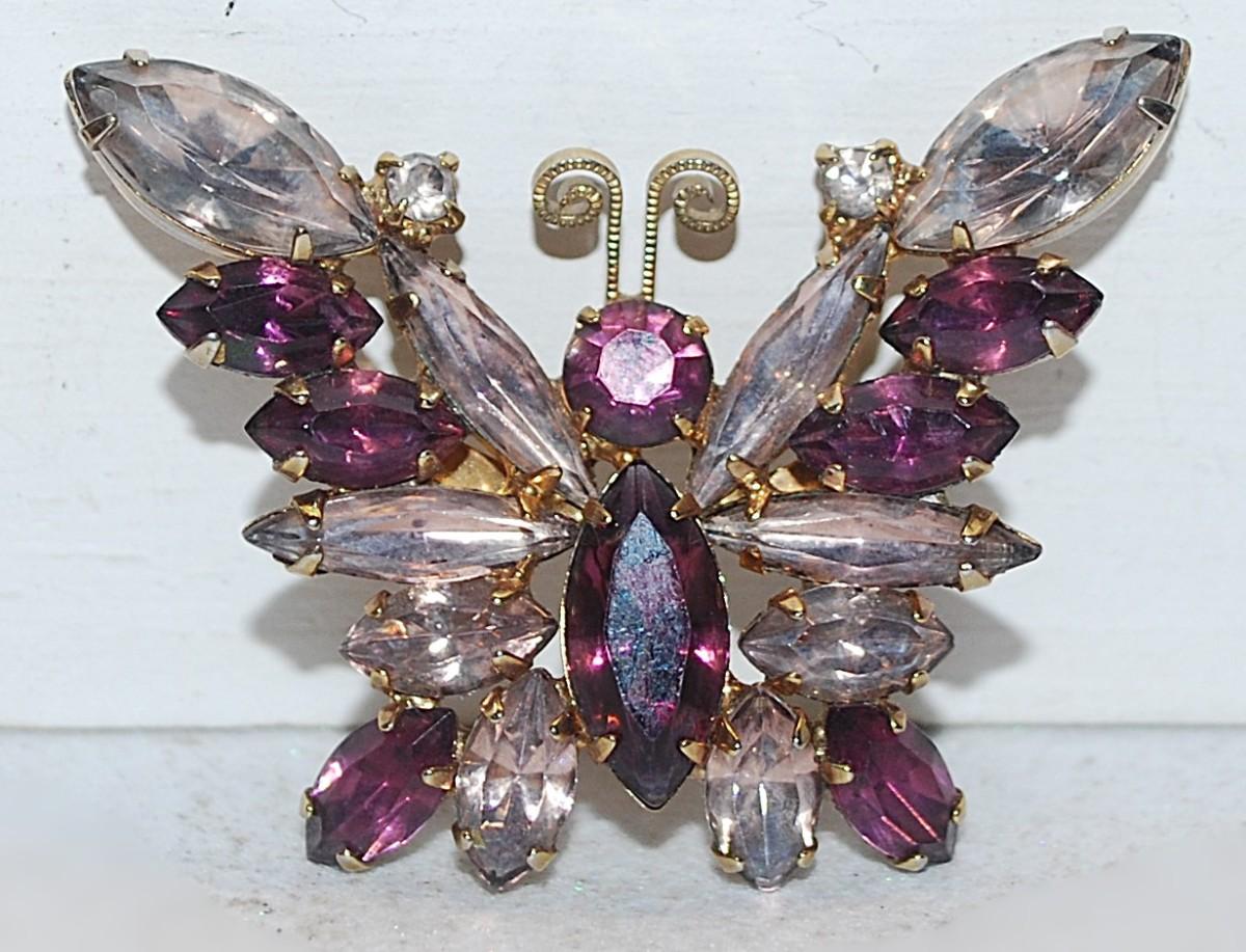 Beautiful VINTAGE PURPLE & FAINT PINK BUTTERFLY BROOCH (1¾" x 1½") on a Gold Tone Setting