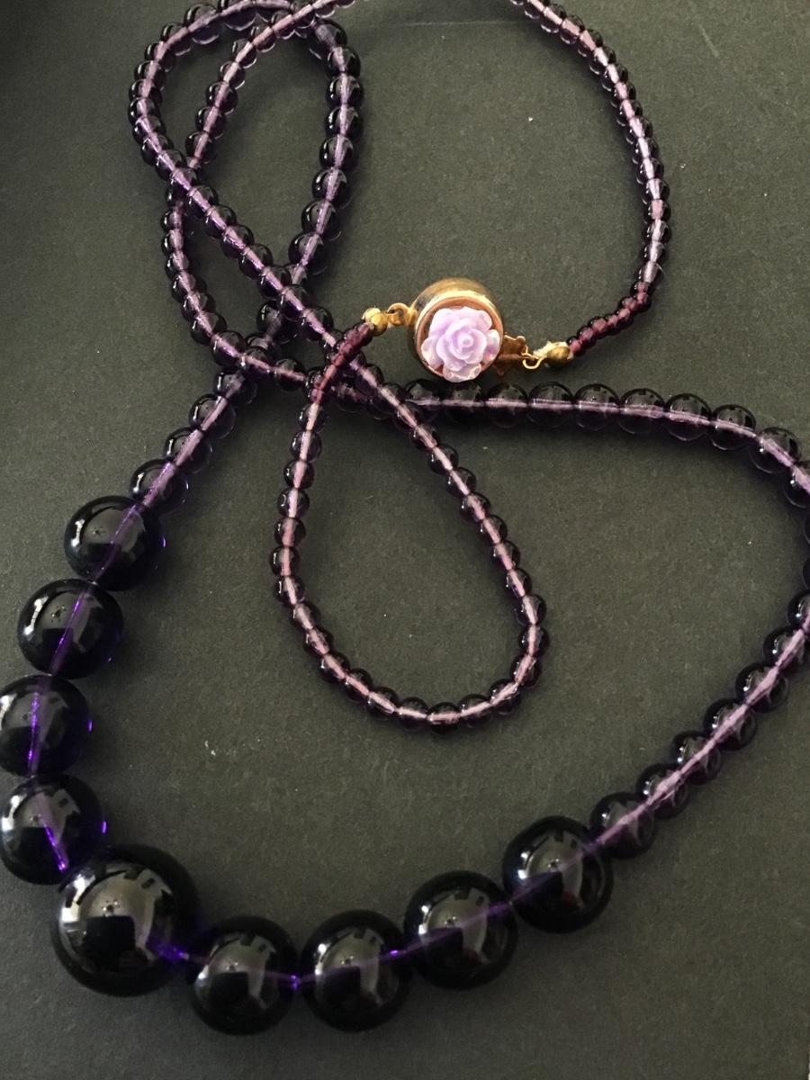 Beautiful, vintage, purple glass bead necklace beautiful clasp