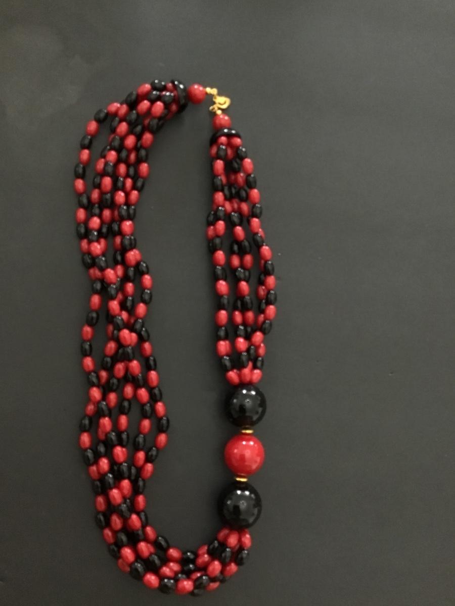 Beautiful Vintage Red Black Beaded Necklace. Avon Cosmopolitan