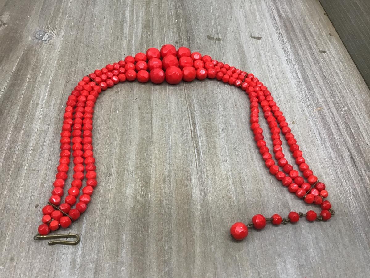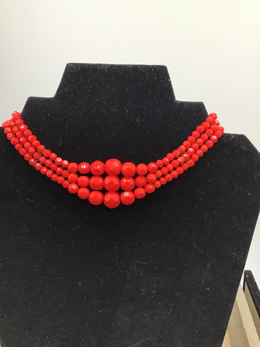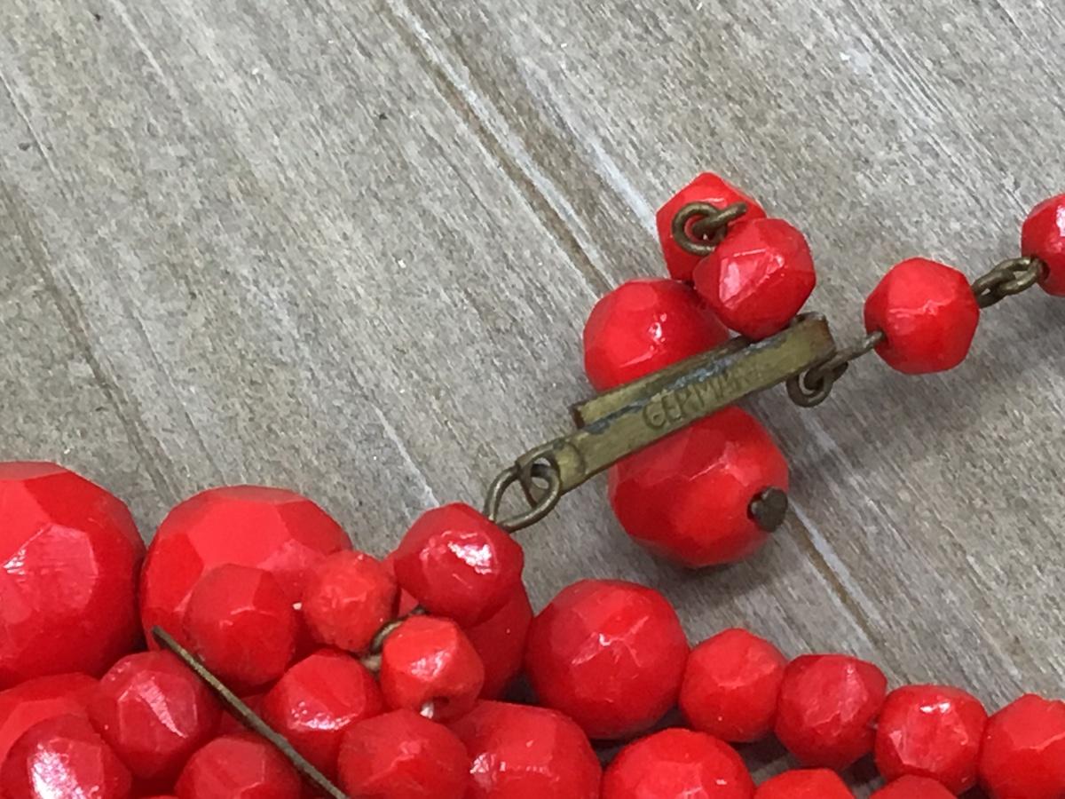 Beautiful Vintage Red Faceted Glass Beaded Germany 3 Strand Necklace
