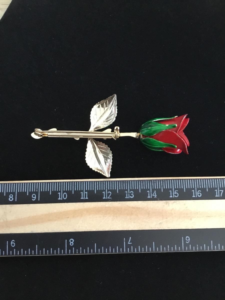 Beautiful vintage red Rose gold-tone brooch