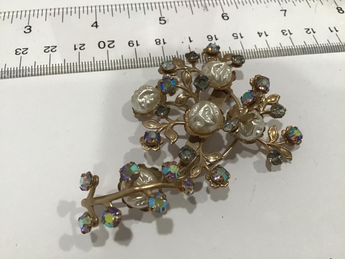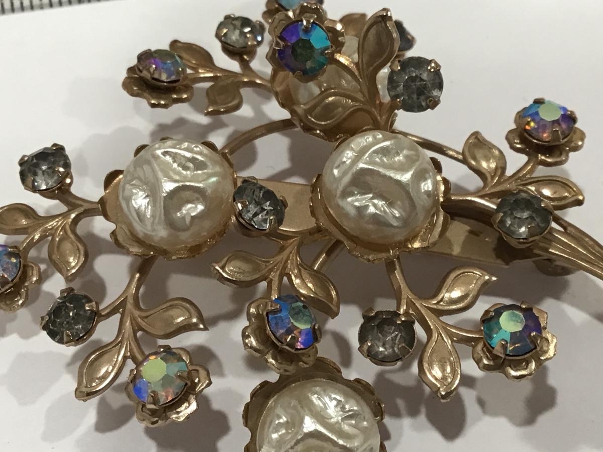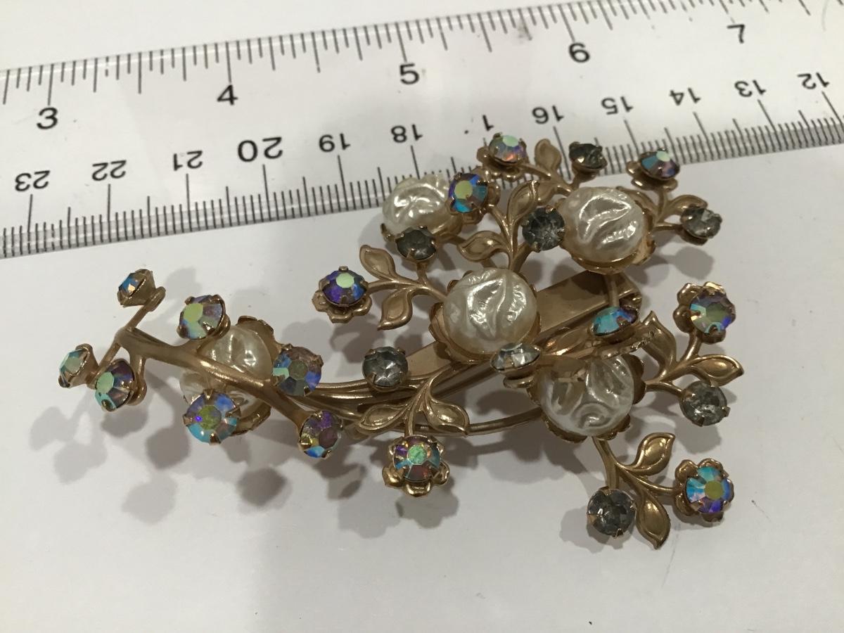 Beautiful Vintage Rhinestone and Baroque Pearl Brooch