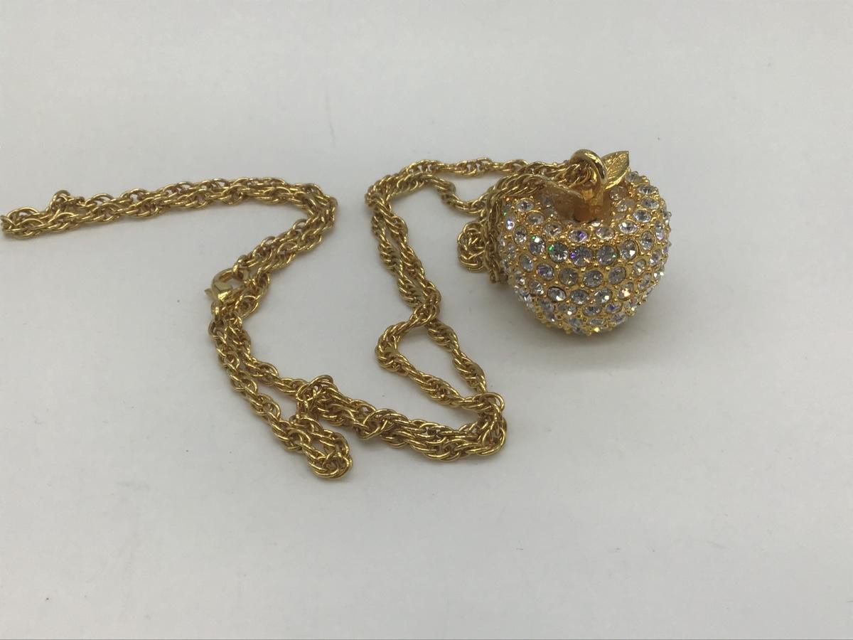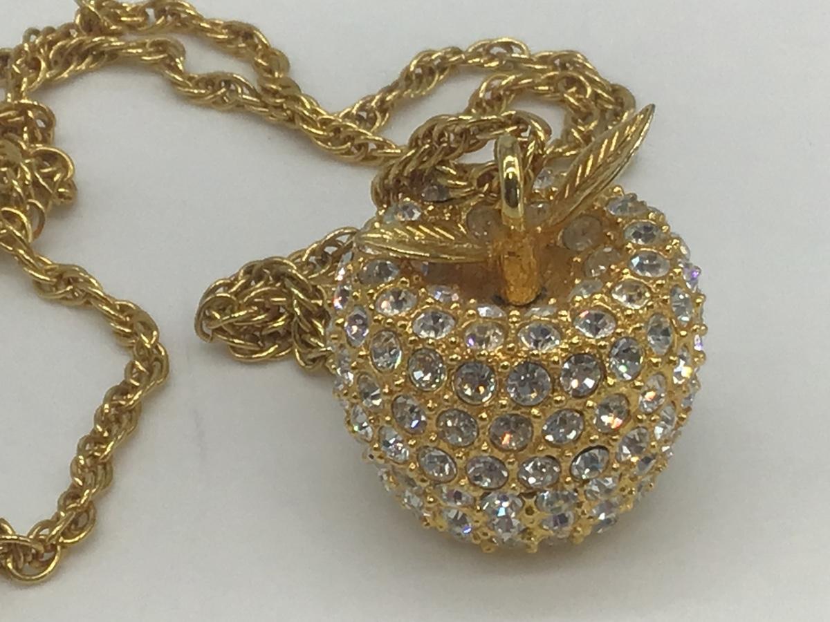 Beautiful Vintage Rhinestone Apple pendant Necklace Working