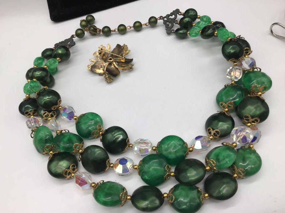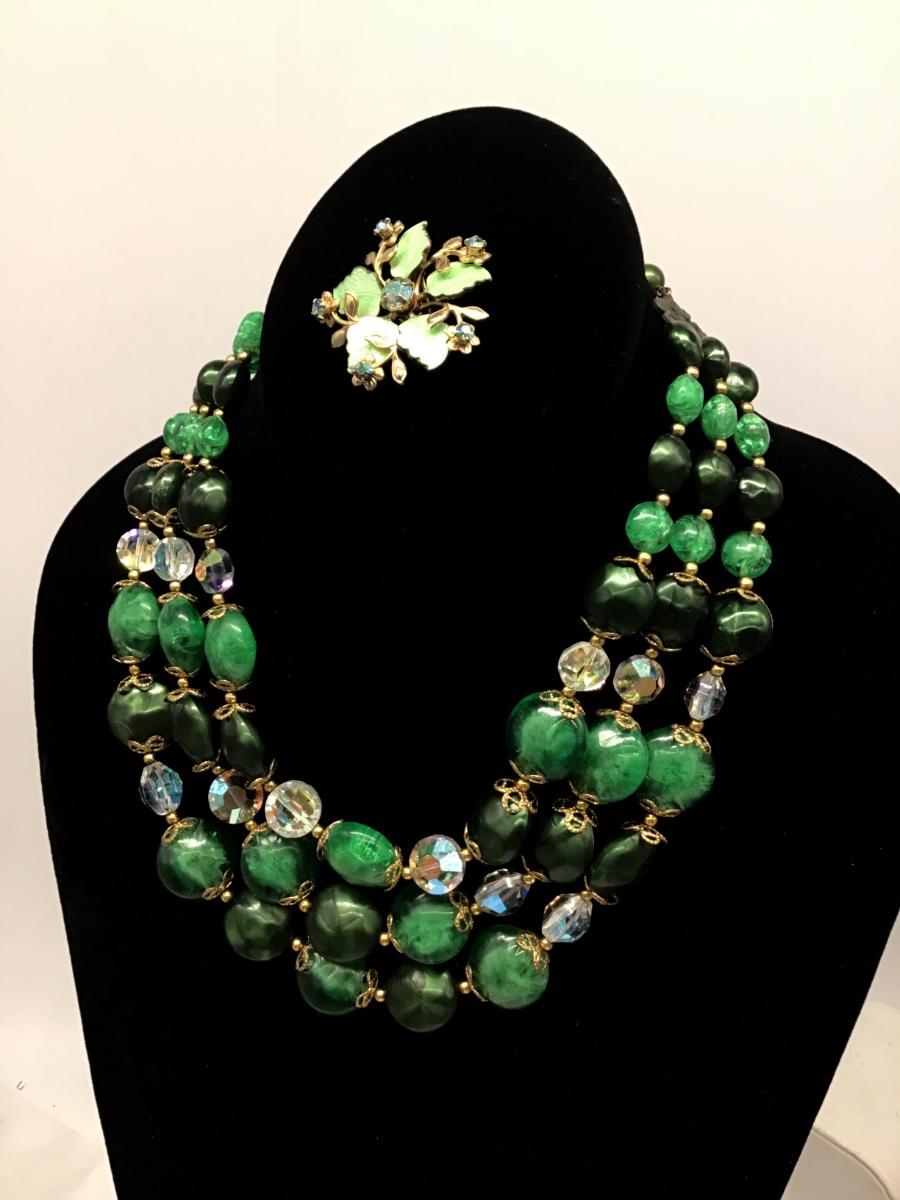Beautiful Vintage Rhinestone Brooch and Crystal Beaded Necklace