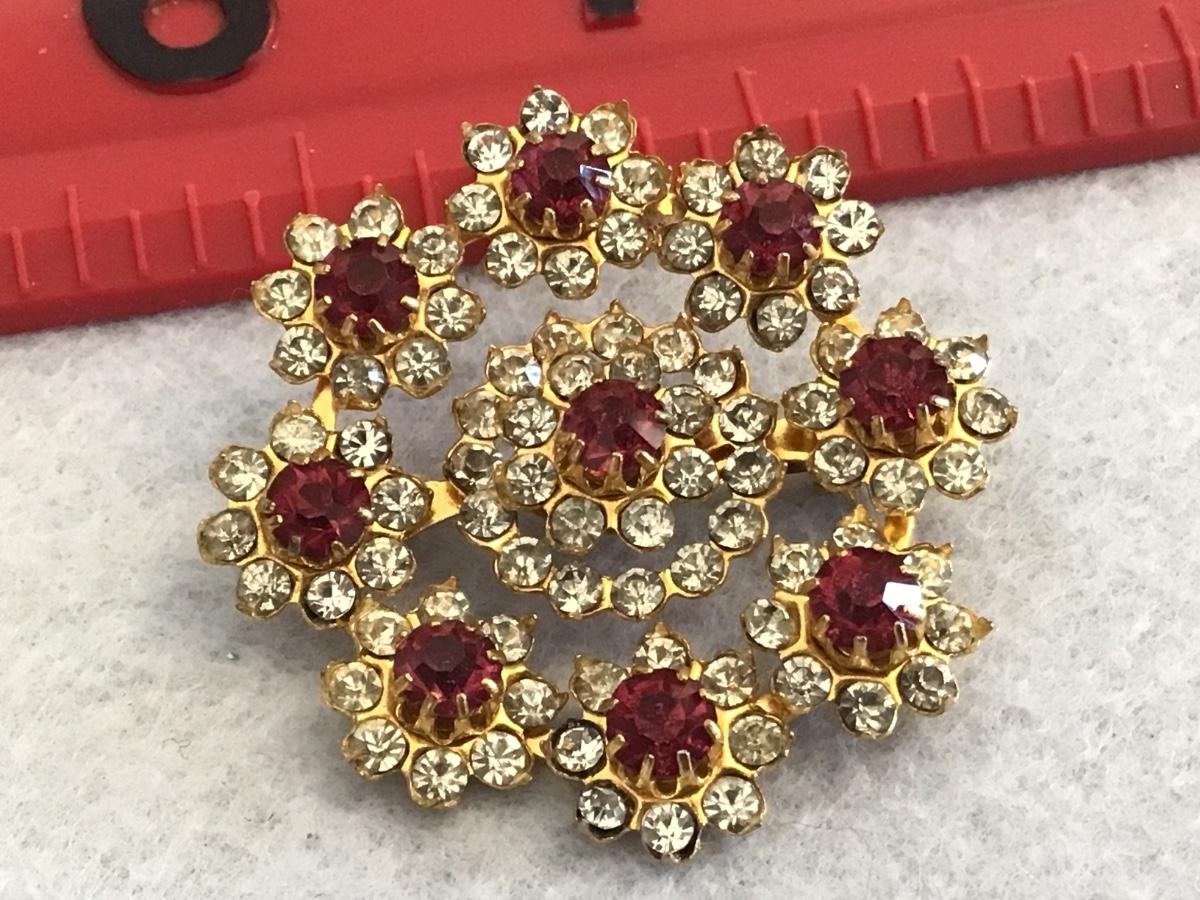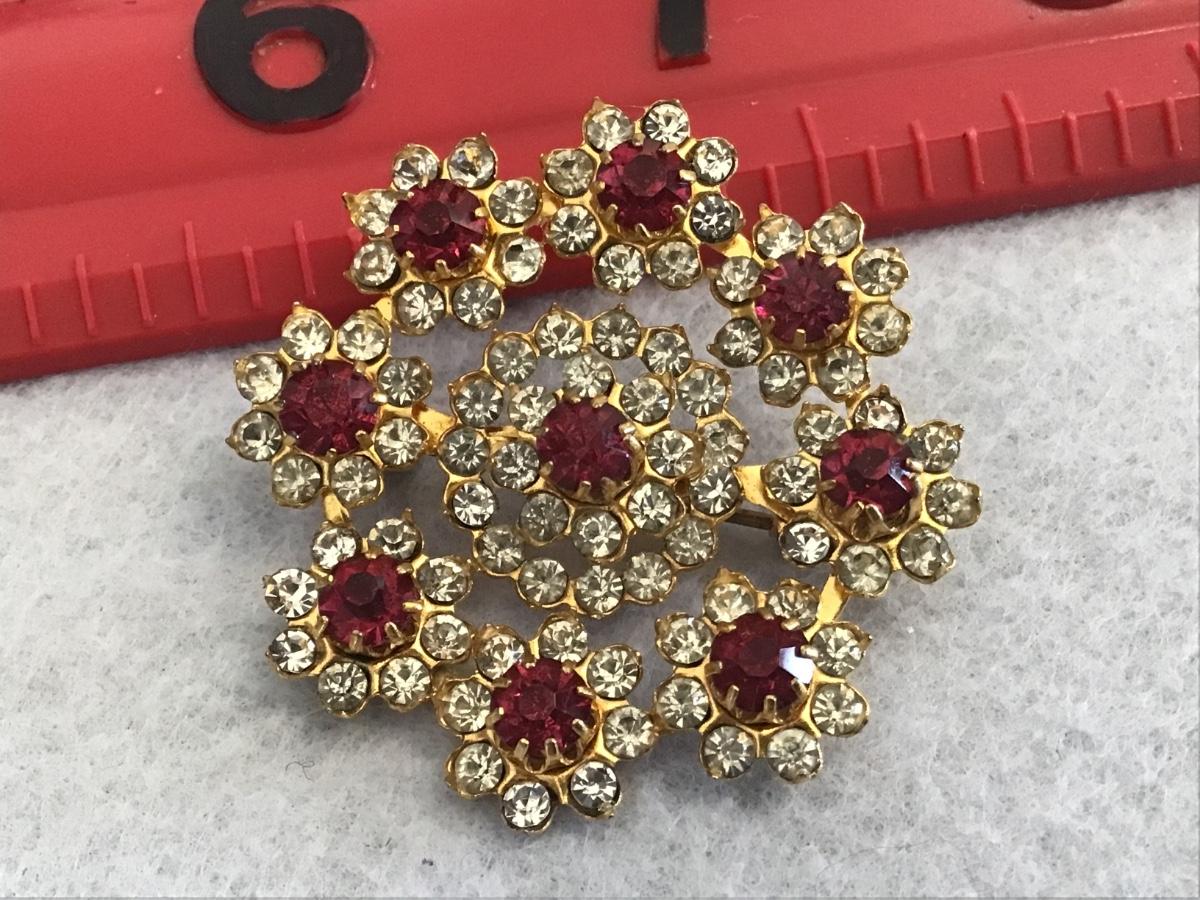 Beautiful Vintage Rhinestone Cranberry Tone Brooch