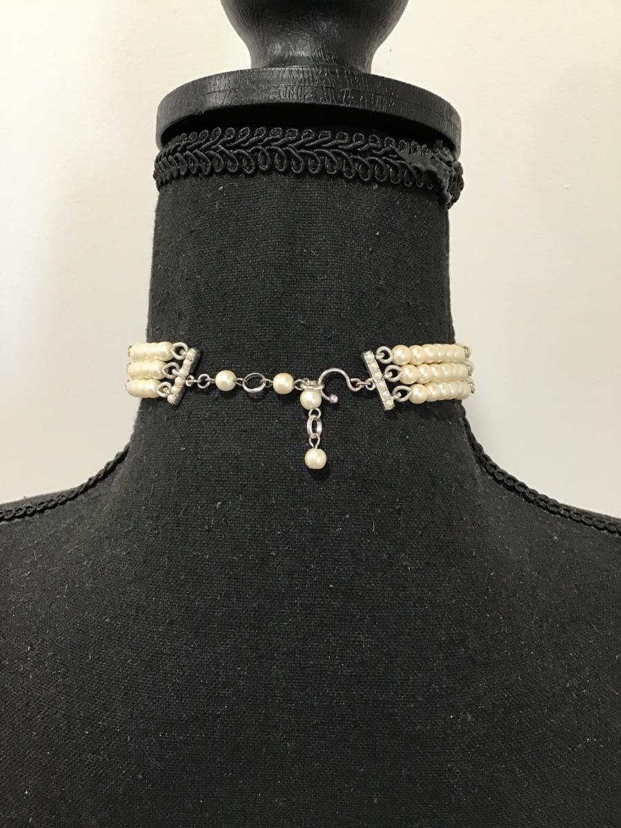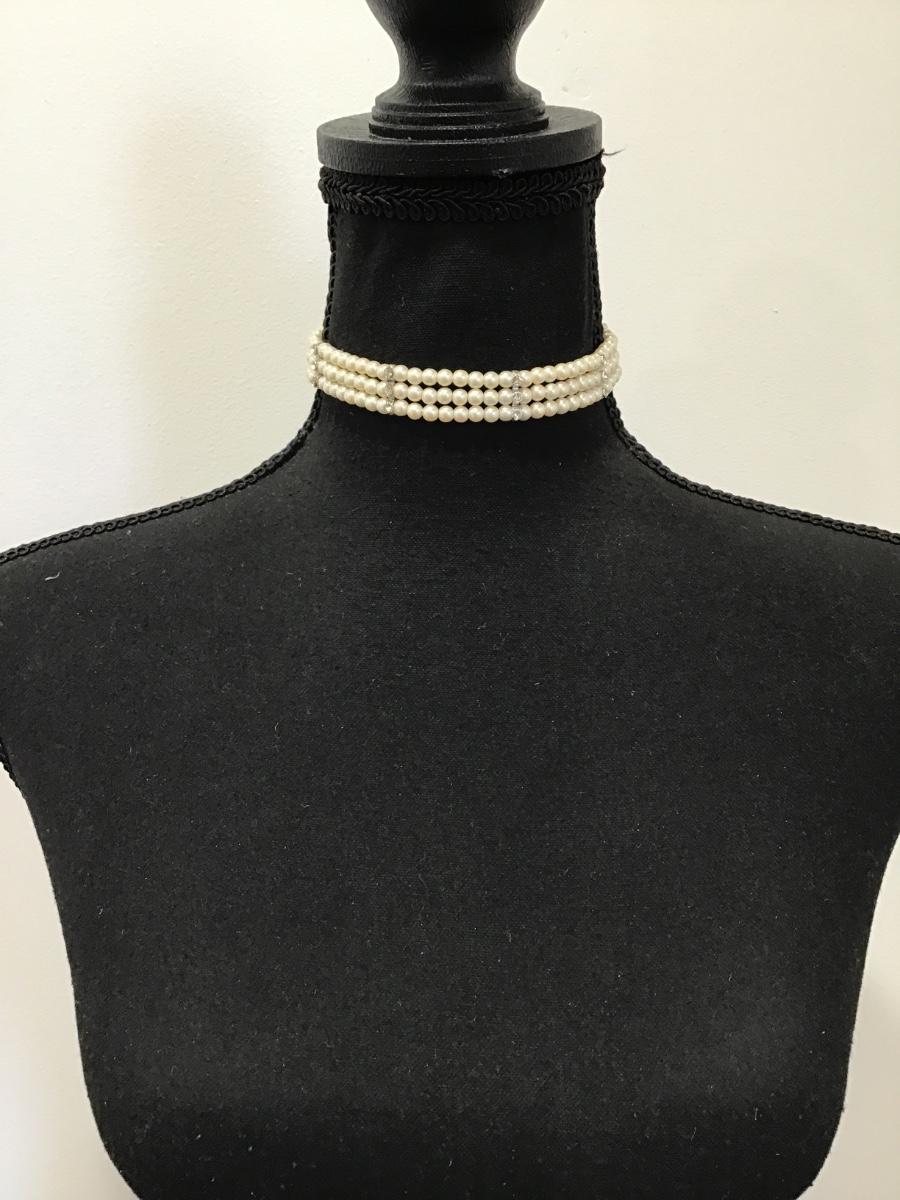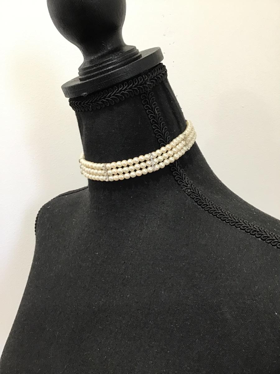 Beautiful vintage, rhinestone, faux, pearl choker necklace