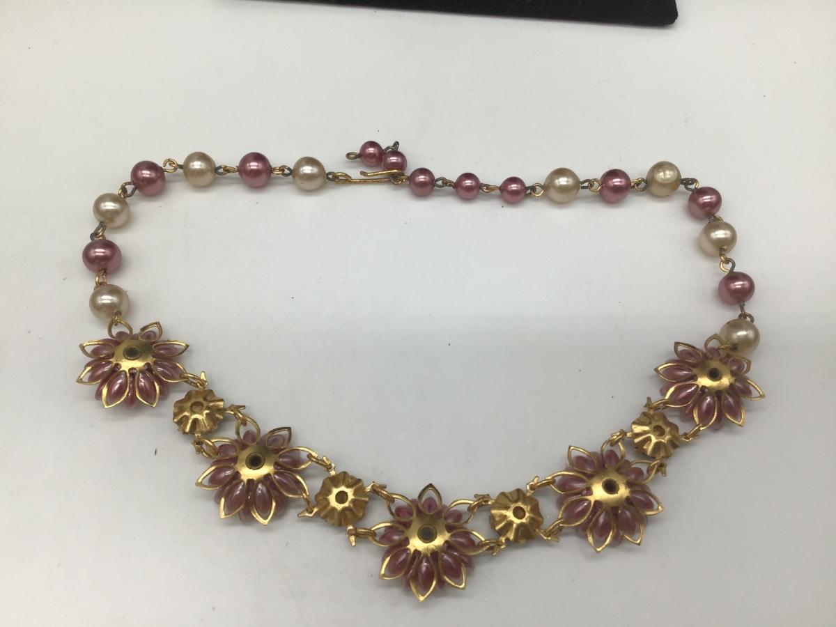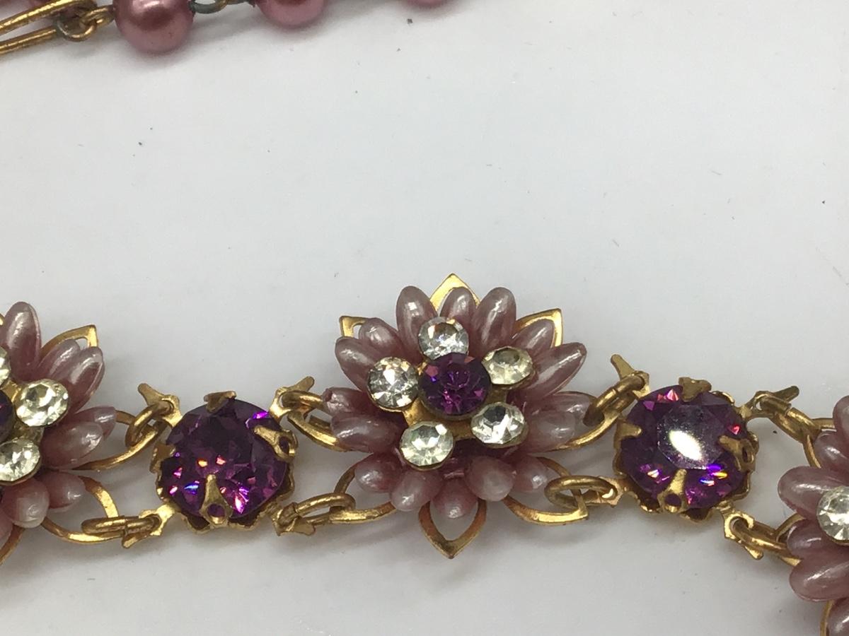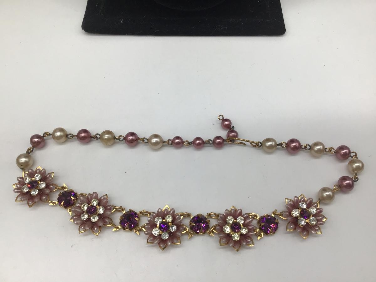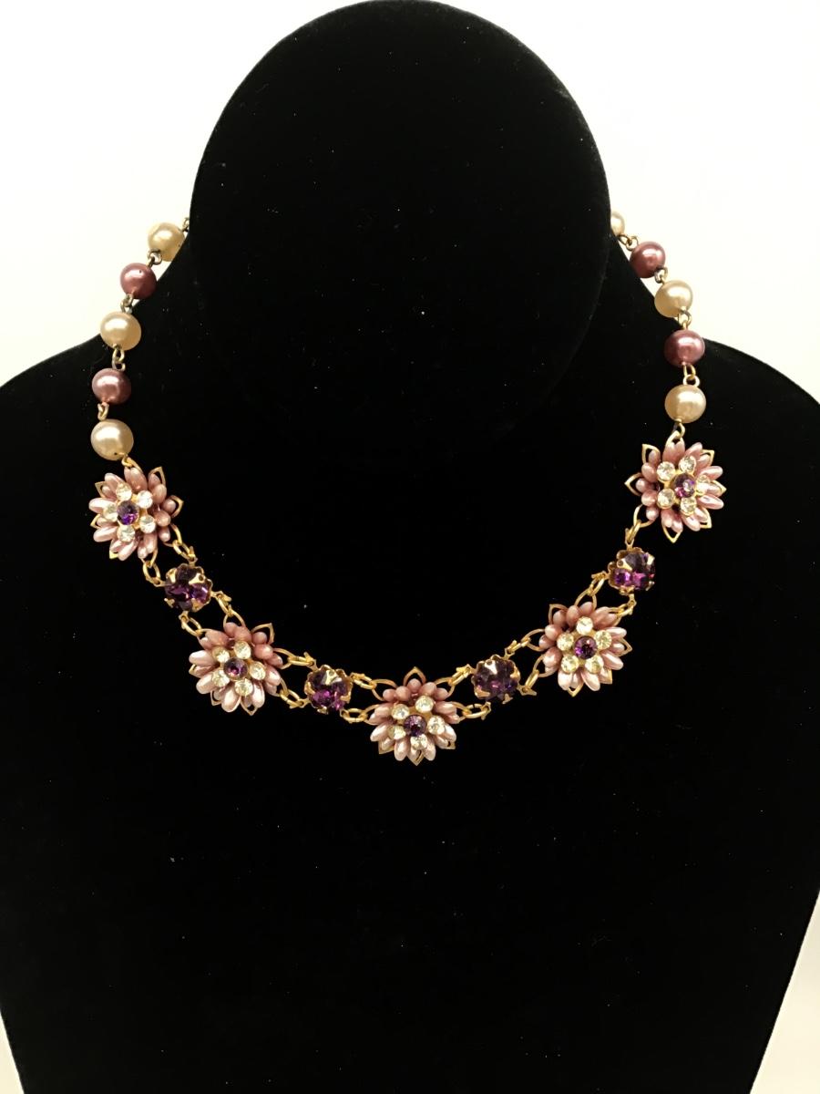 Beautiful Vintage Rhinestone Floral petal Necklace